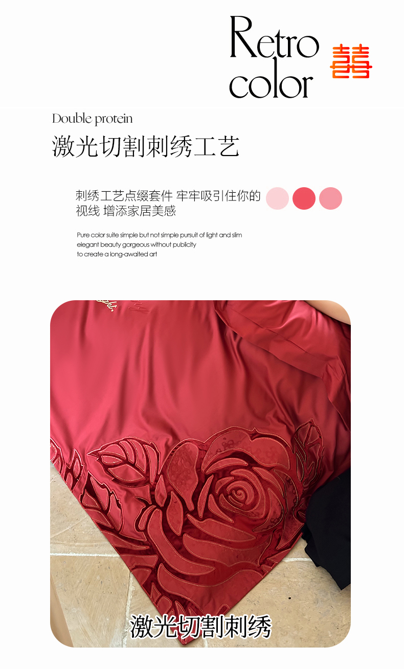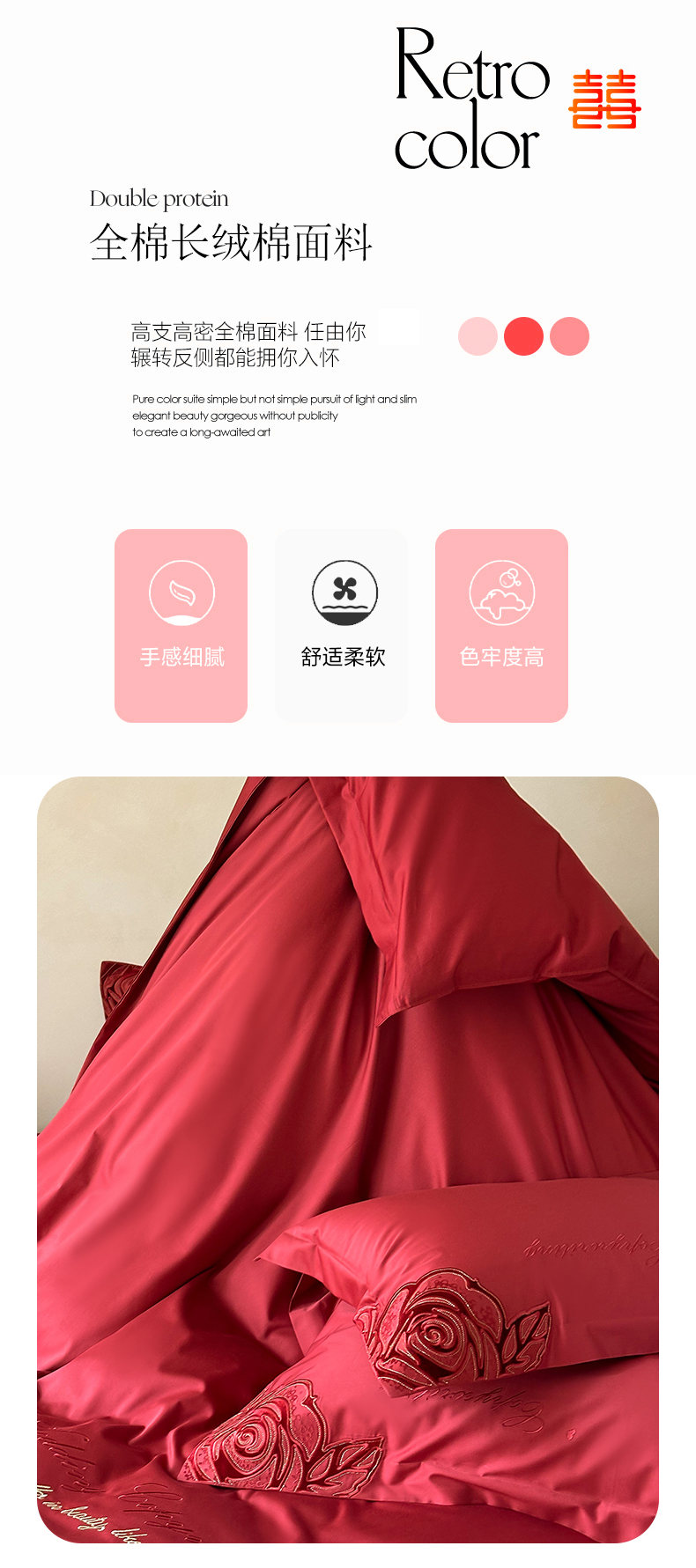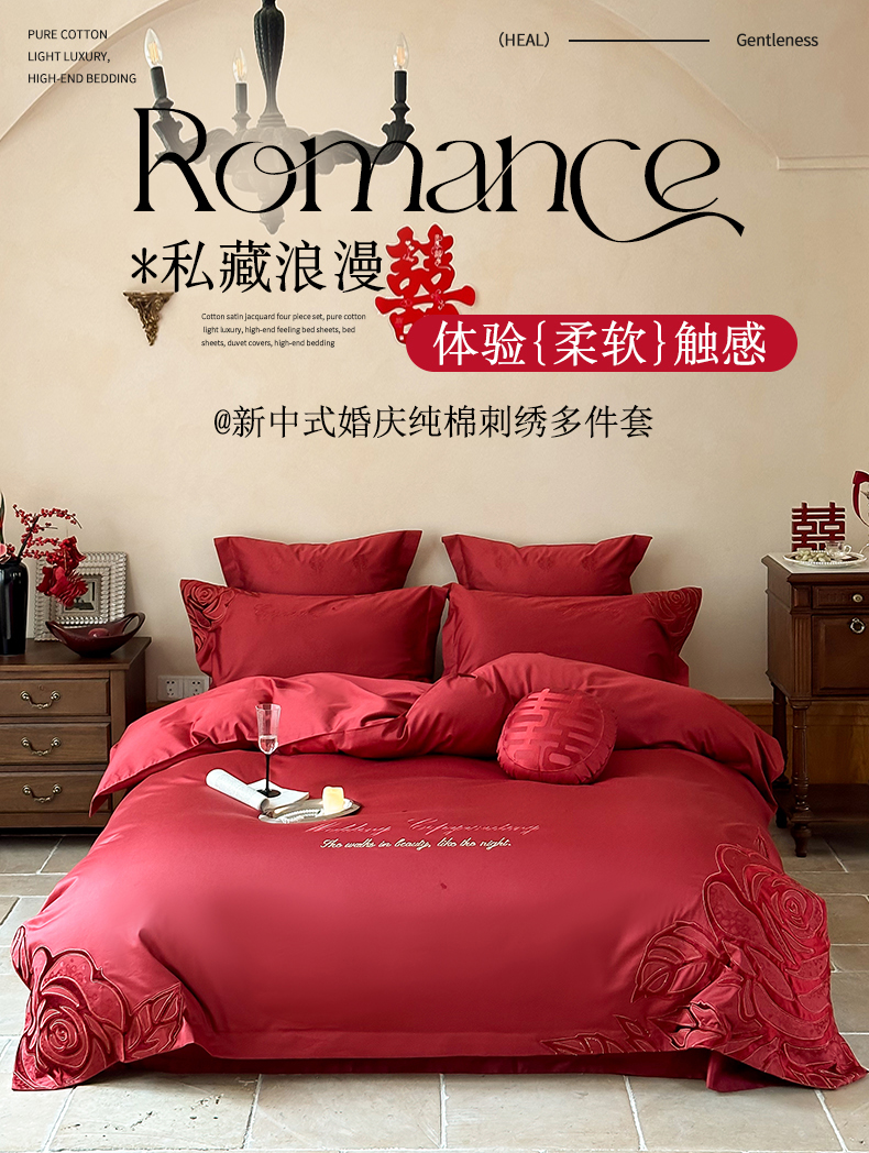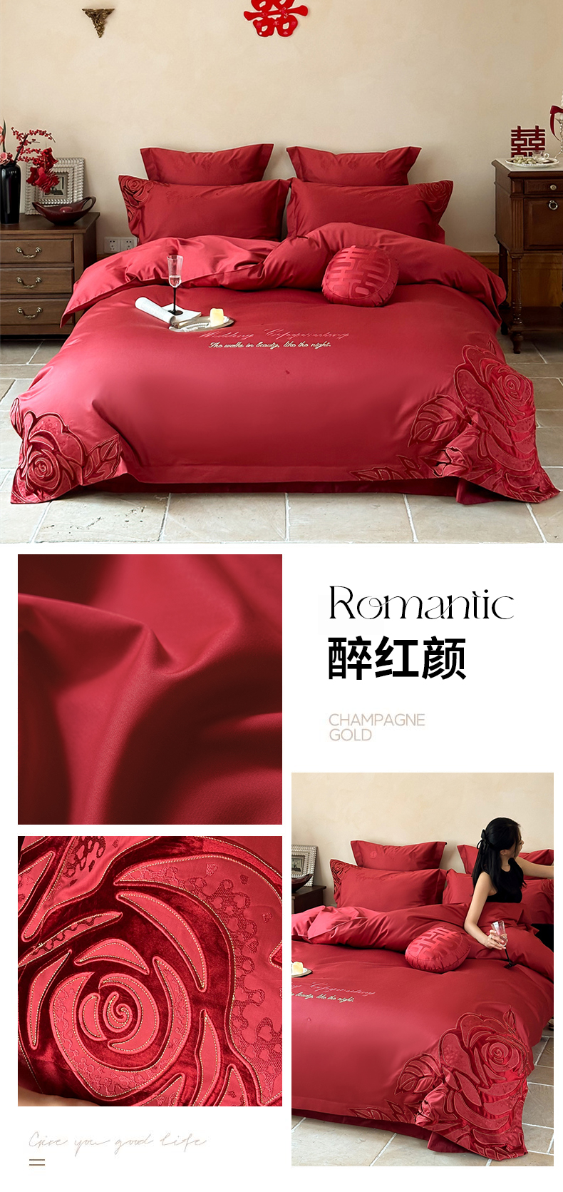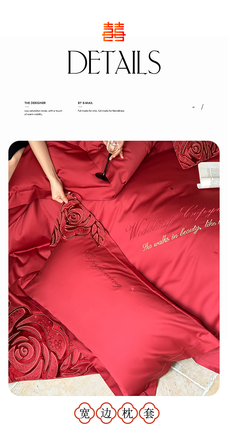 当前位置: 91家纺网 > 商品网购 > 床品套件 > 四件套 > 全棉普通四件套 > 宏羽纺家纺 2025新款100s全棉纯棉贡缎司马棉法式刺绣花边四件套醉红颜
