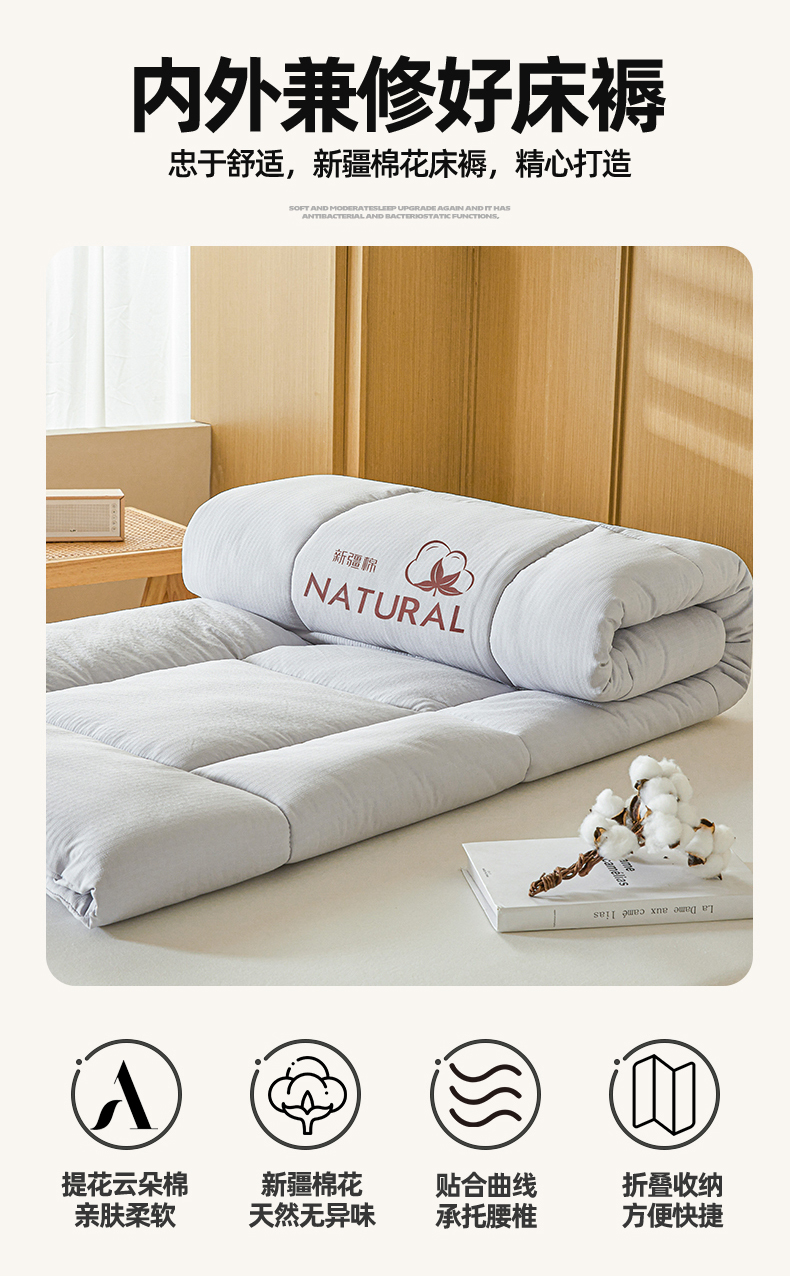 当前位置: 91家纺网 > 商品网购 > 床垫/床褥 > 普通床垫 > 梵蒂莎 2025新款纯色烫画棉花床垫成人款场景一 冰川灰