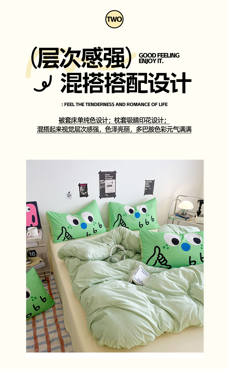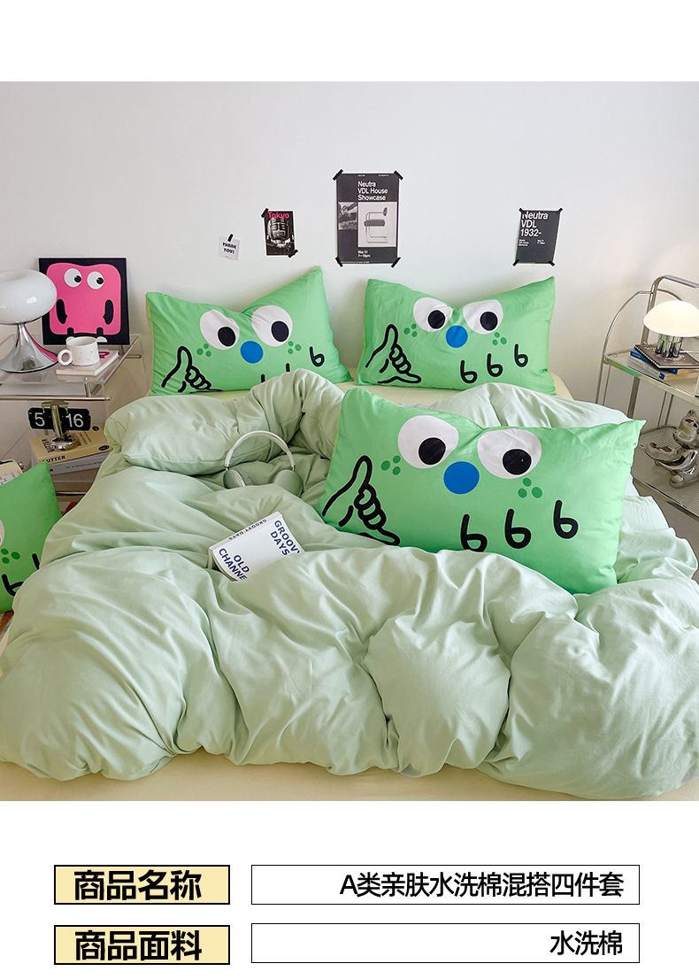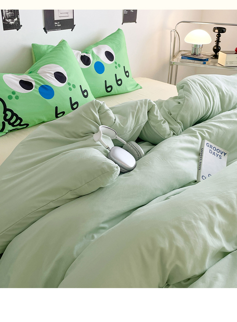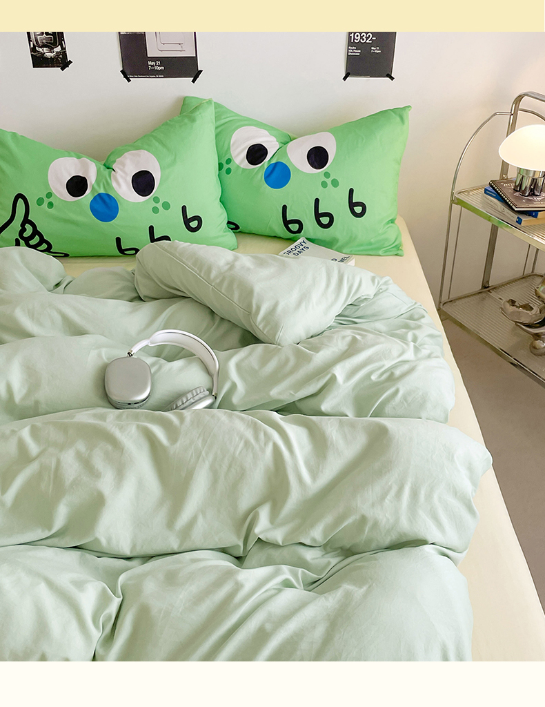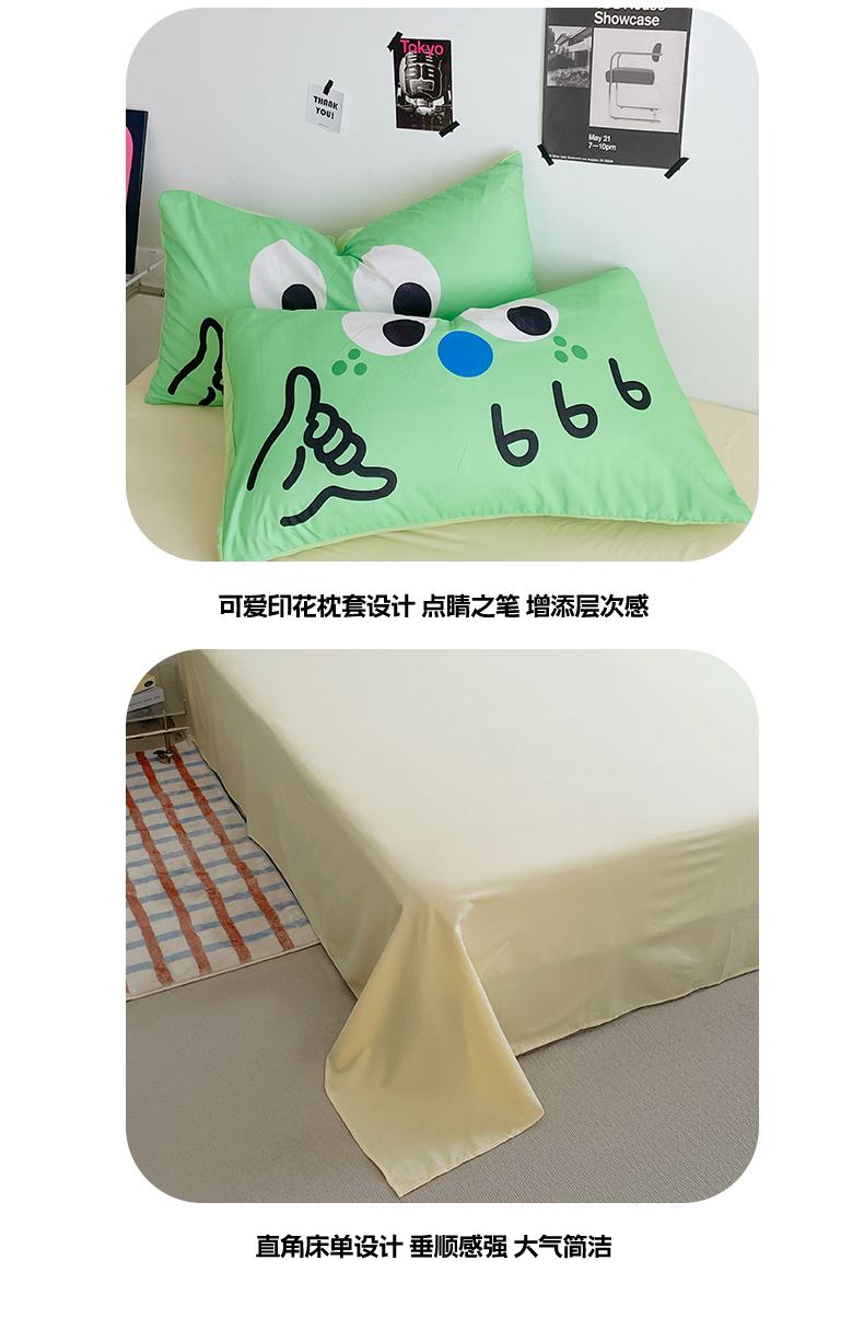 当前位置: 91家纺网 > 商品网购 > 床品套件 > 四件套 > 水洗棉四件套 > 优卡迪家纺馆 2025新款A类亲肤水洗棉大眼萌纯色混搭四件套 大眼萌-浅绿黄