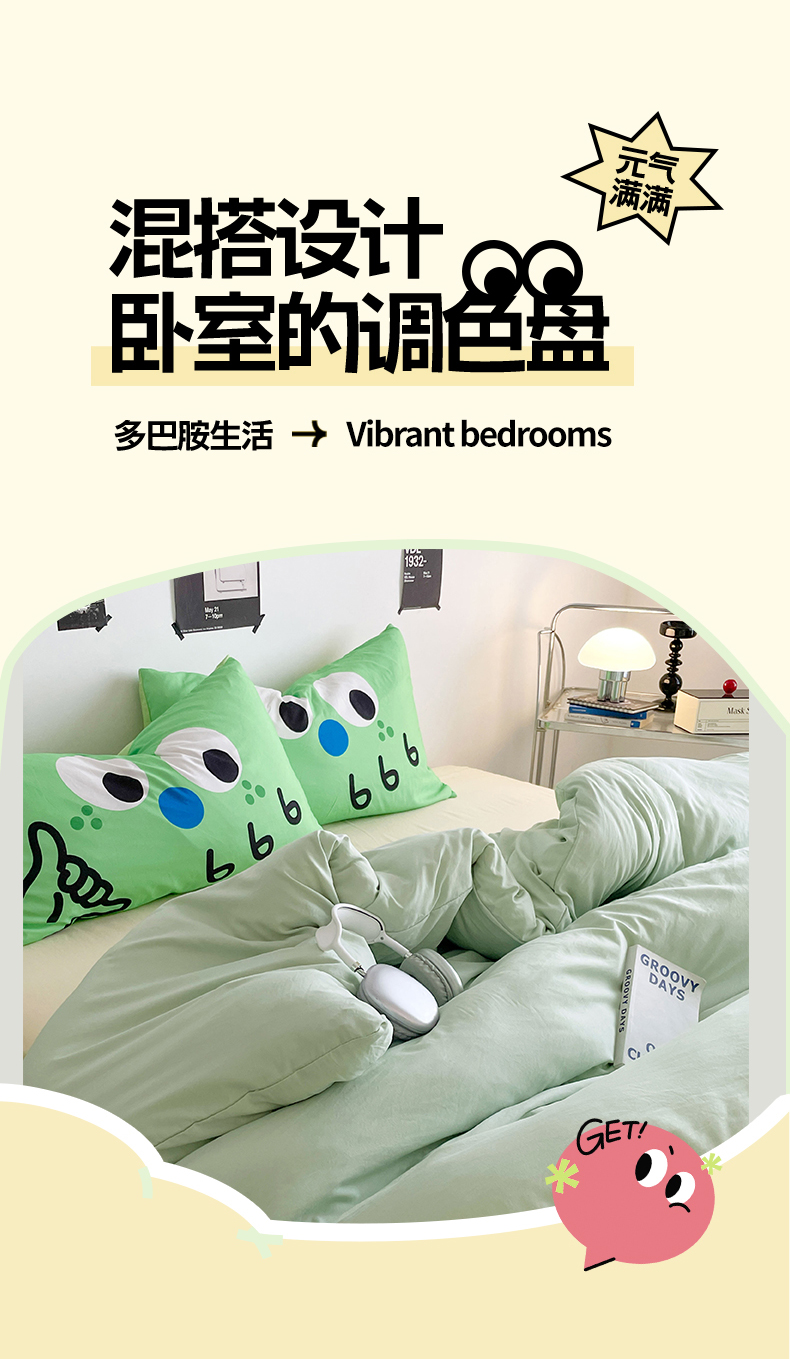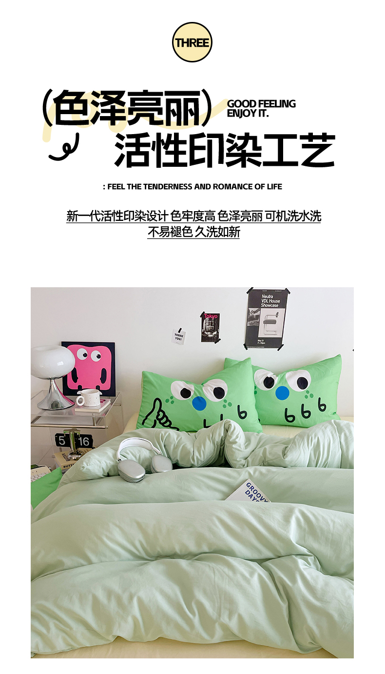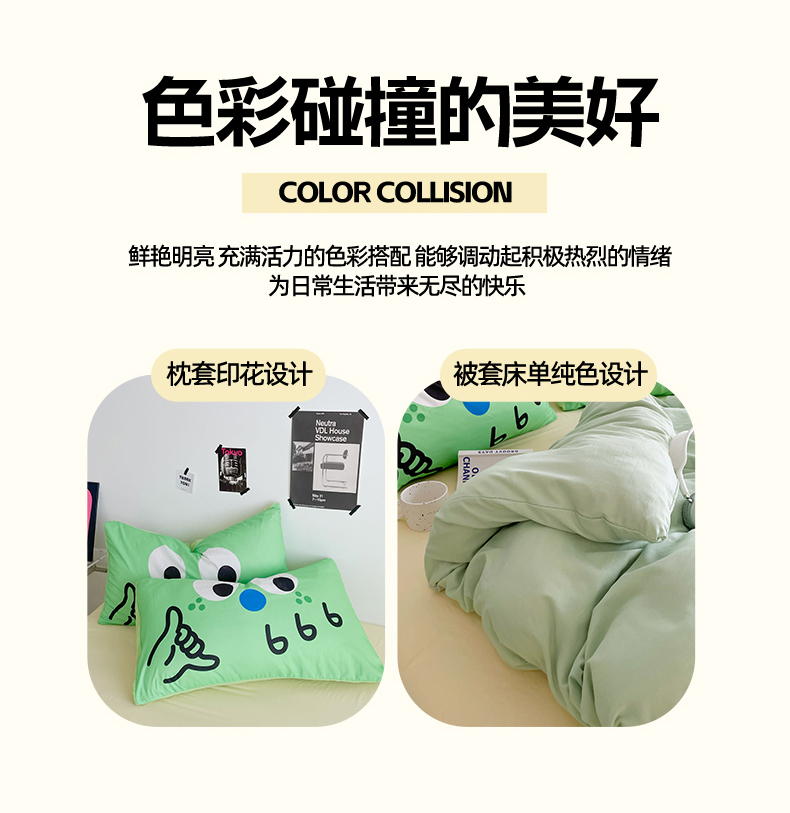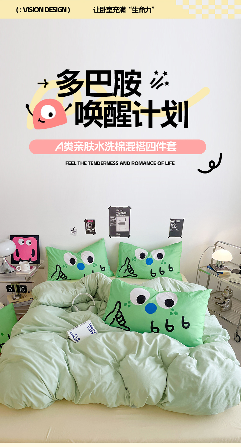 当前位置: 91家纺网 > 商品网购 > 床品套件 > 四件套 > 水洗棉四件套 > 优卡迪家纺馆 2025新款A类亲肤水洗棉大眼萌纯色混搭四件套 大眼萌-浅绿黄