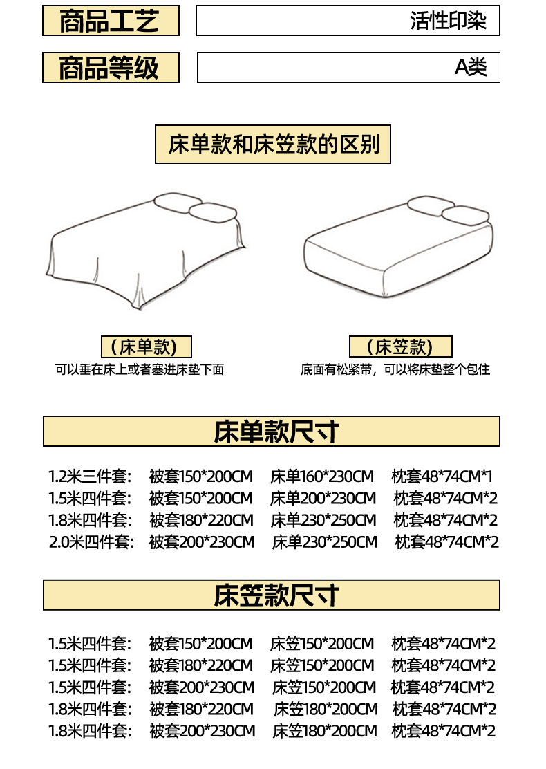 【床笠款】1.8四件套-被套180x220 | ¥52.00 |