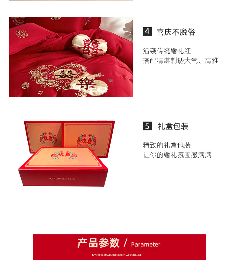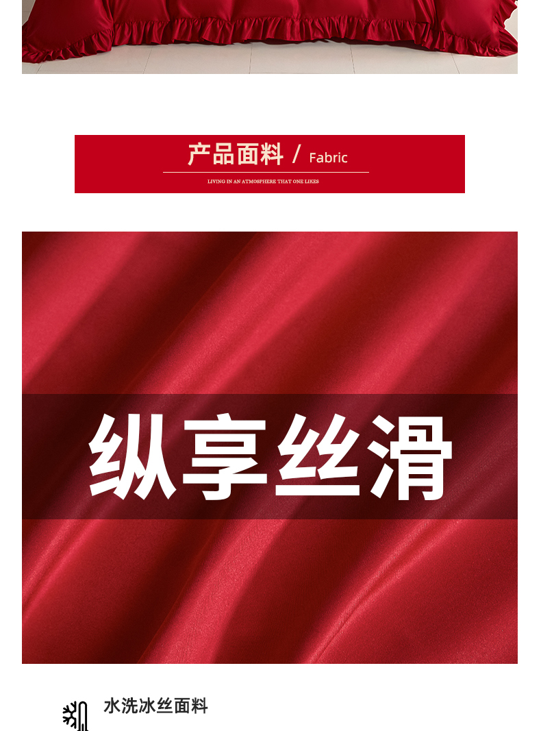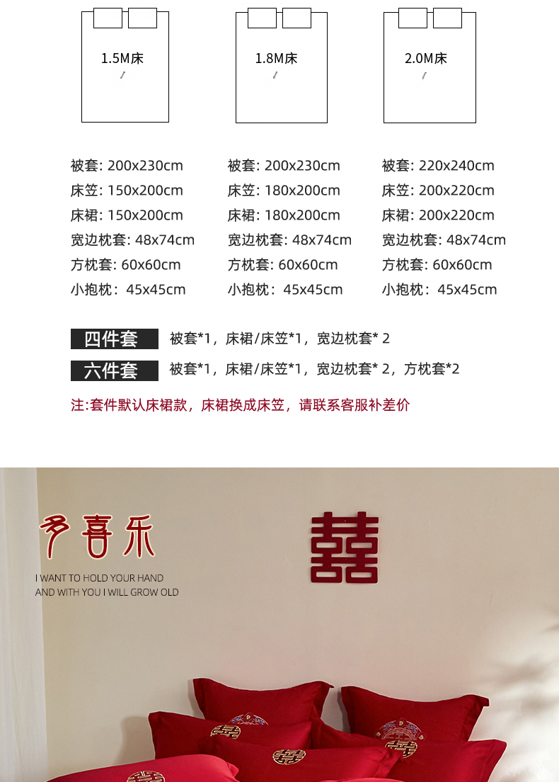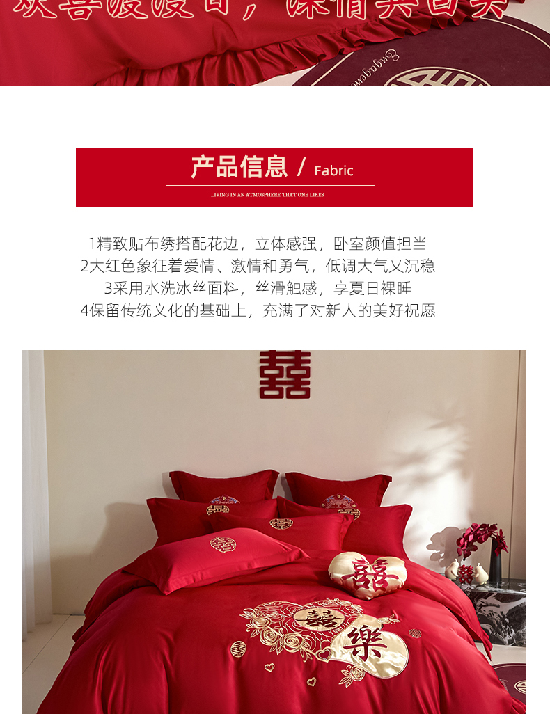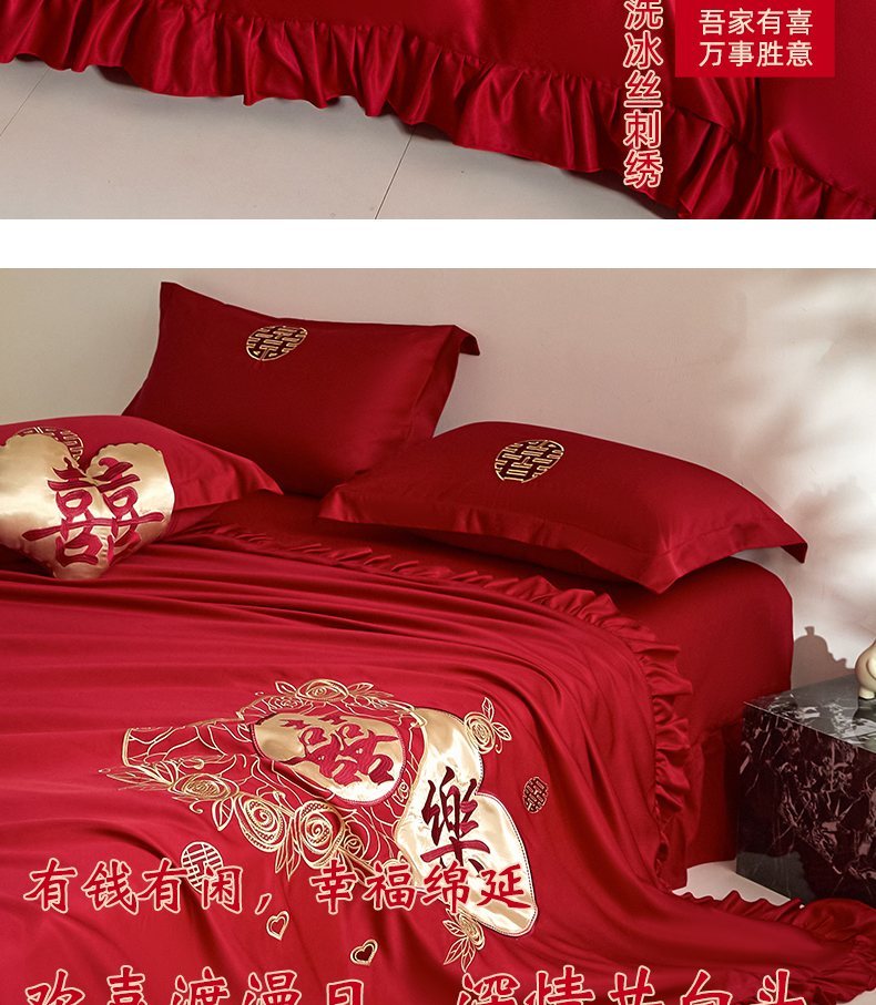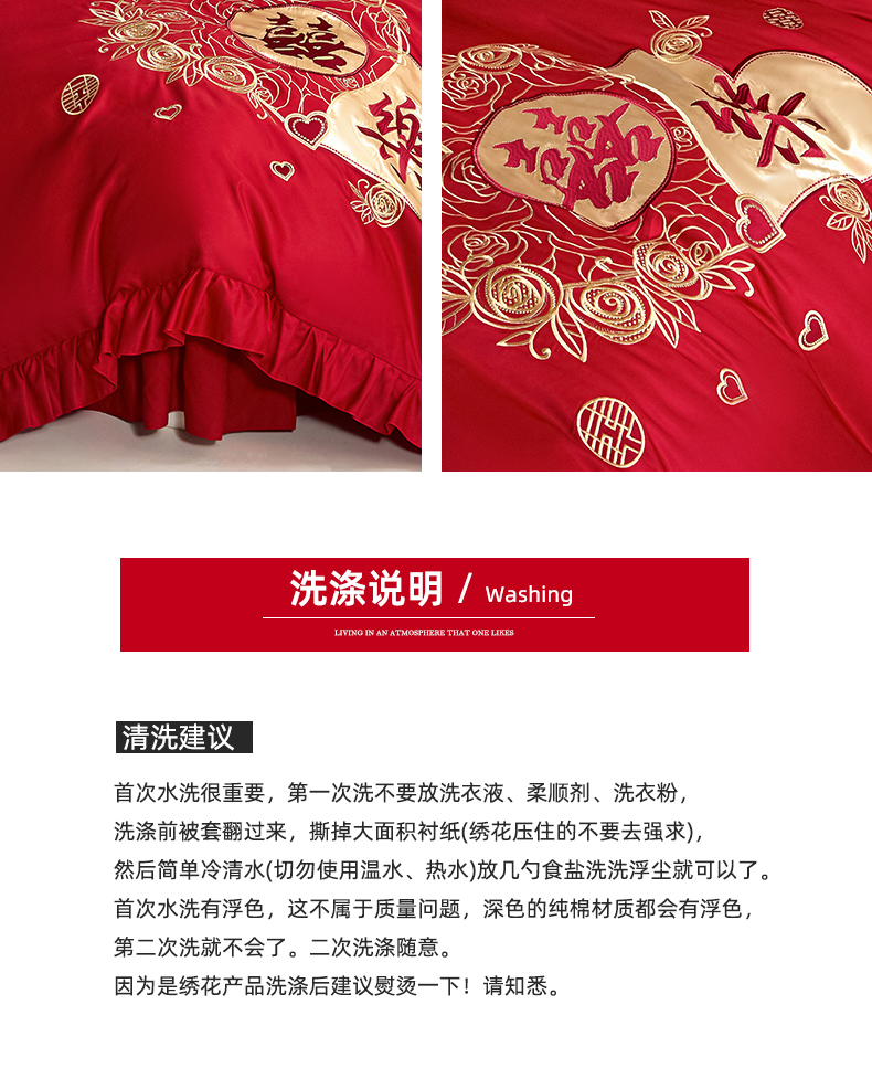 当前位置: 91家纺网 > 商品网购 > 床品套件 > 四件套 > 婚庆四件套 > 玉雅家纺 2025新款水洗冰丝刺绣床裙款婚庆四件套 床裙款-心相印
