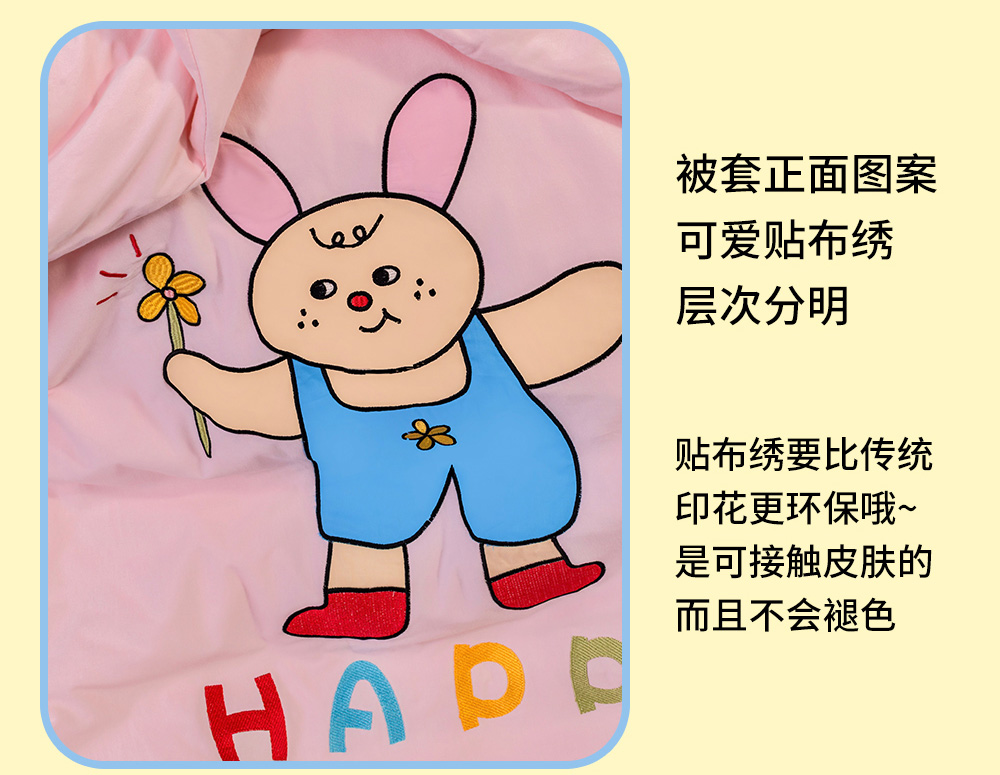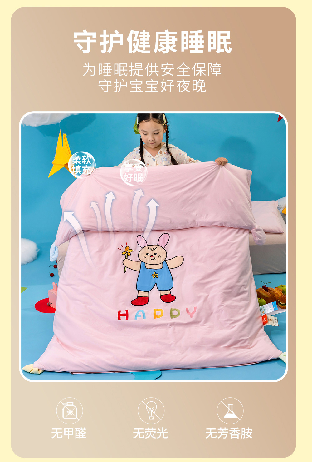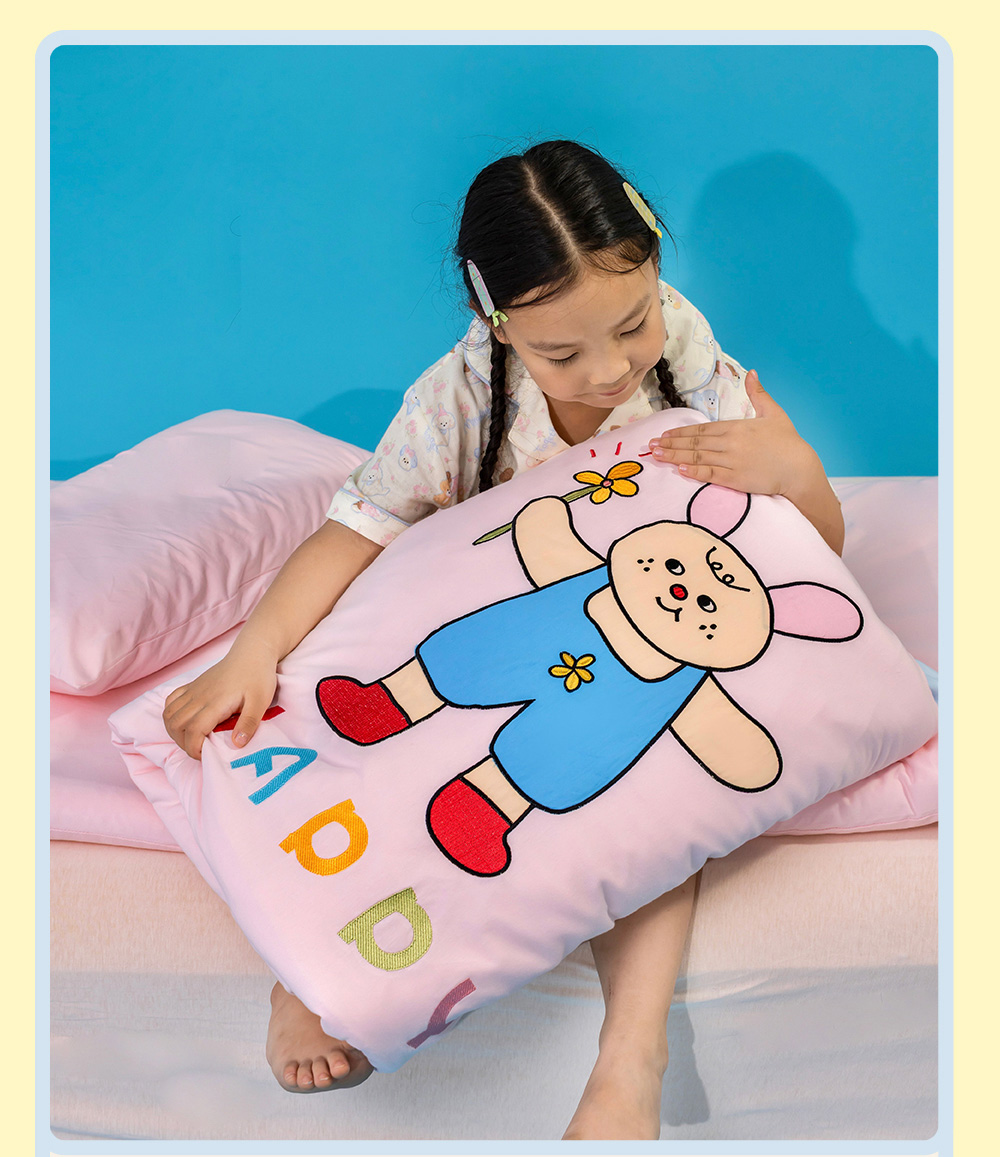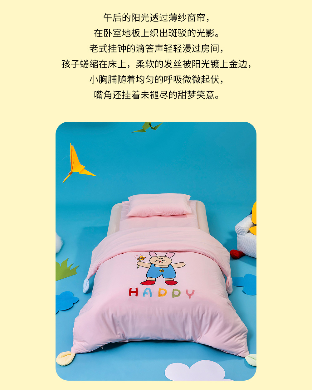 当前位置: 91家纺网 > 商品网购 > 床品套件 > 三件套 > 喜多兔儿童家纺 2025新款小梦幻纯棉针织棉紧密纺绣花幼儿园被子三件套 粉色梦幻小兔