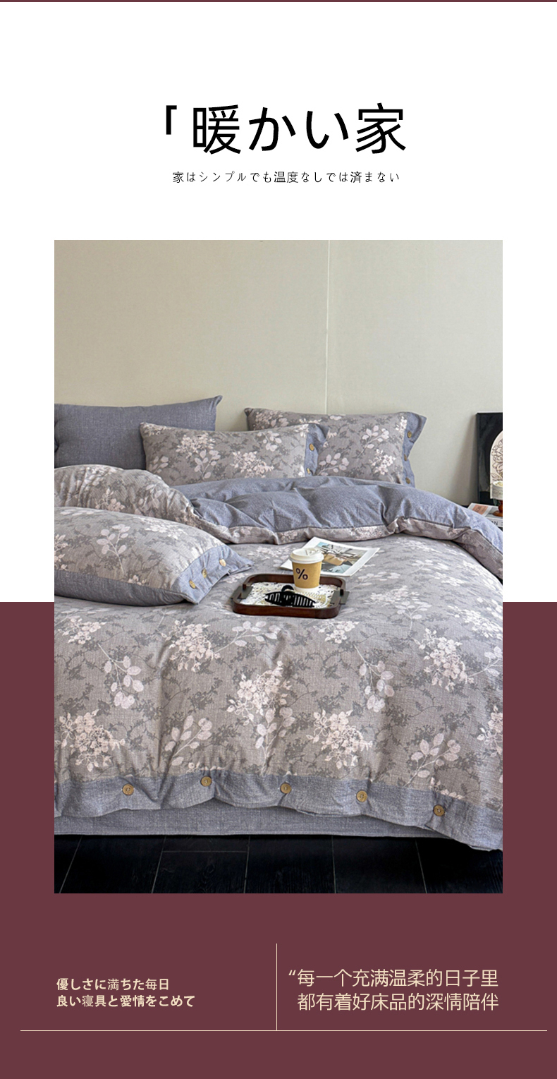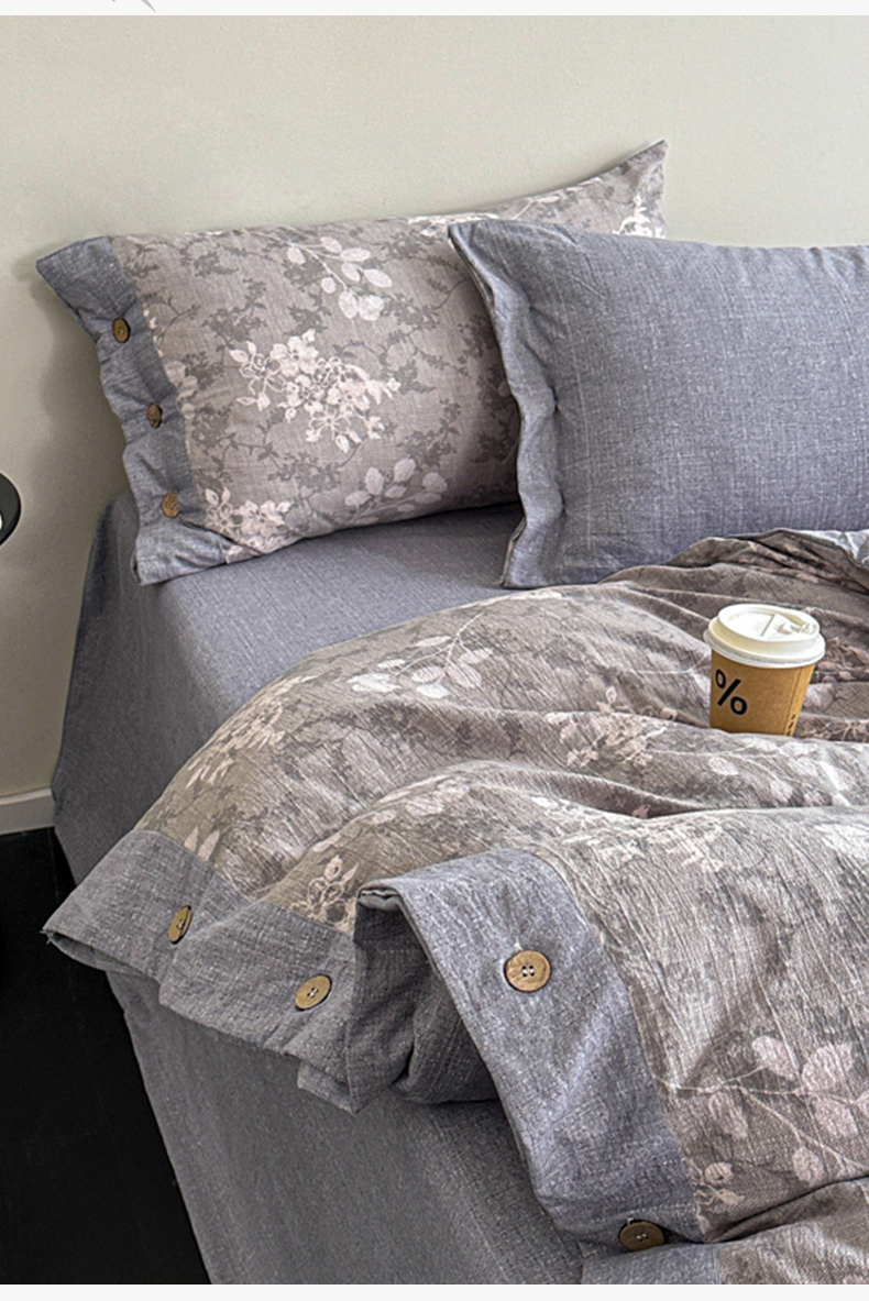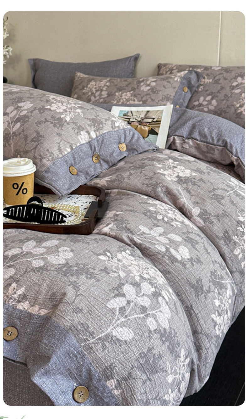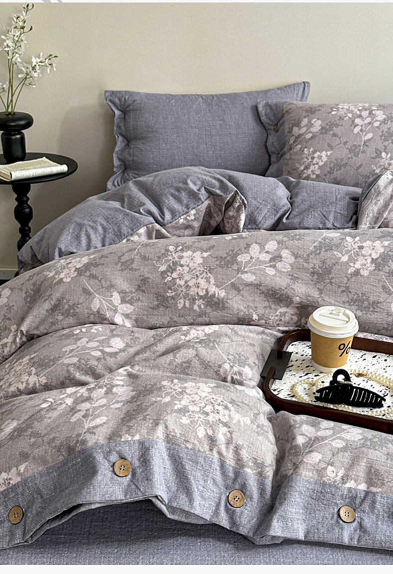 漫仙阁家纺 2025秋冬新品加厚高克重复古风双层纱印花四件套 曼妙花园-灰
