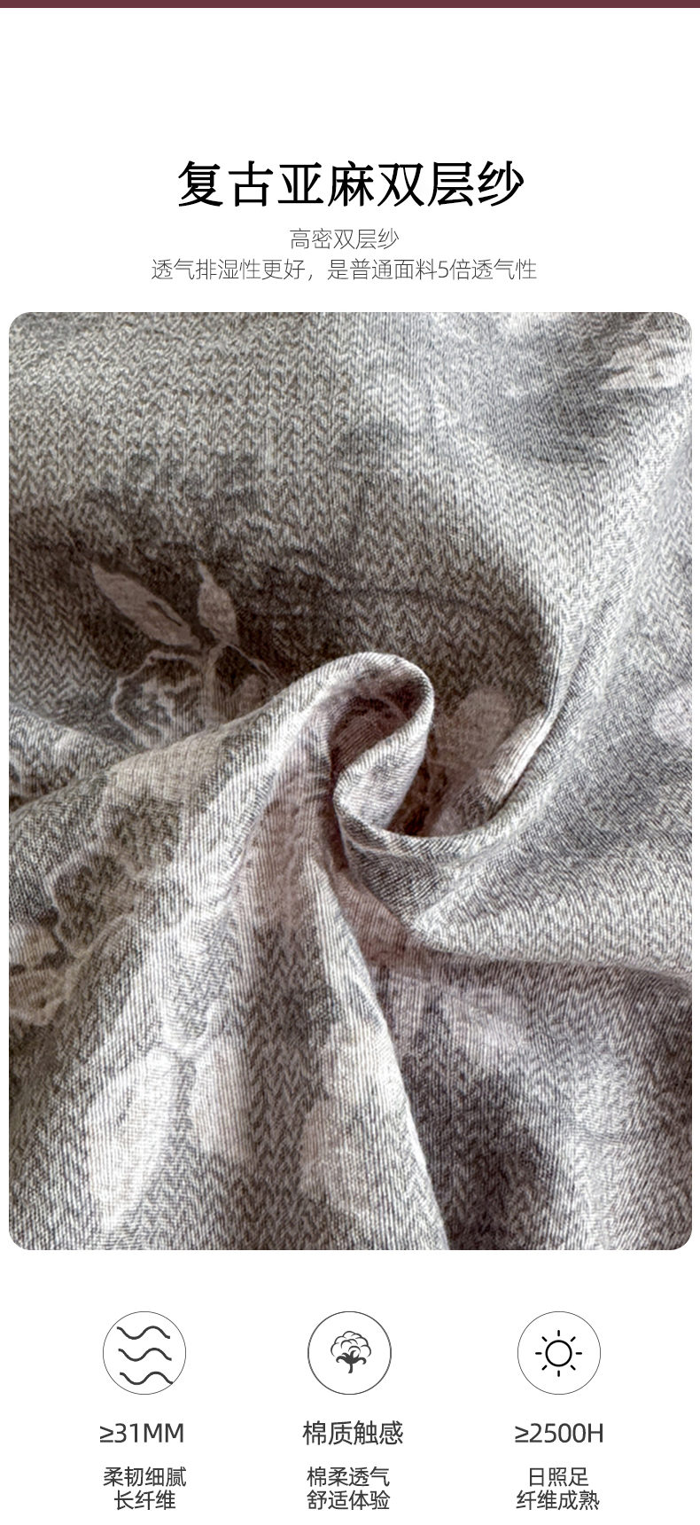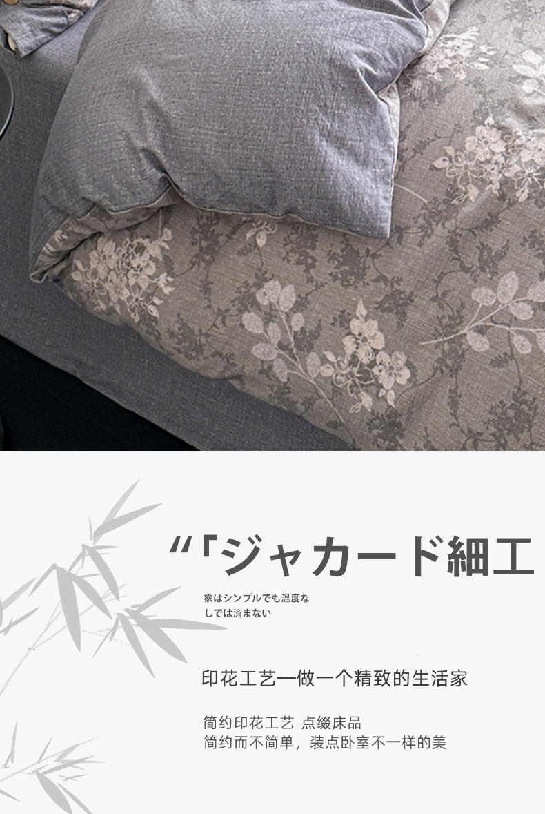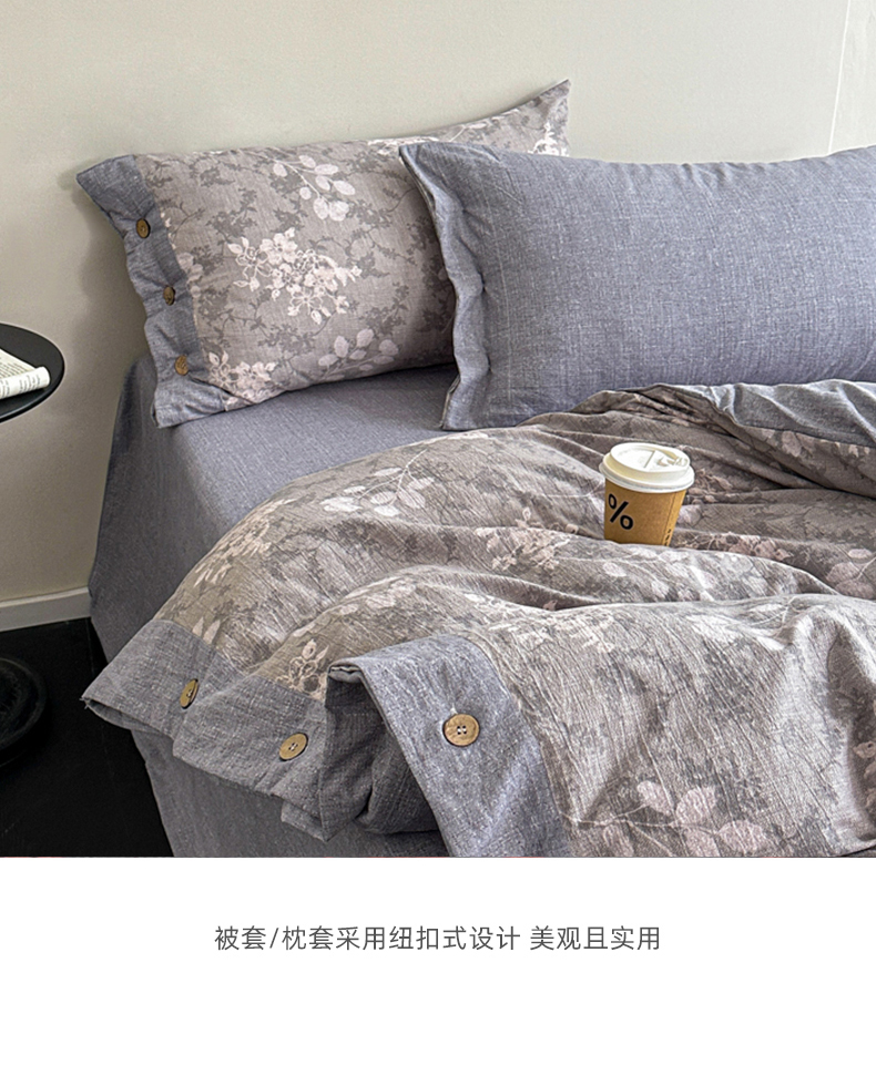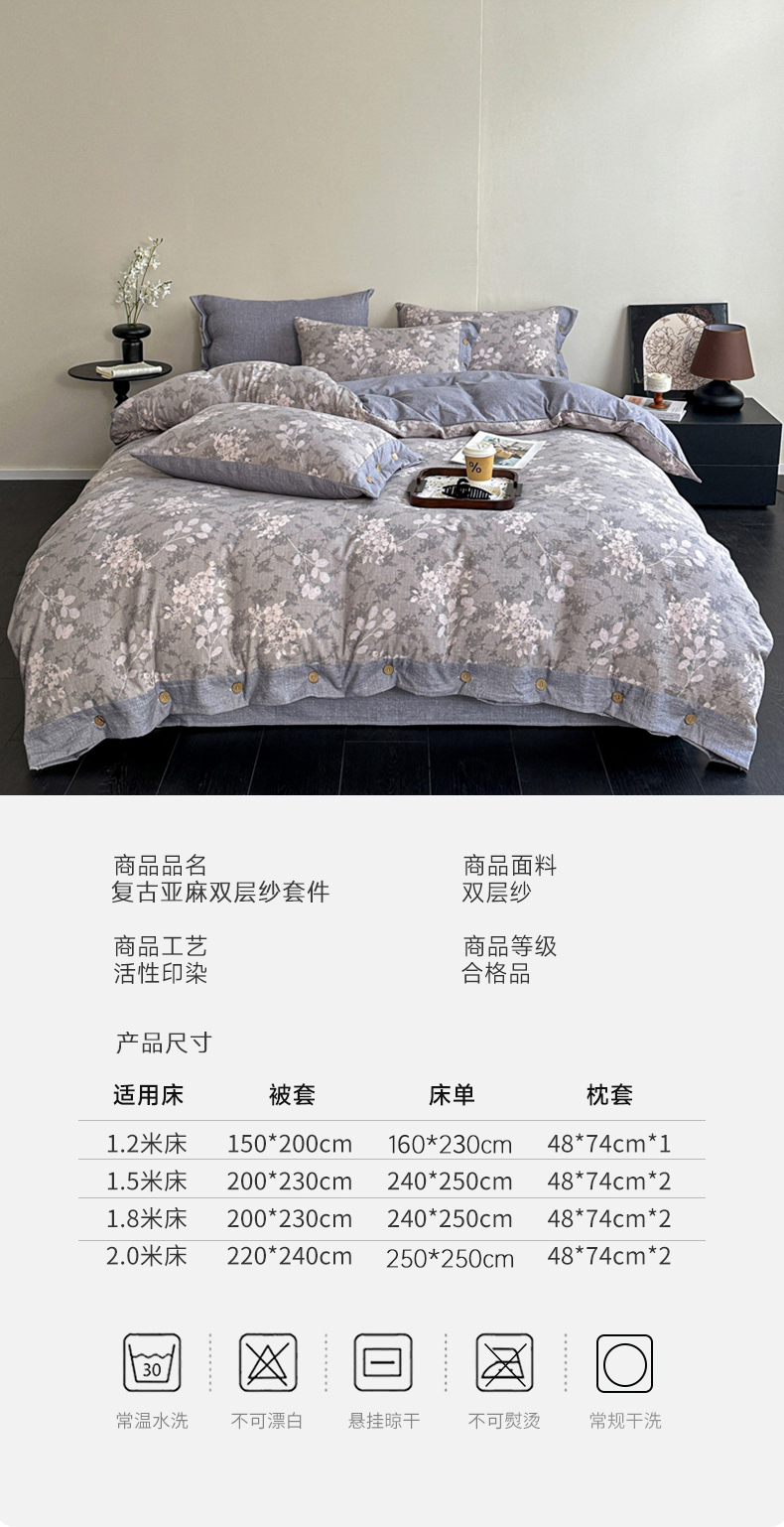 商品名称:漫仙阁家纺 2025秋冬新品加厚高克重复古风双层纱印花四件套 曼妙花园-灰
