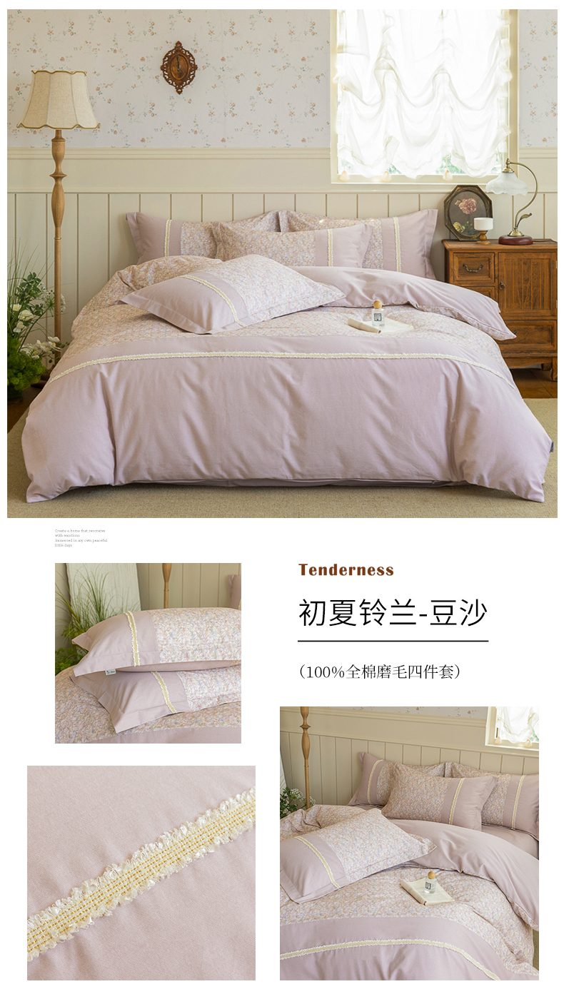 当前位置: 91家纺网 > 商品网购 > 床品套件 > 四件套 > 全棉普通四件套 > 巧玲珑 2025新款织带花边工艺款四件套-初夏铃兰 初夏铃兰-米黄