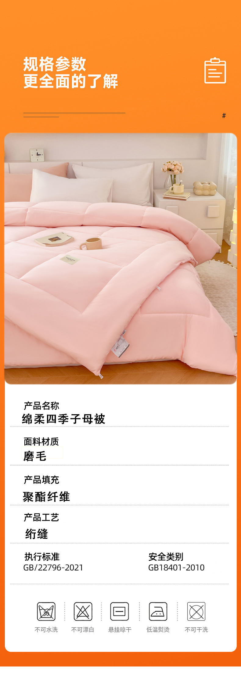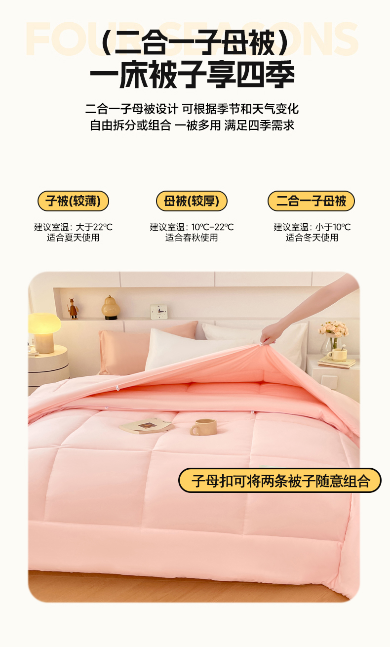 • 91家纺网 家纺一手货源 找家纺 VIP被业 2025新款磨毛二合一扣子款四季子母被学生冬被被子被芯 粉色