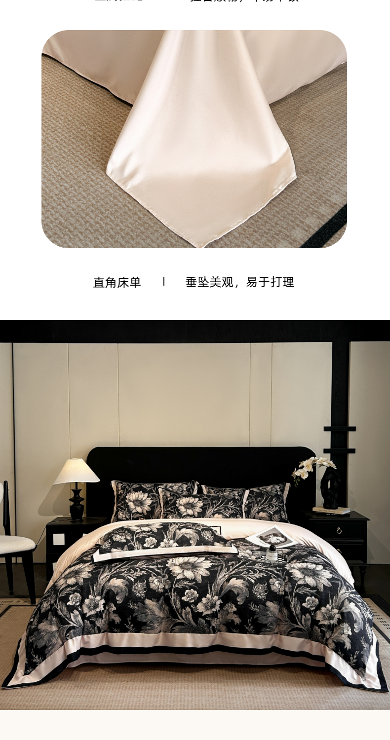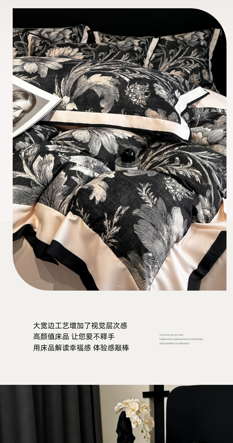 花沐家居 2025新款宽边轻奢亲肤棉四件套 枝语花繁