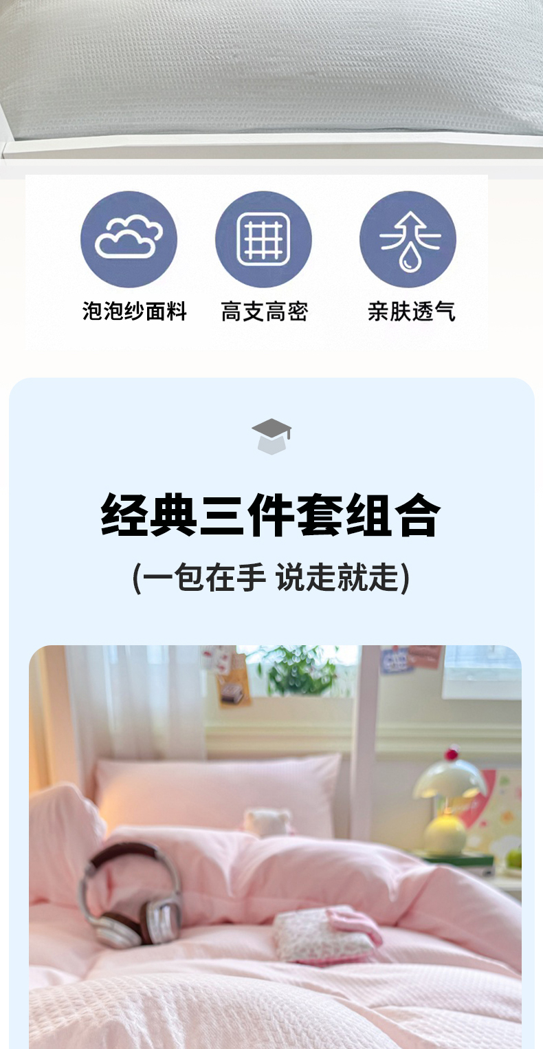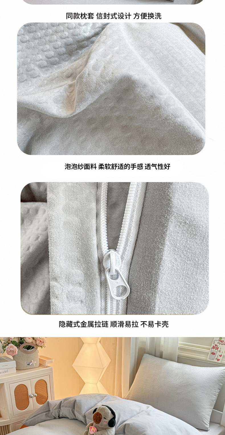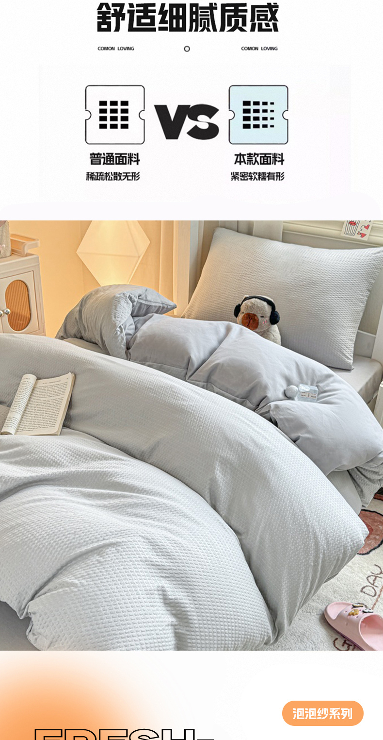 商品名称:麒东家纺 2025新款圆豆纱华夫格学生三件套 灰色