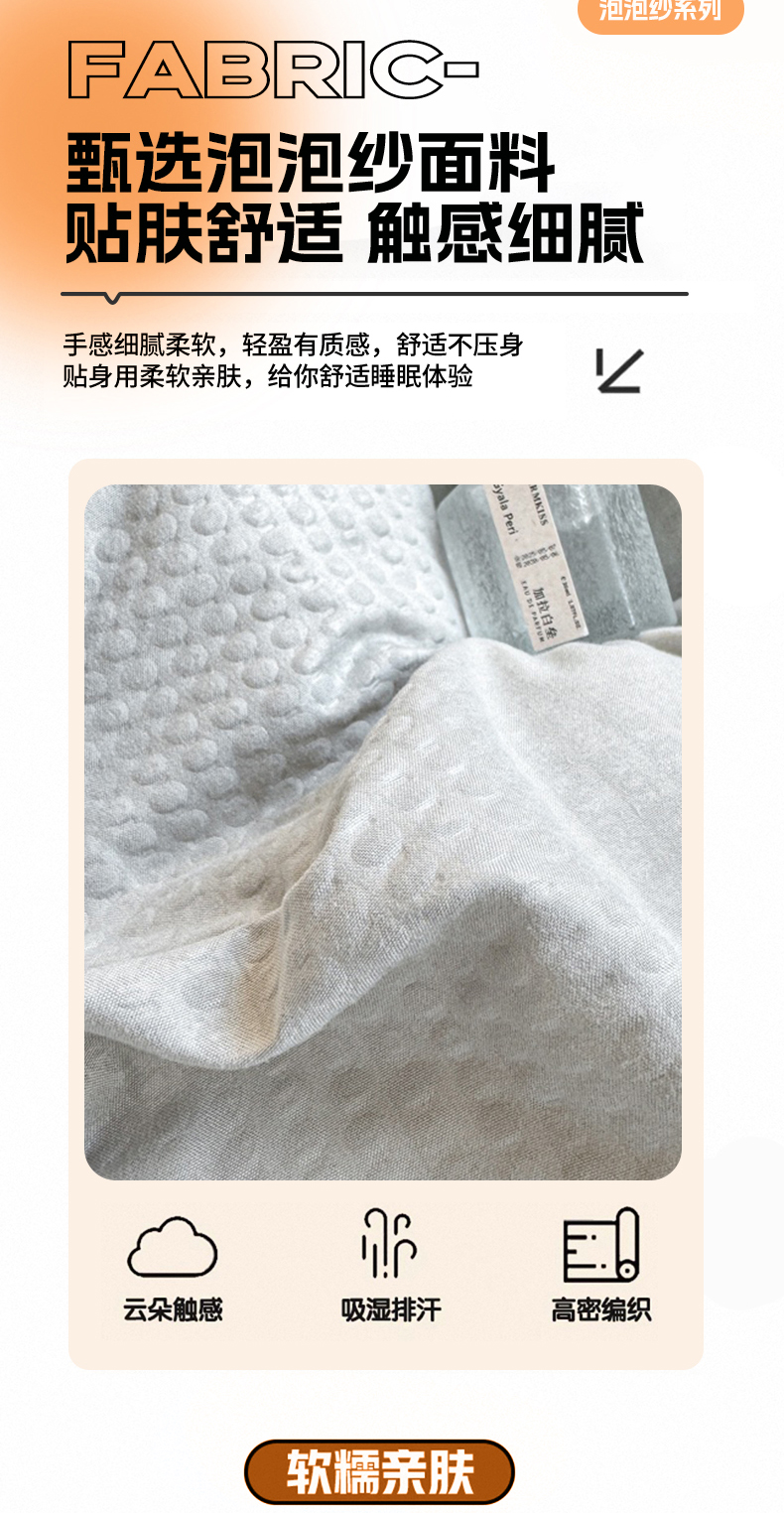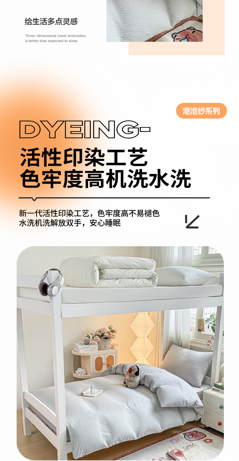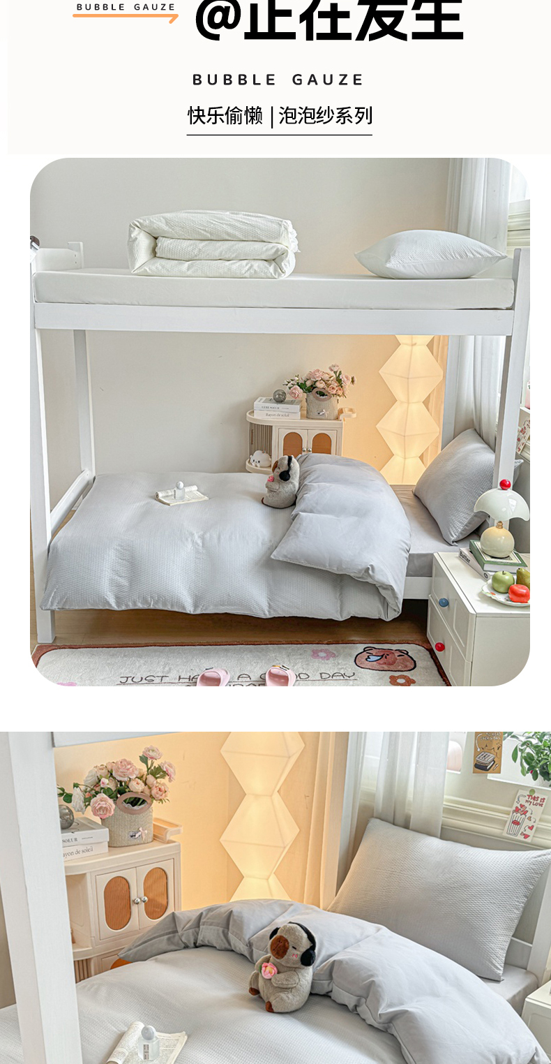 商品名称:麒东家纺 2025新款圆豆纱华夫格学生三件套 灰色