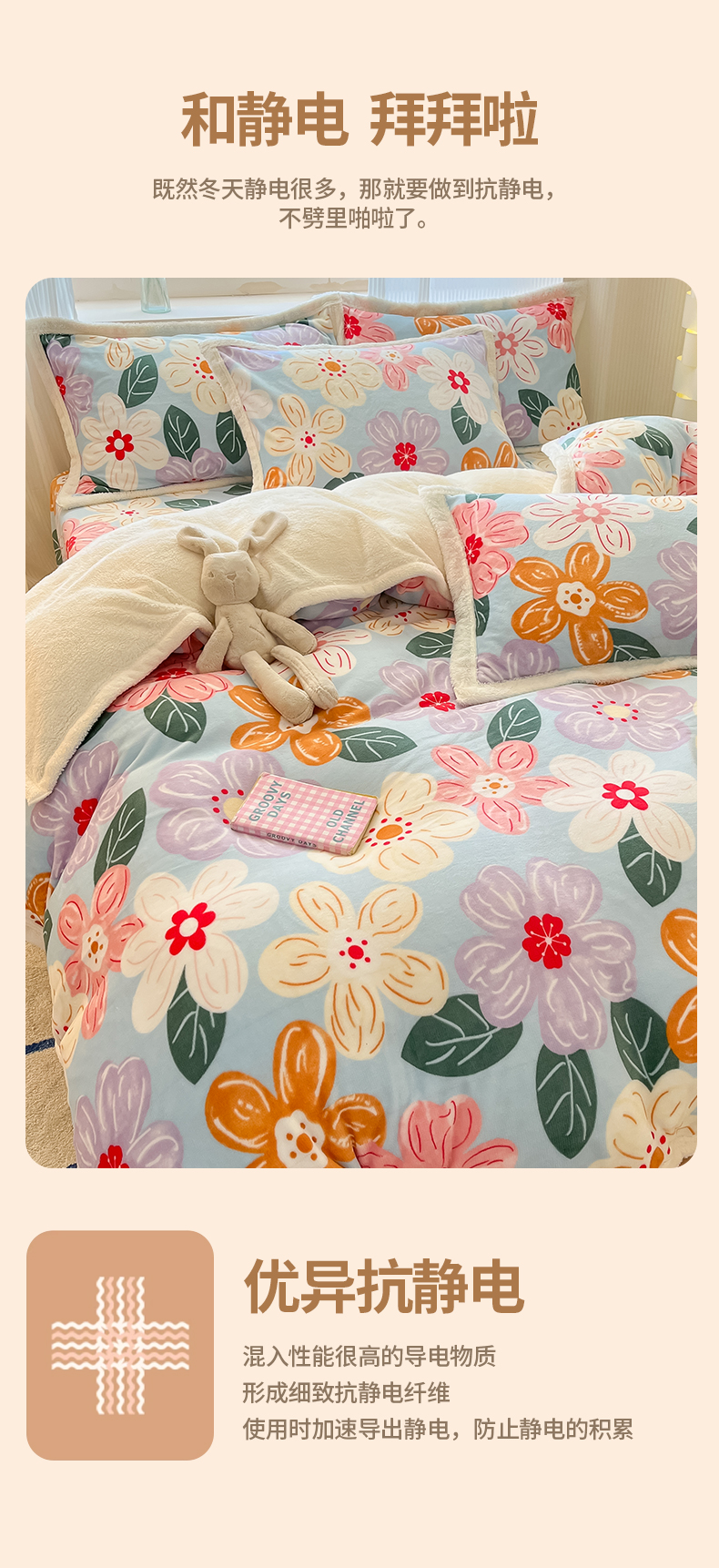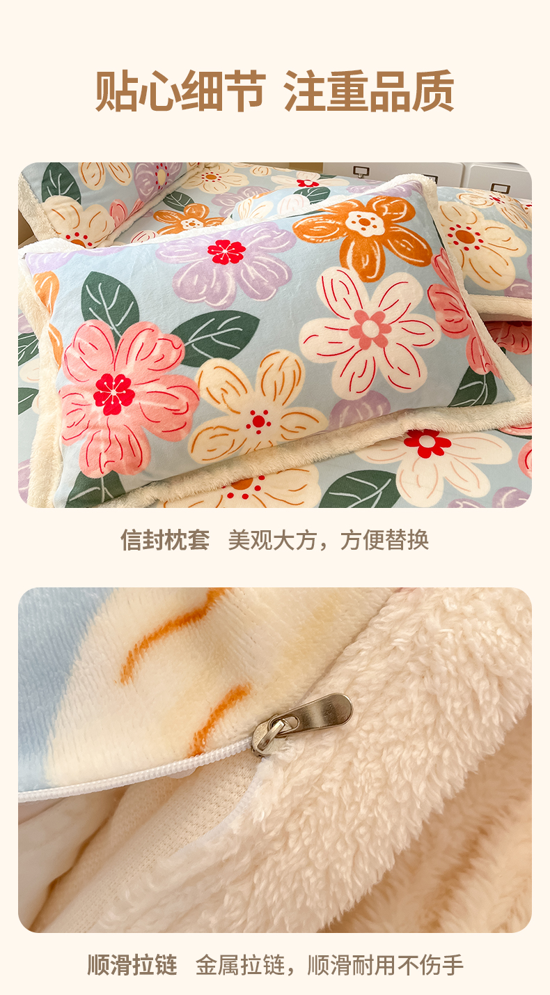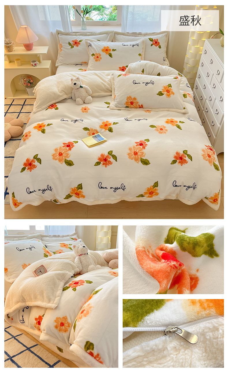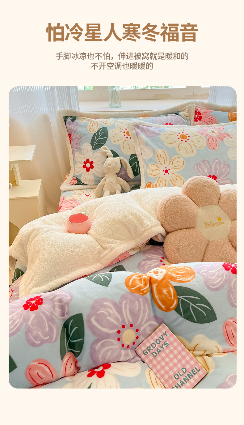 当前位置: 91家纺网 > 商品网购 > 床品套件 > 四件套 > 羊羔绒四件套 > 娜朵家纺 2025新款加厚包边羊羔绒印花四件套 花漾