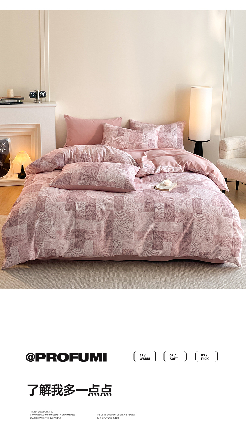 当前位置: 91家纺网 > 商品网购 > 床品套件 > 四件套 > 全棉普通四件套 > 莱登卡奴 2025新款A类100%全棉磨毛休闲中古系列四件套 伯格-粉