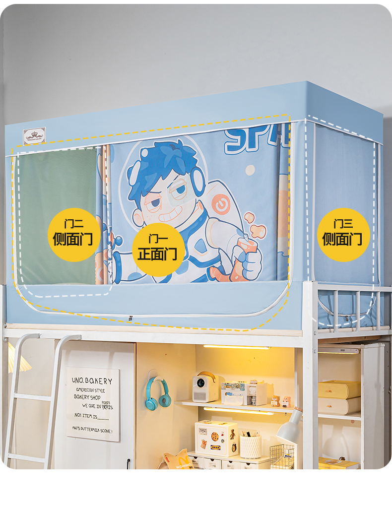 (总)新太阳2022新款新款学生宿舍免安装遮光蚊帐天空系列,梦幻星系,外太空,星球大战,宇航员-蓝,宇航员-黑