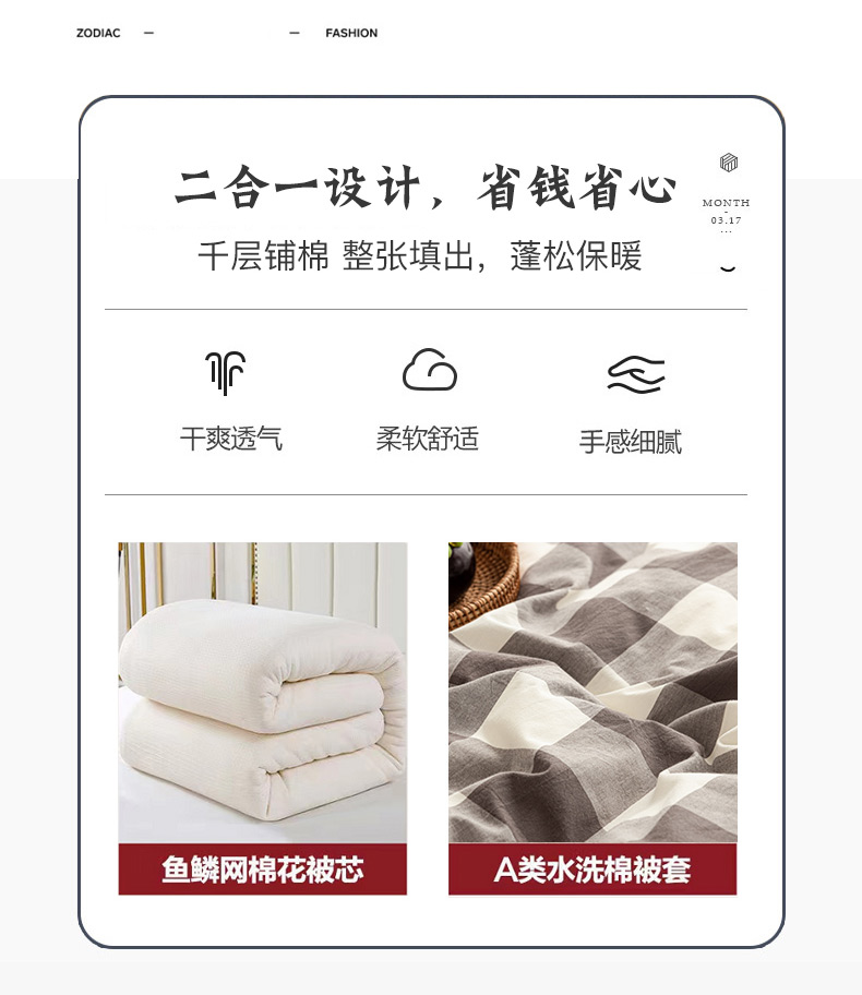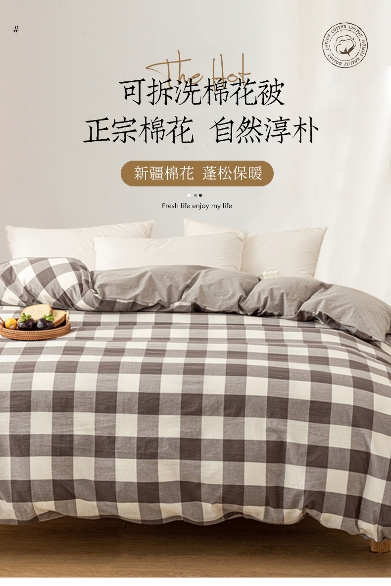 • 91家纺网 家纺一手货源 找家纺 悠米悠家 2025新款蓬松保暖可拆洗新疆棉花被子被芯 灰中格
