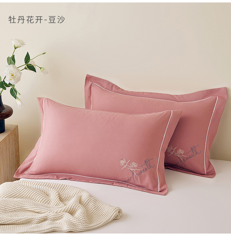 商品名称:丰淘家纺 2025新款60水洗棉精美刺绣枕套-牡丹花开 牡丹花开-豆沙