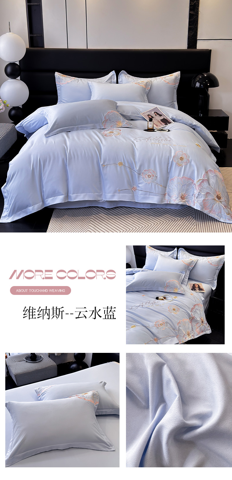 当前位置: 91家纺网 > 商品网购 > 床品套件 > 四件套 > 其它四件套 > 慕语家纺 2025新款亲肤棉刺绣四件套系列--维纳斯(专版花型) 维纳斯--云水蓝