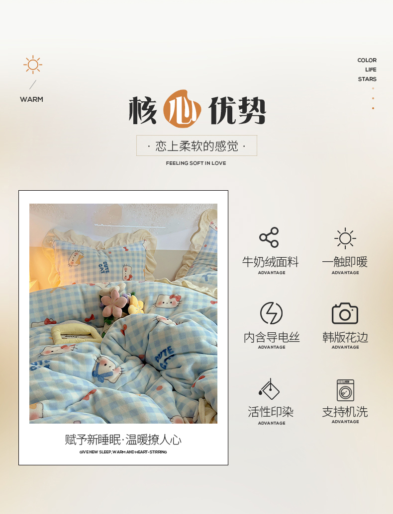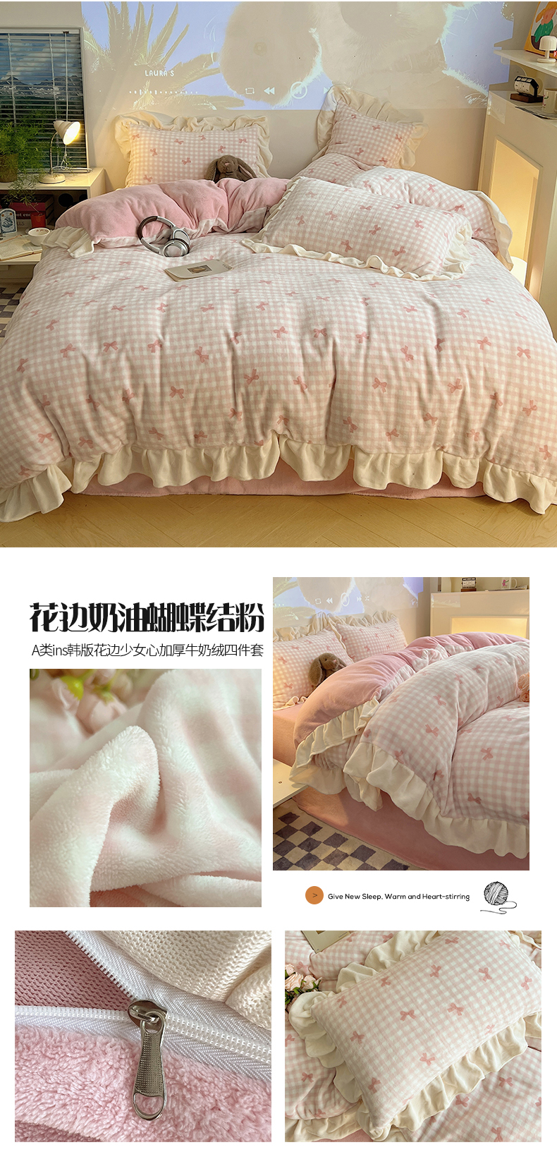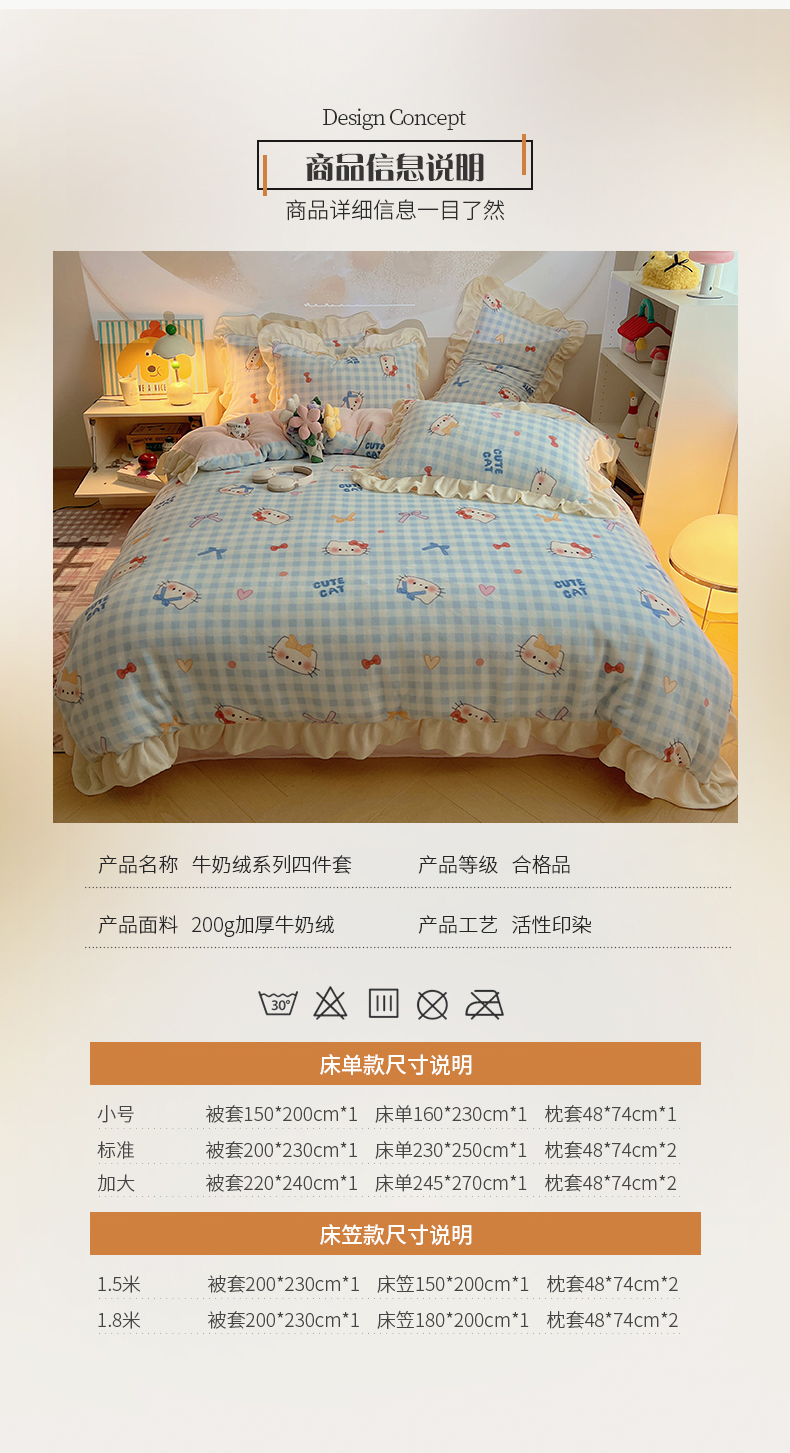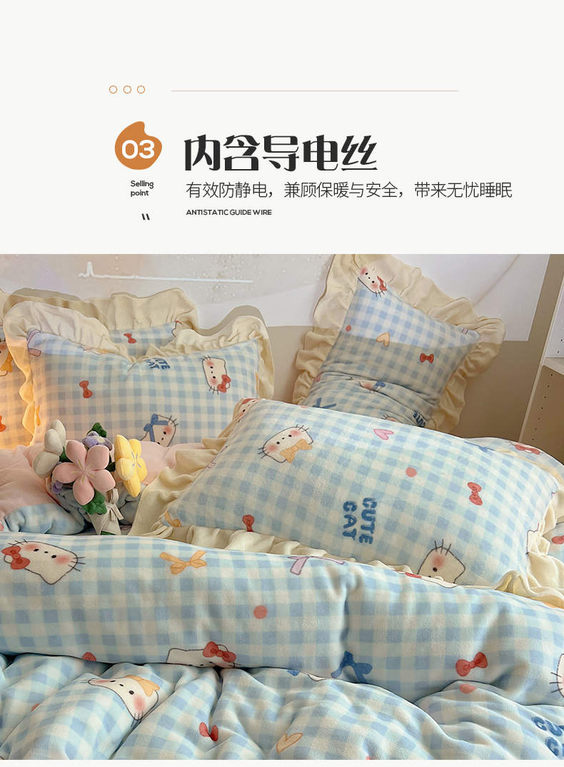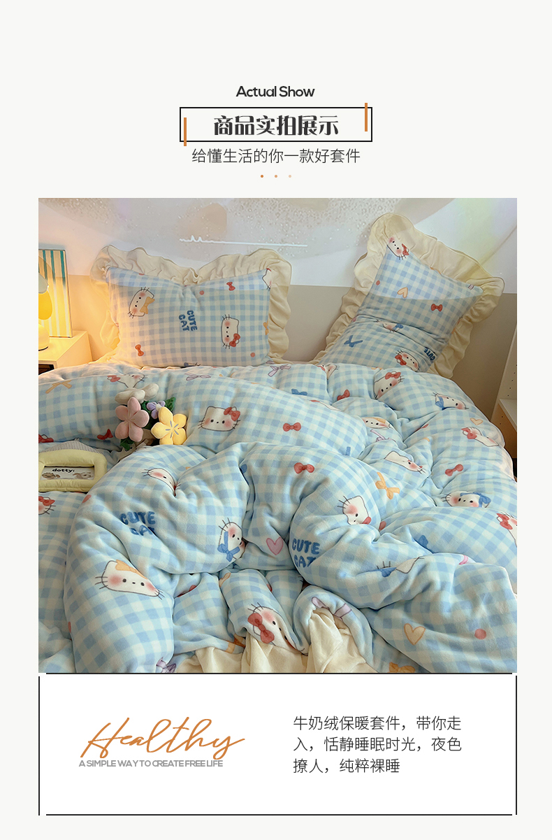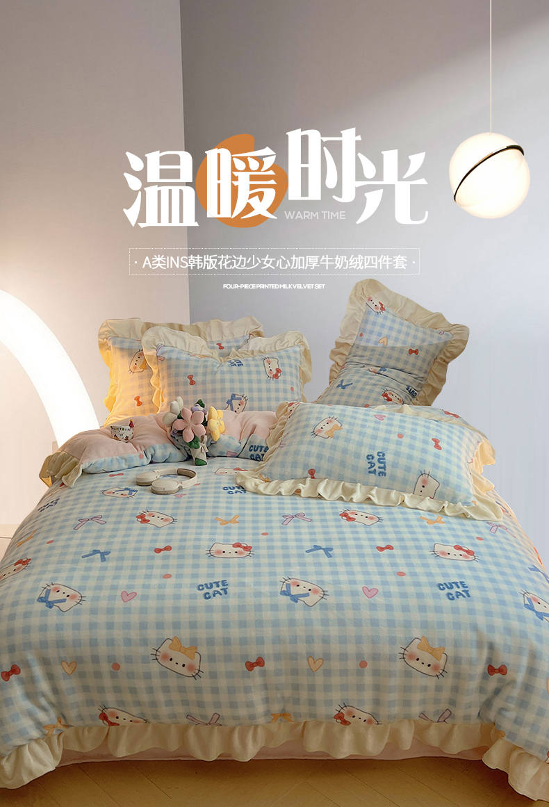 当前位置: 91家纺网 > 商品网购 > 床品套件 > 四件套 > 牛奶绒四件套 > 桃子家居 2025新款A类ins韩版花边少女心可爱卡通碎花加厚牛奶绒四件套 绒-花边可可猫咪蓝