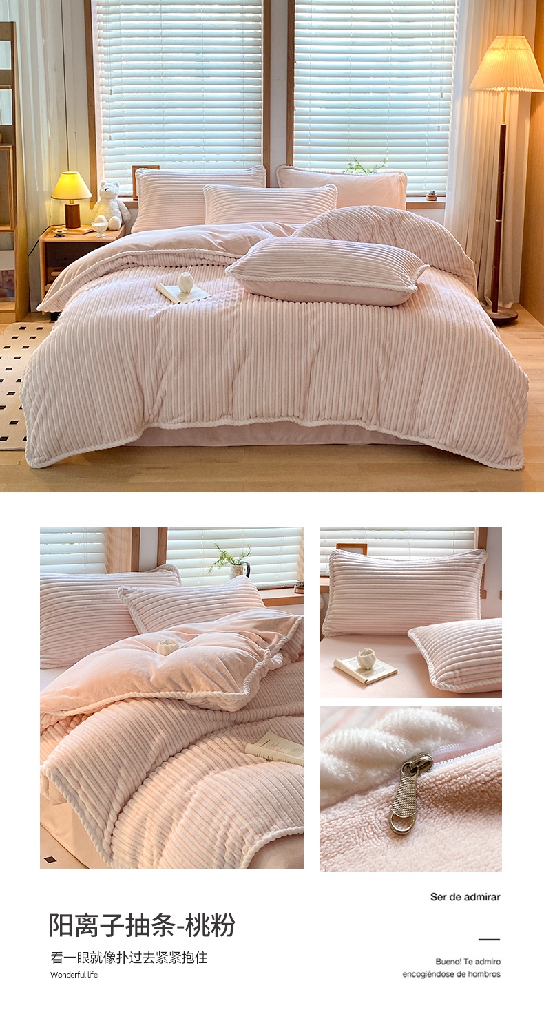 (总)蓝极人 2025新款抽条阳离子提花牛奶绒四件套,阳离子抽条-浅蓝,阳离子抽条-果绿,阳离子抽条-奶黄,阳离子抽条-奶咖,阳离子抽条-浅灰,阳离子抽条-浅紫,阳离子抽条-桃粉