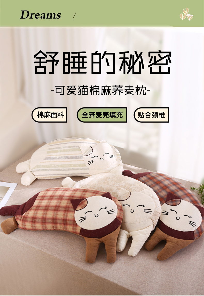 商品名称:金牛枕芯 2025新款可爱猫棉麻荞麦枕枕头枕芯-可爱猫系列 可爱猫-米色