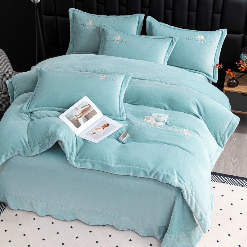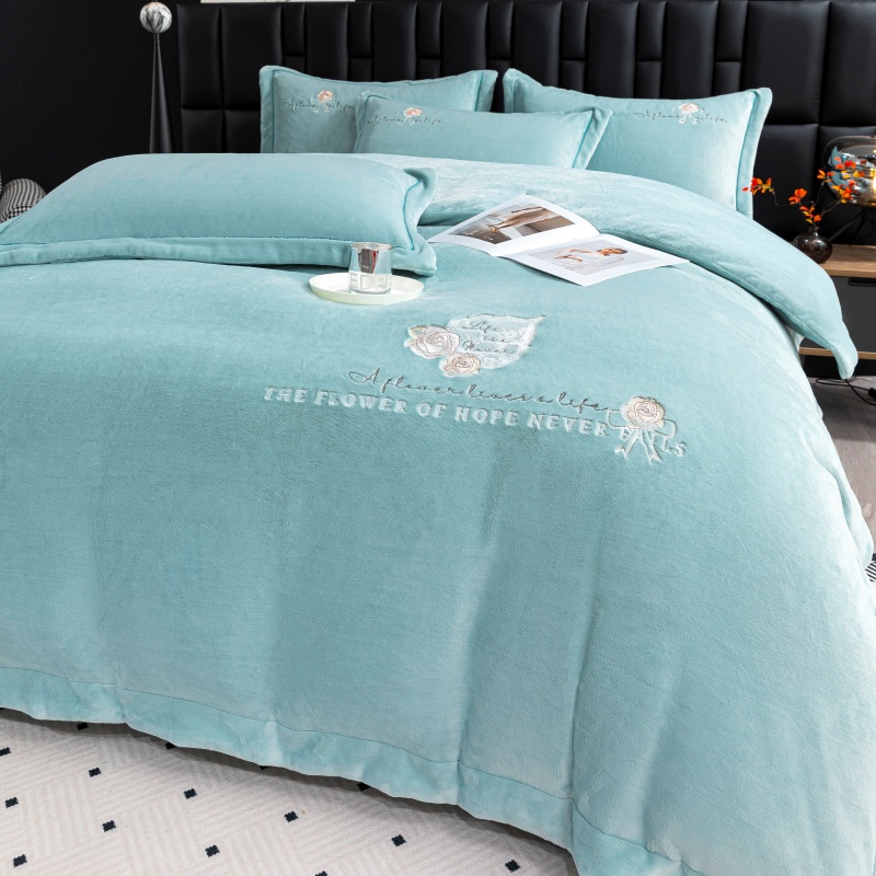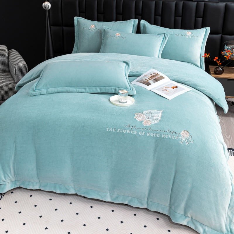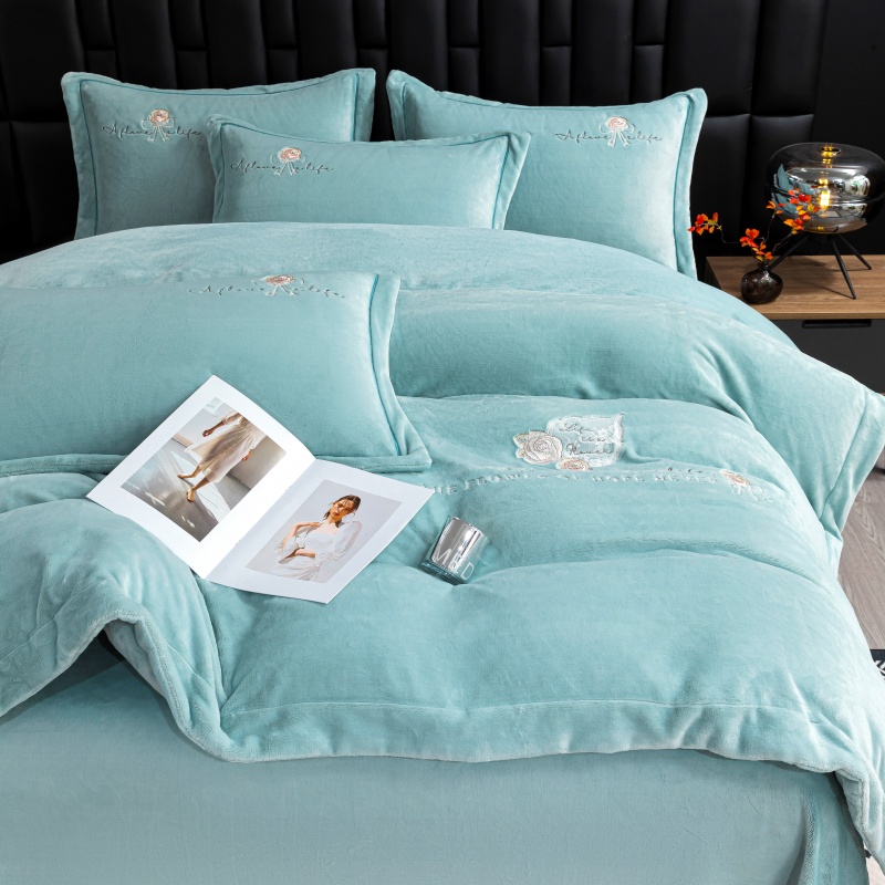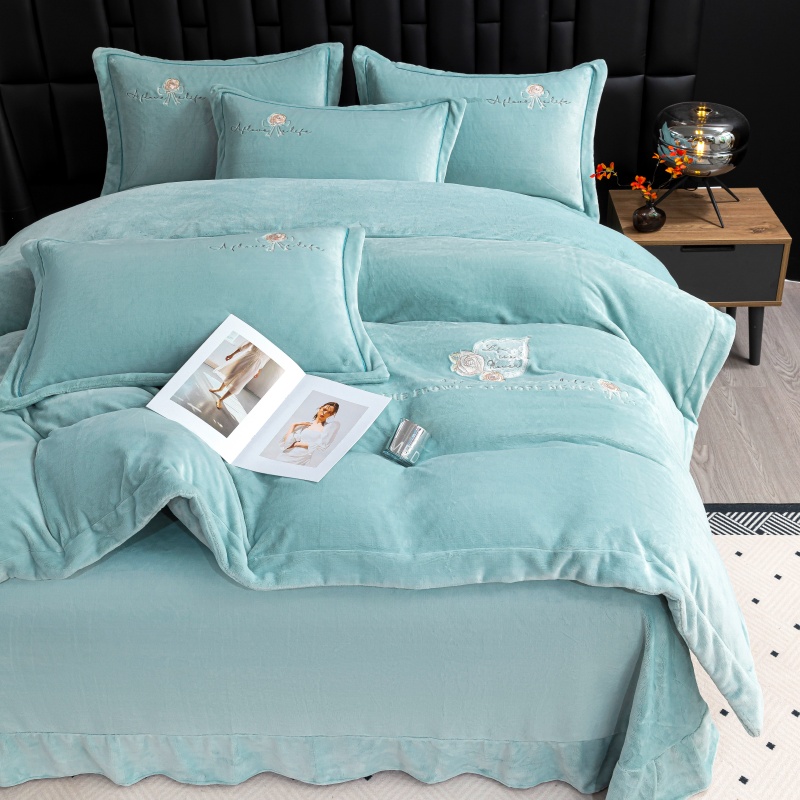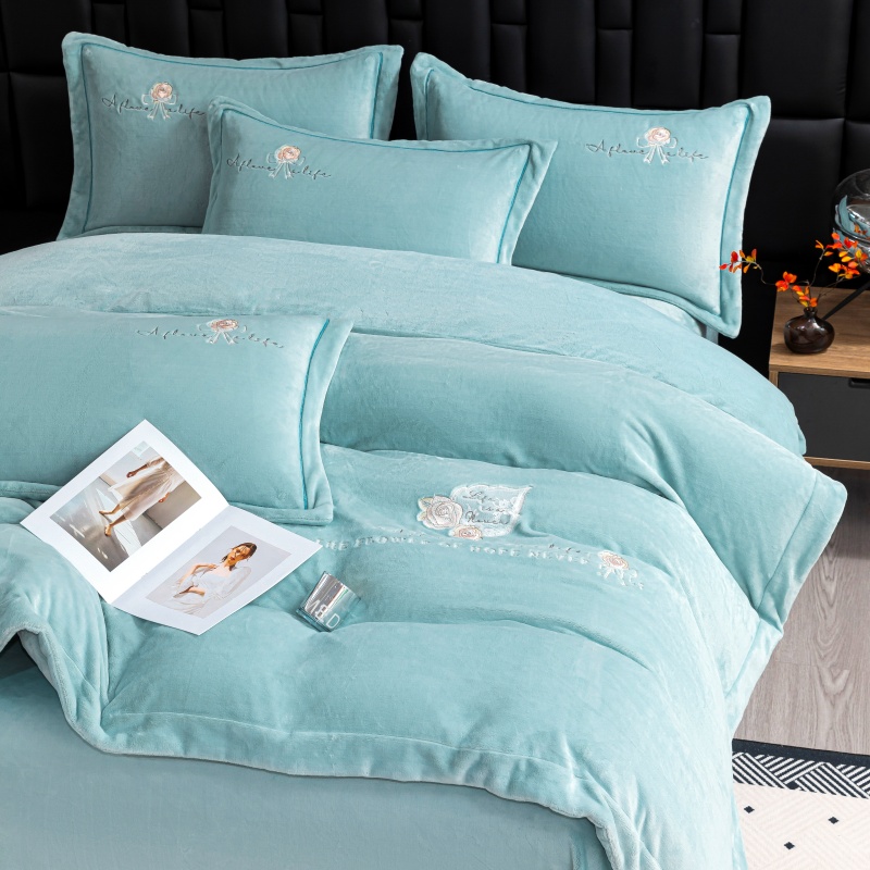 商品名称:优姿家纺 2025新款300克全消光牛奶蛋白蚕丝绒四件套 凯丽-天兰