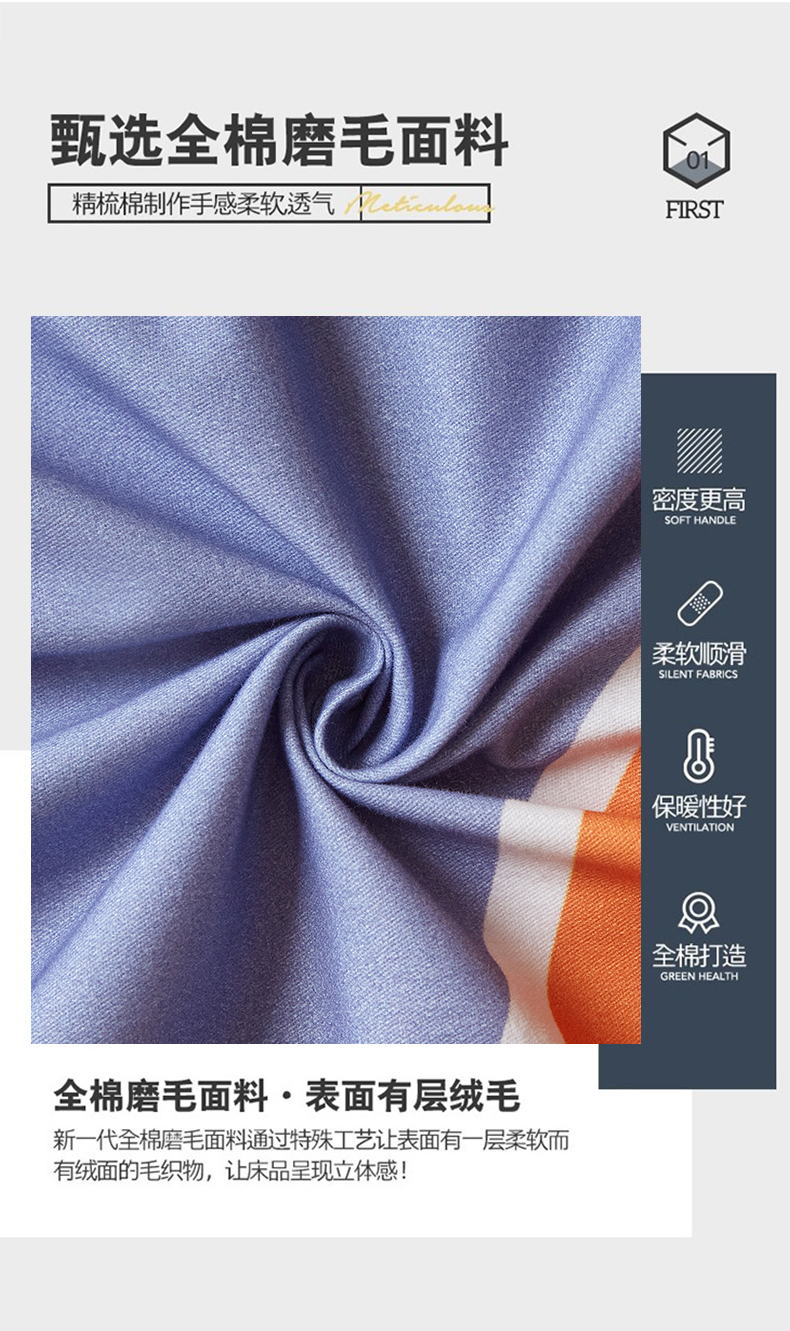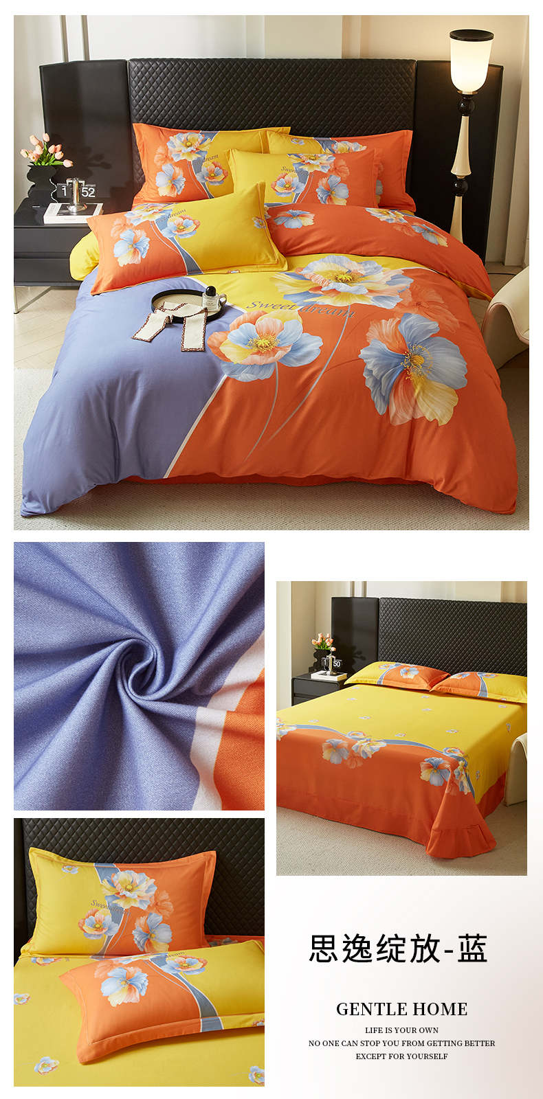 商品名称:金纱玉纺 2025年新款秋冬全棉印花四件套 思逸绽放-蓝