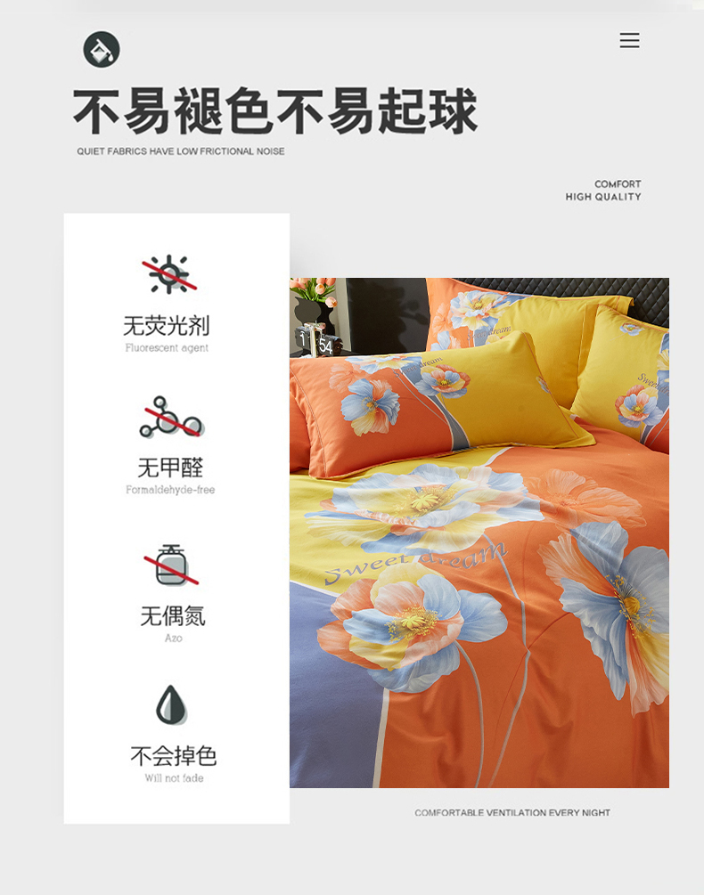 金纱玉纺家纺 2024新款全棉大版印花13372四件套 幽香恋曲,幽香恋曲