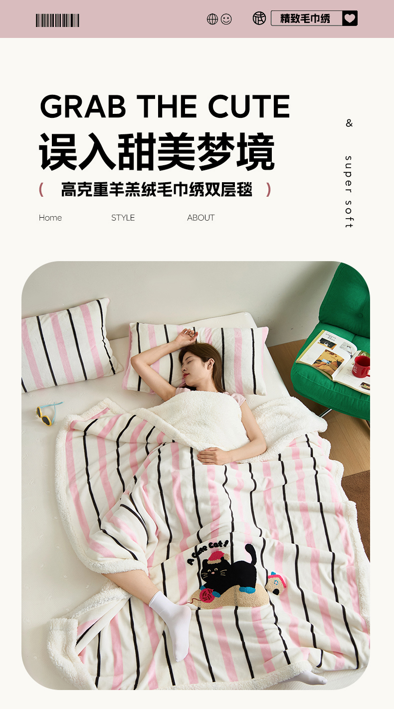 商品名称:呗旺鹿 2025新款高克重羊羔绒牛奶绒毛巾绣双层毯 黑色小狗