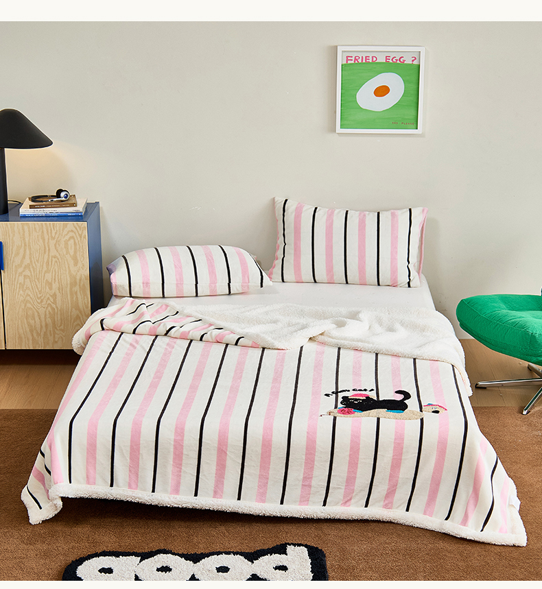 呗旺鹿 2025新款高克重羊羔绒牛奶绒毛巾绣双层毯 黑色小狗