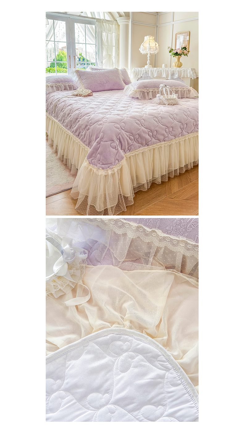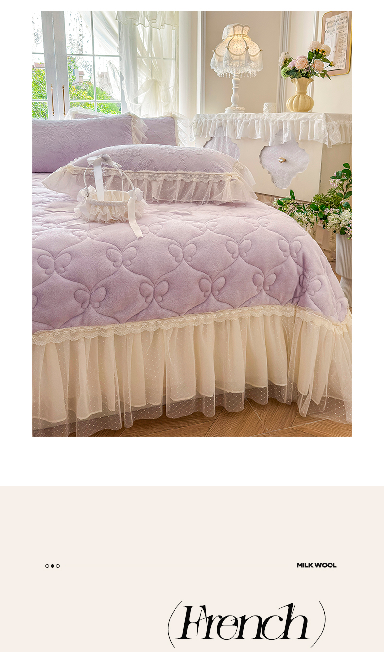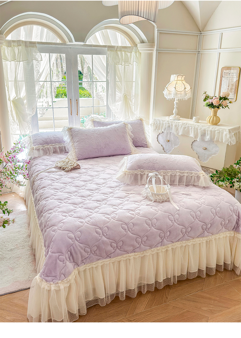 虹星家纺 2025新款法式雕花牛奶绒花边床盖四件套-星光碟影 星光蝶影-丁香紫