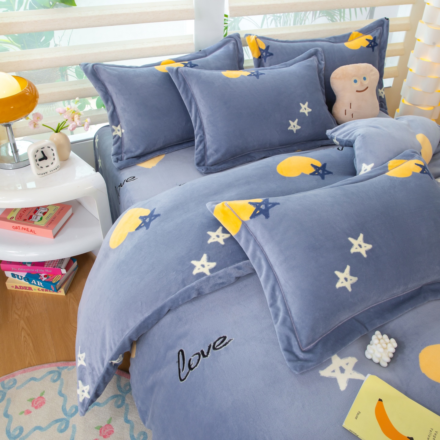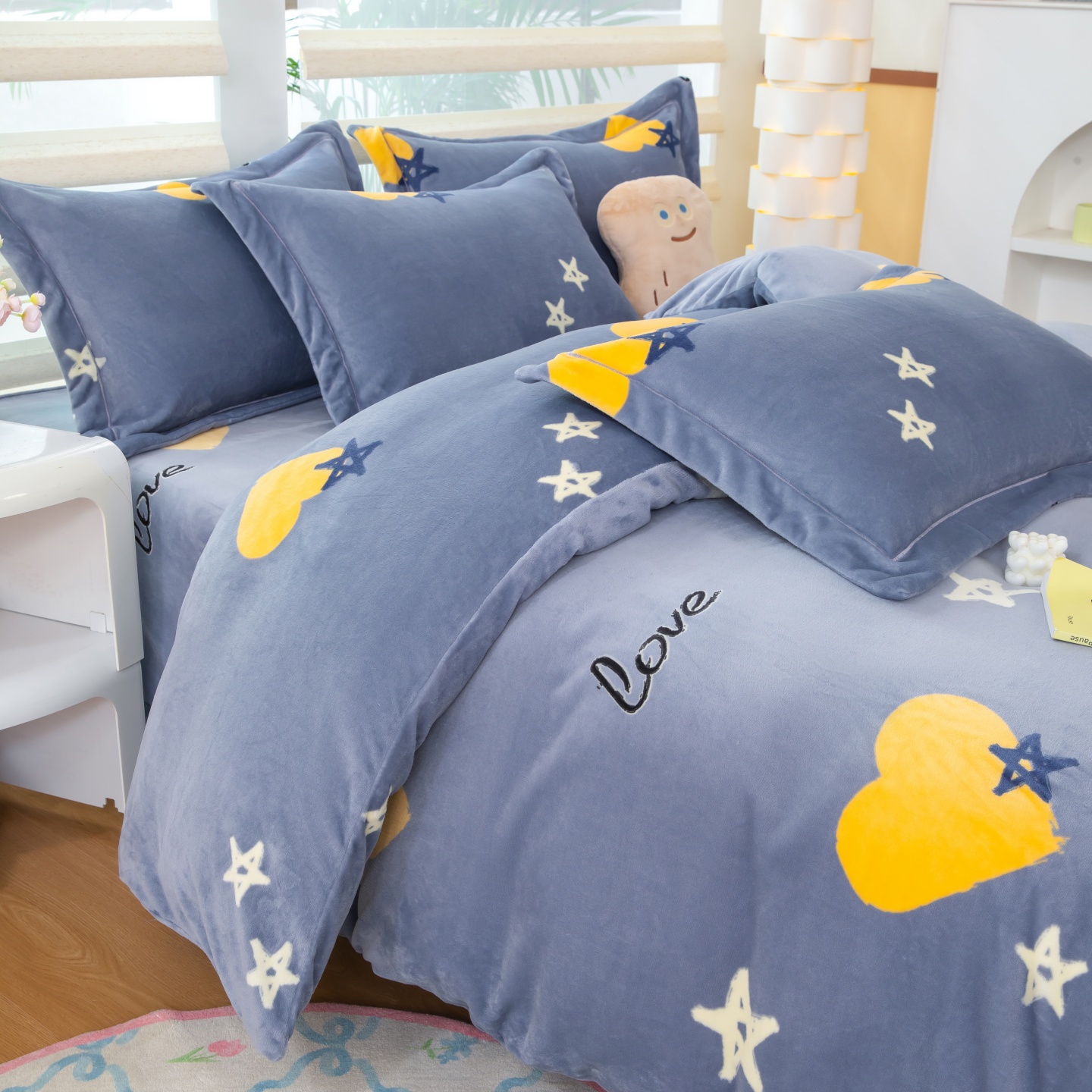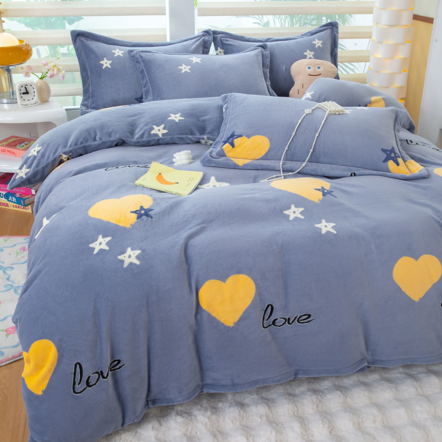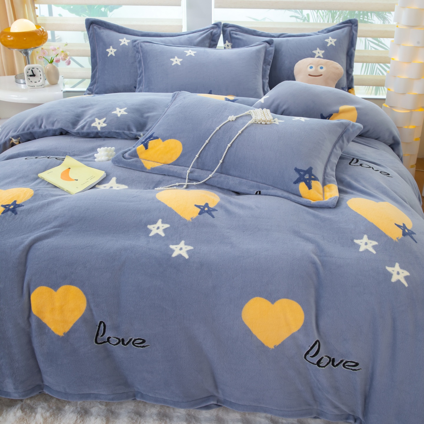 商品名称:优姿家纺 2025新款加厚全消光牛奶绒印花四件套 心情爱恋