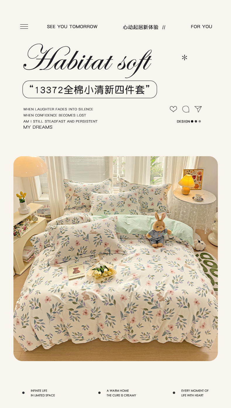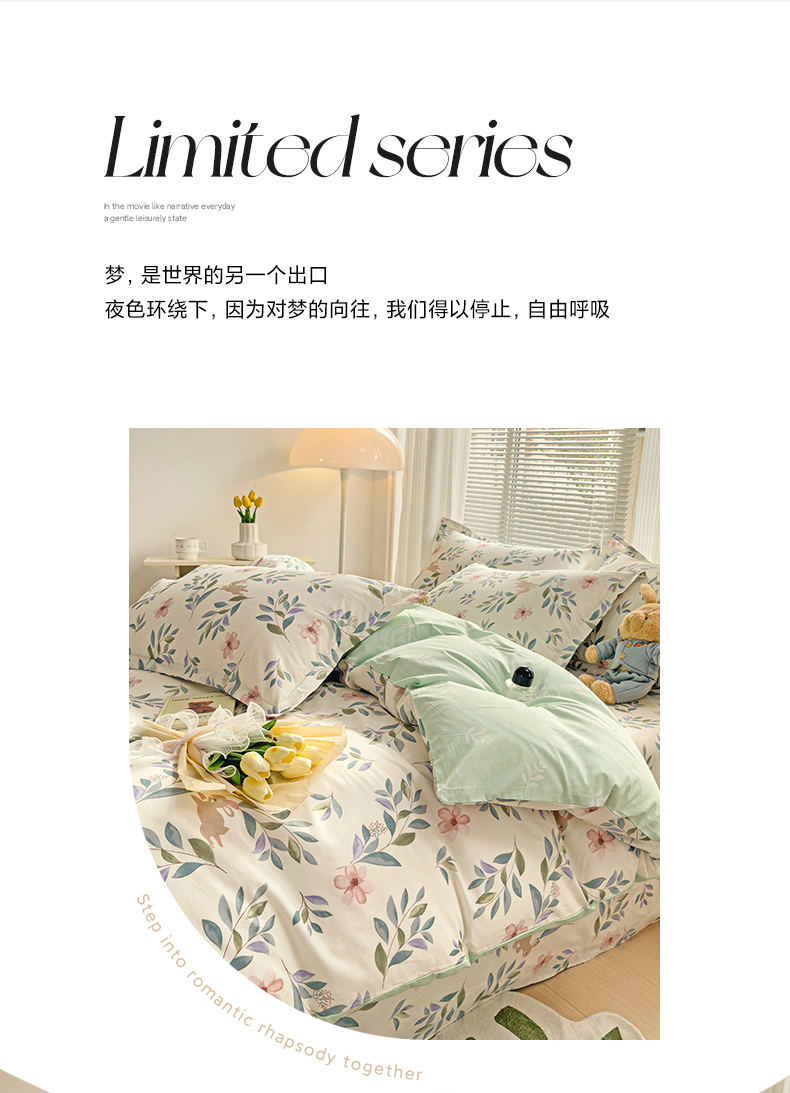 当前位置: 91家纺网 > 商品网购 > 床品套件 > 四件套 > 全棉普通四件套 > 金盛纺 2025新款全棉印花四件套 轻纱漫舞