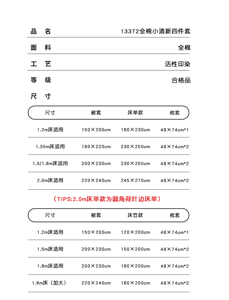 1.8m床笠款四件套-(被套200*230,床笠180*200,枕套48*74*2) | ¥125.00 |
