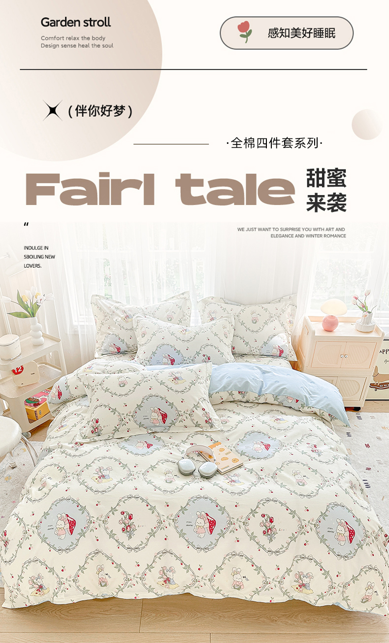 当前位置: 91家纺网 > 商品网购 > 床品套件 > 四件套 > 全棉普通四件套 > 金盛纺 2025新款全棉印花四件套 春游泡泡