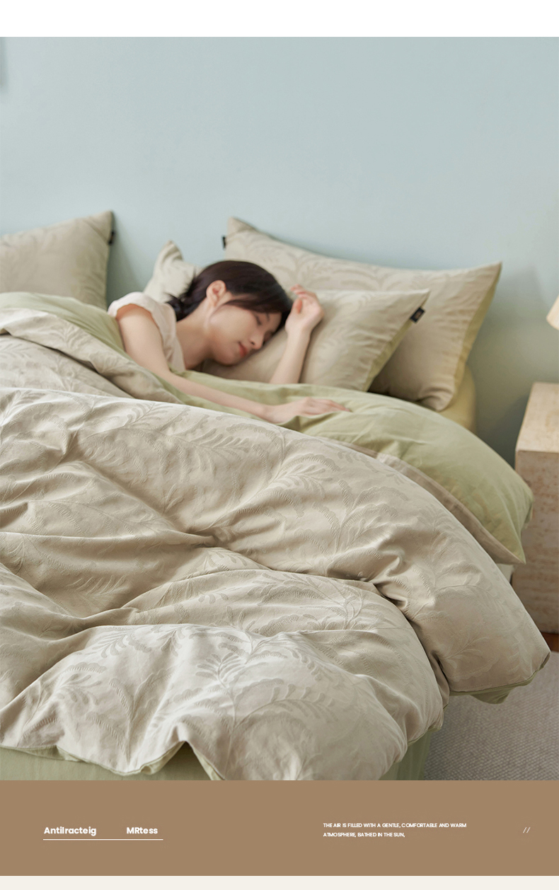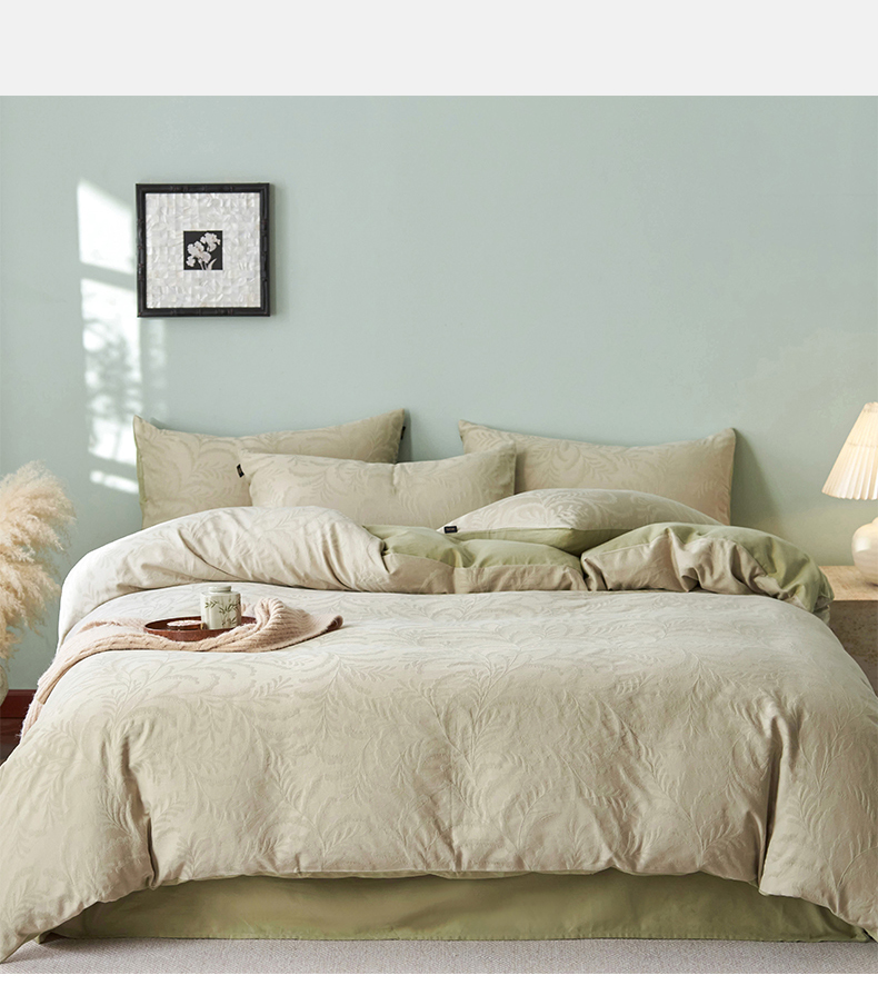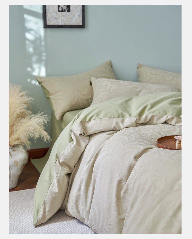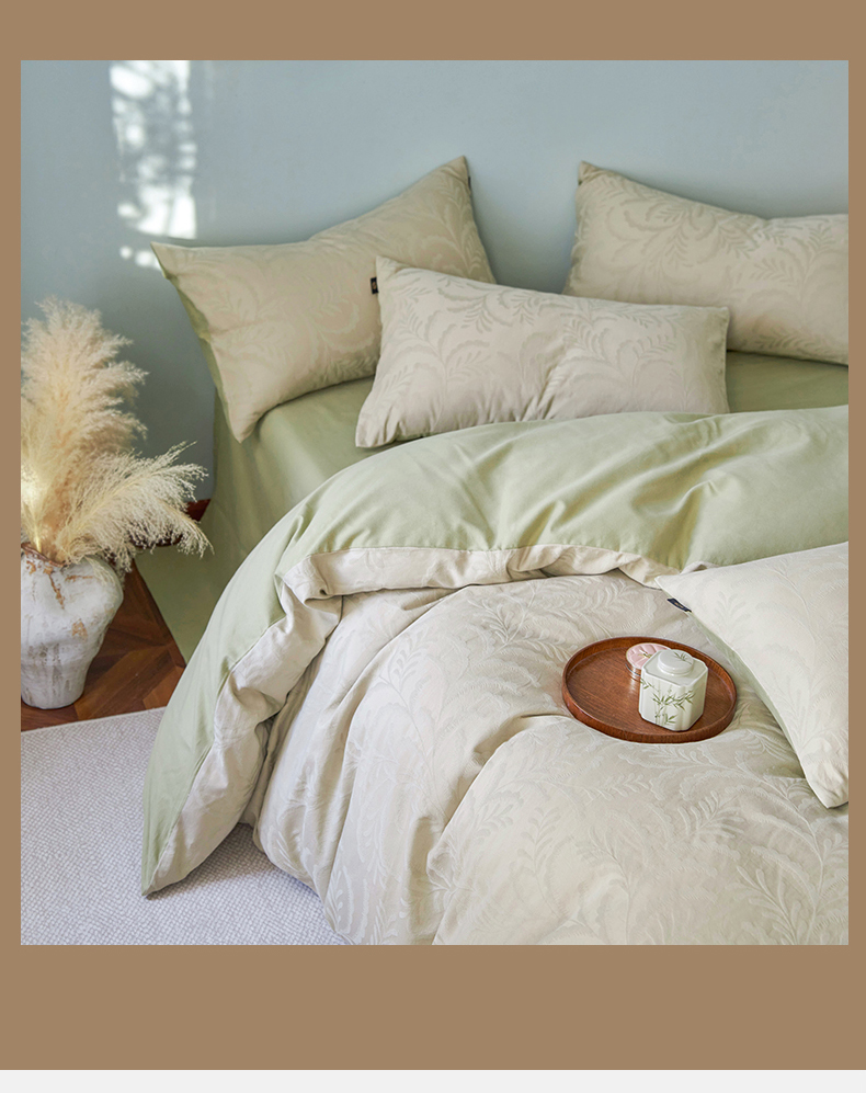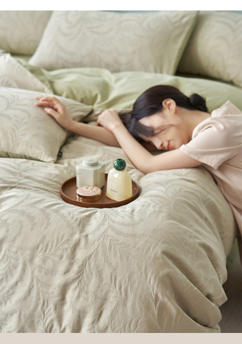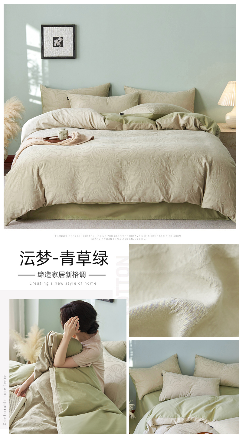 当前位置: 91家纺网 > 商品网购 > 床品套件 > 四件套 > 普通磨毛四件套 > 禾时 2025新款60s轻奢提花磨毛四件套-沄梦 沄梦-青草绿