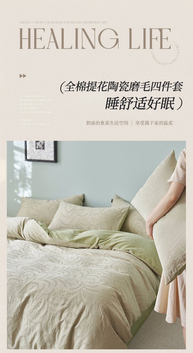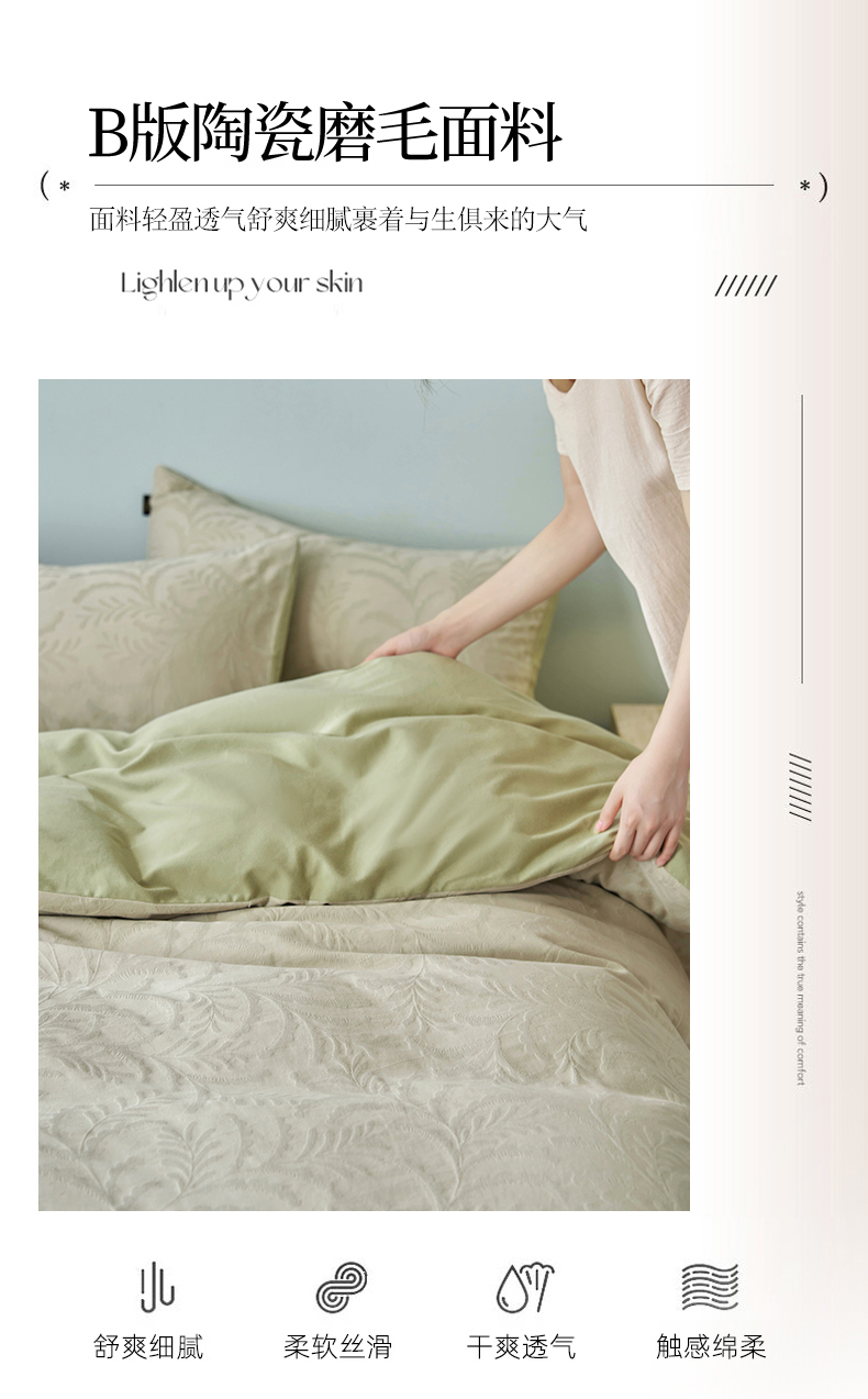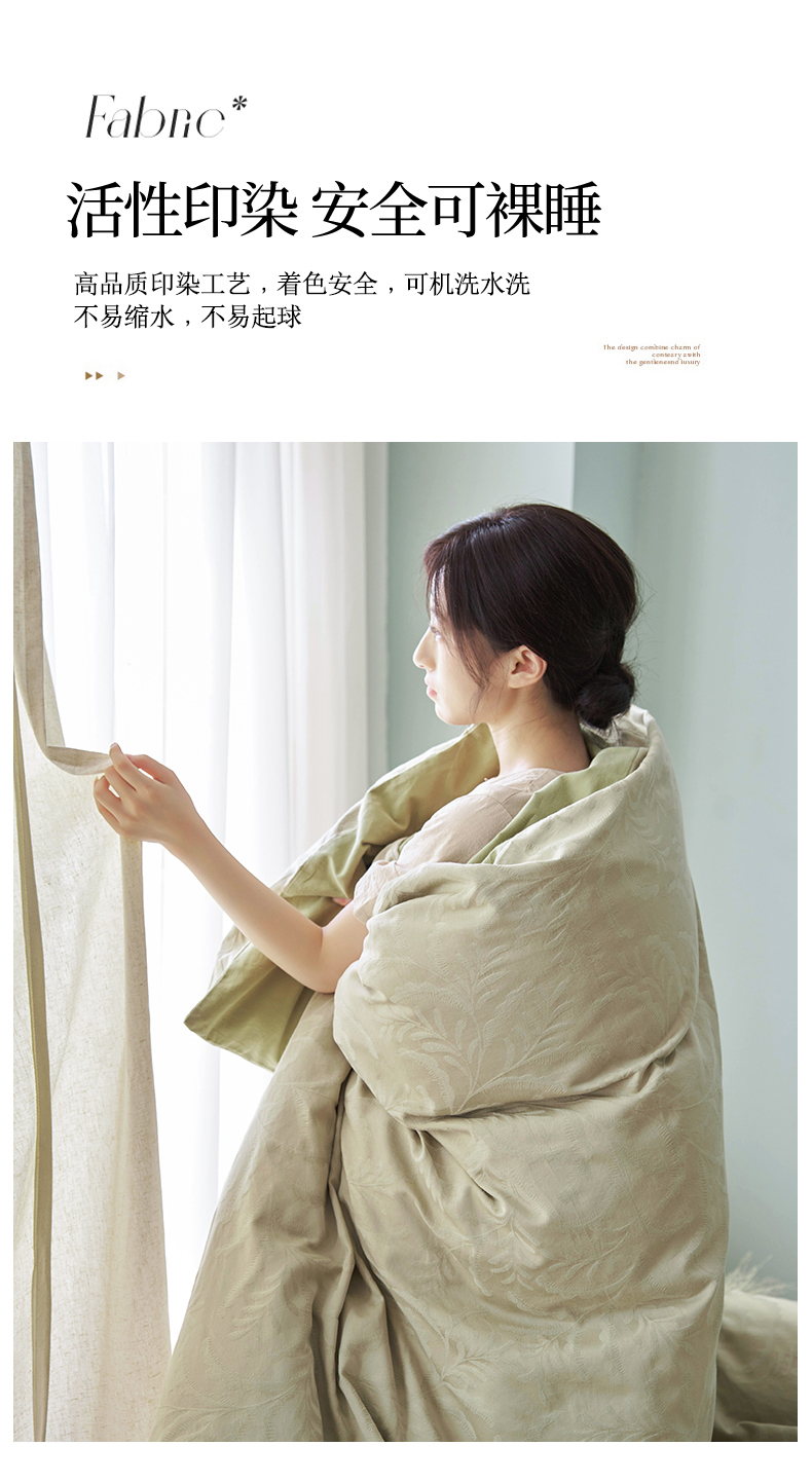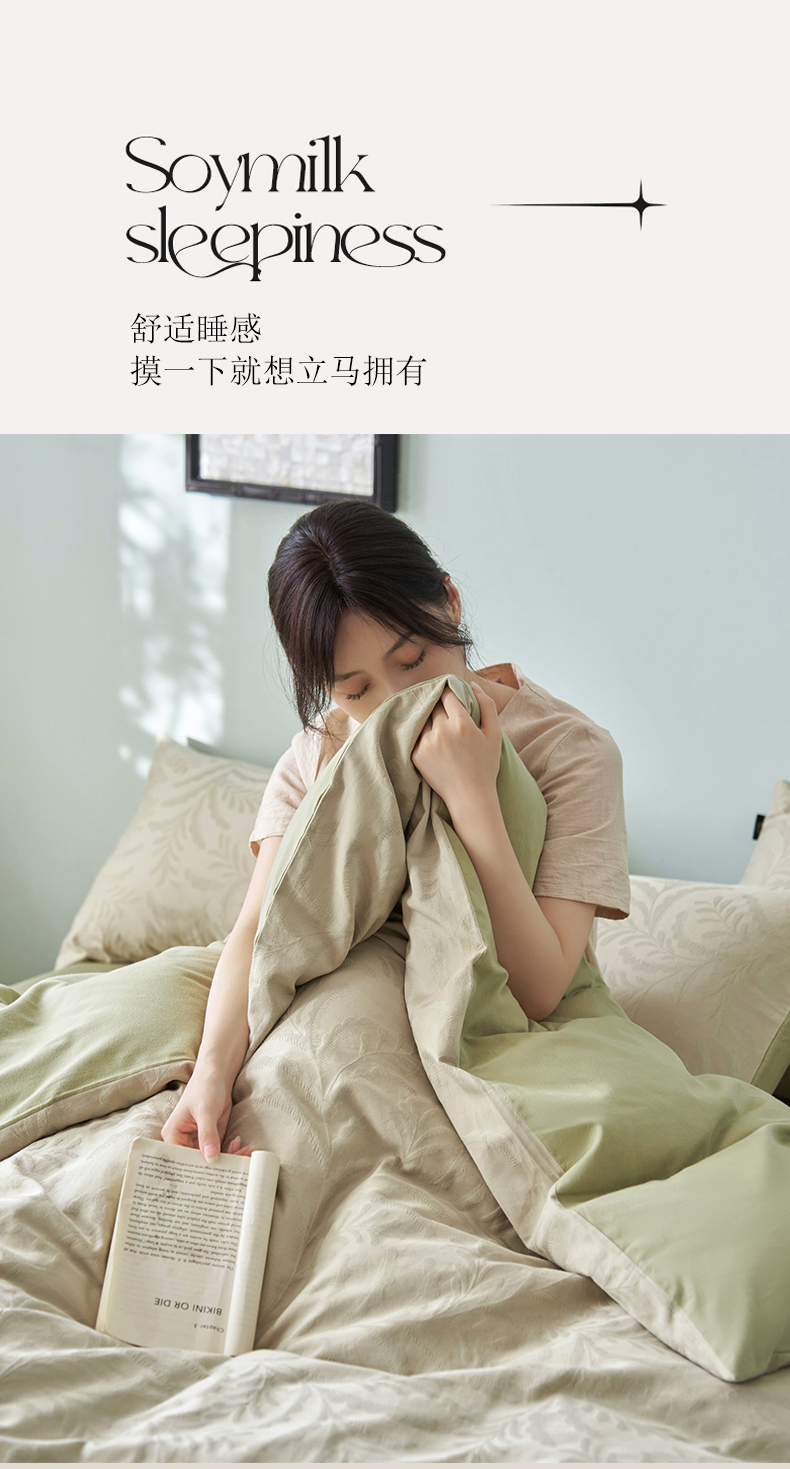 当前位置: 91家纺网 > 商品网购 > 床品套件 > 四件套 > 普通磨毛四件套 > 禾时 2025新款60s轻奢提花磨毛四件套-沄梦 沄梦-青草绿