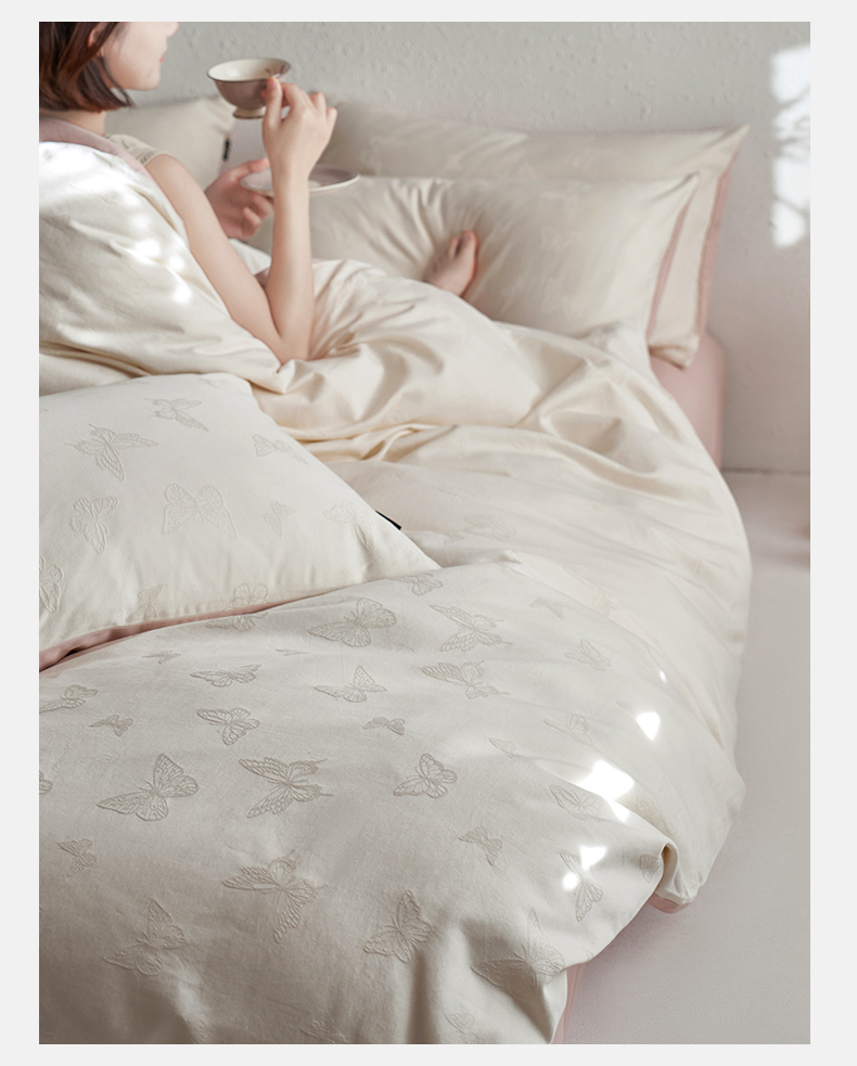 当前位置: 91家纺网 > 商品网购 > 床品套件 > 四件套 > 普通磨毛四件套 > 禾时 2025新款60s轻奢提花磨毛四件套-简蝶 简蝶 -淡蓝