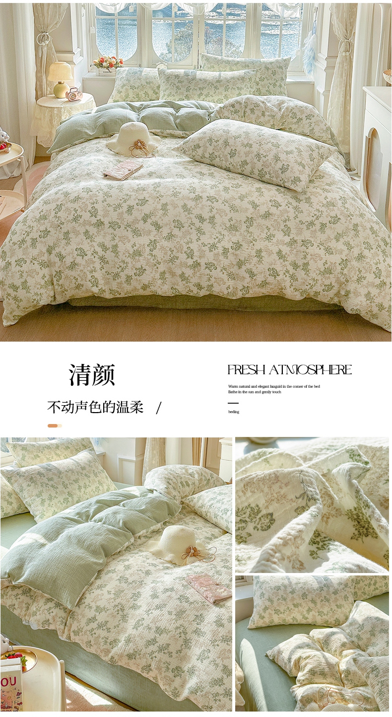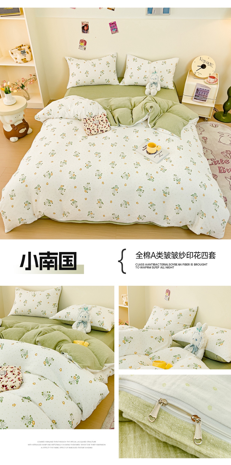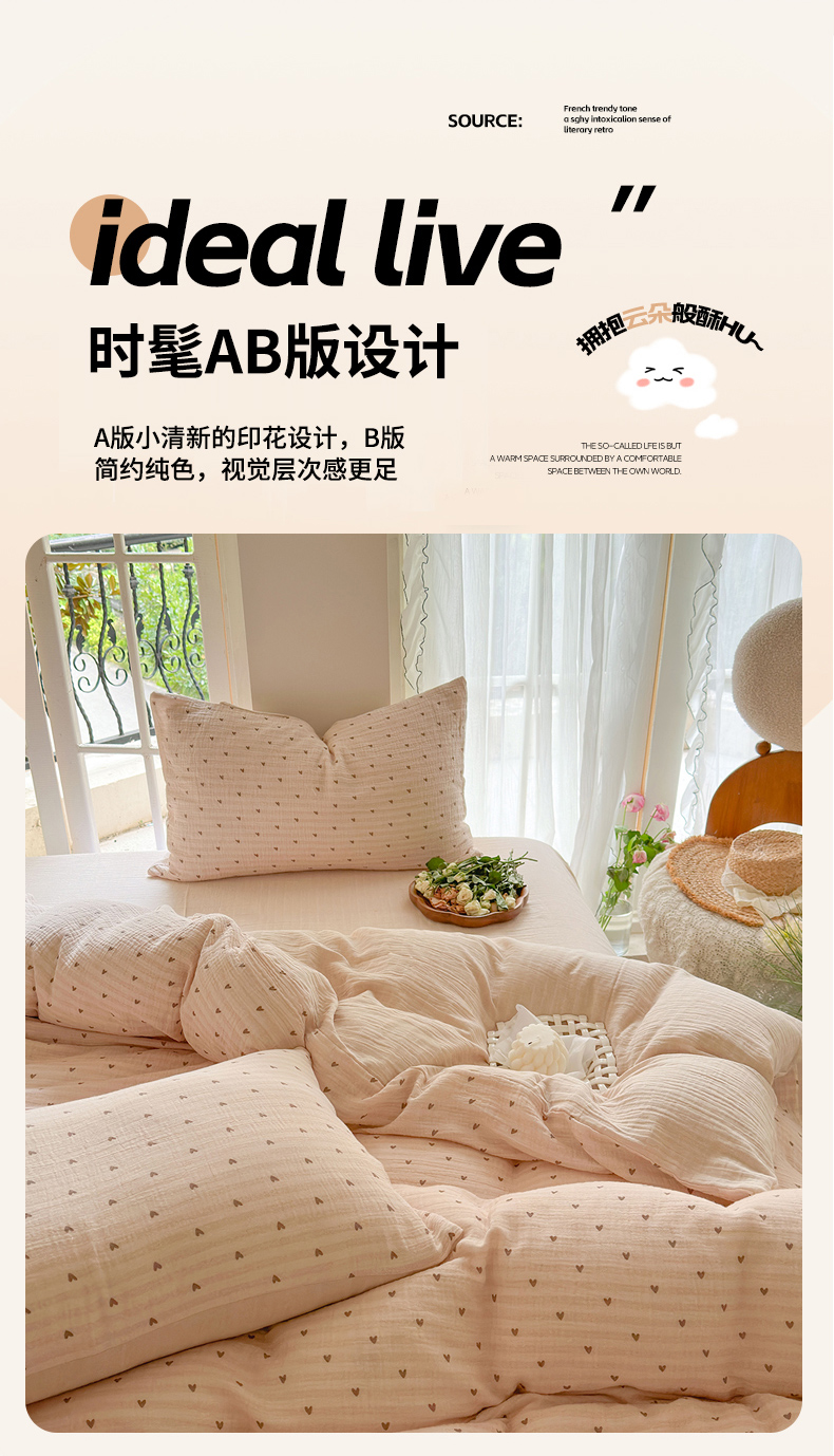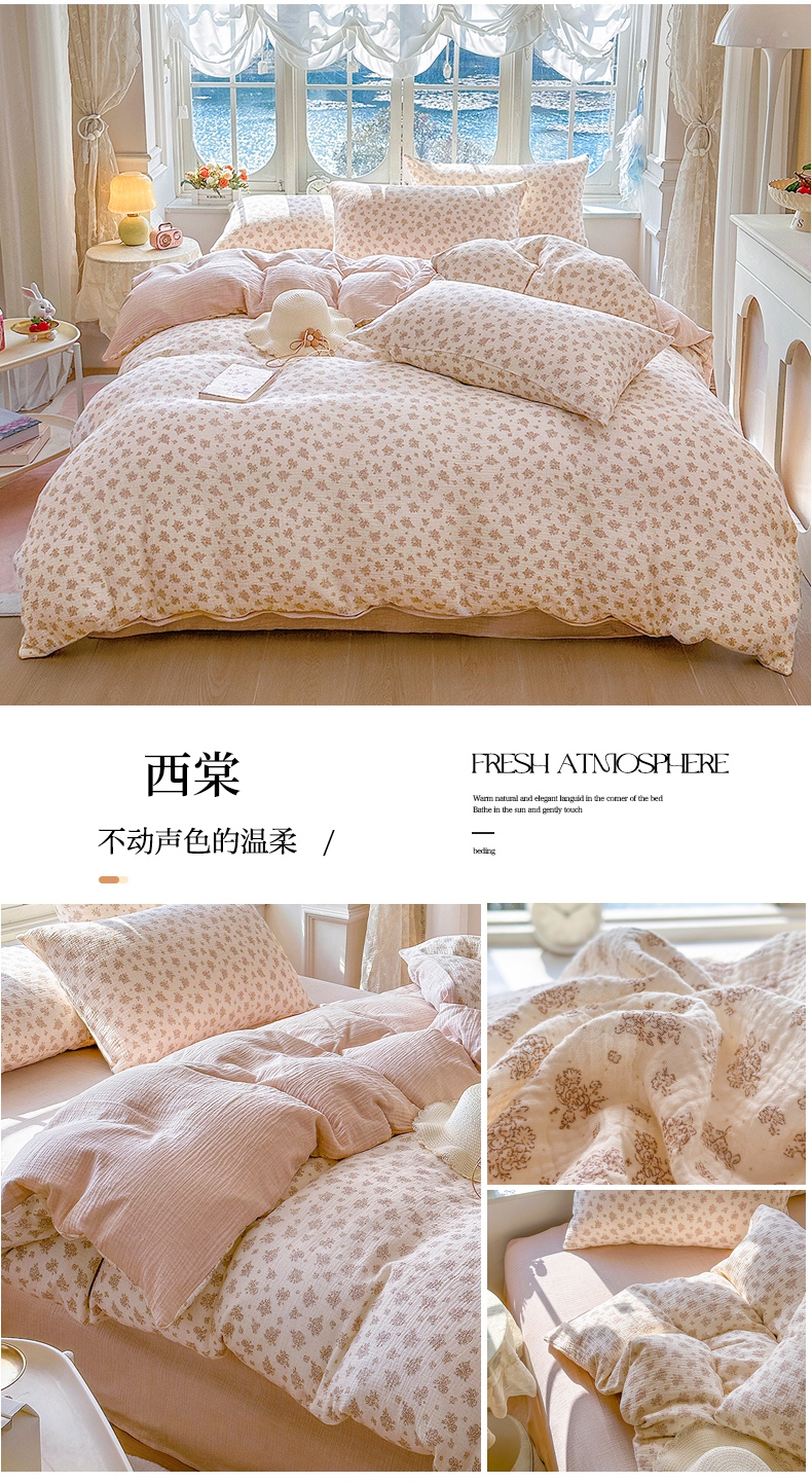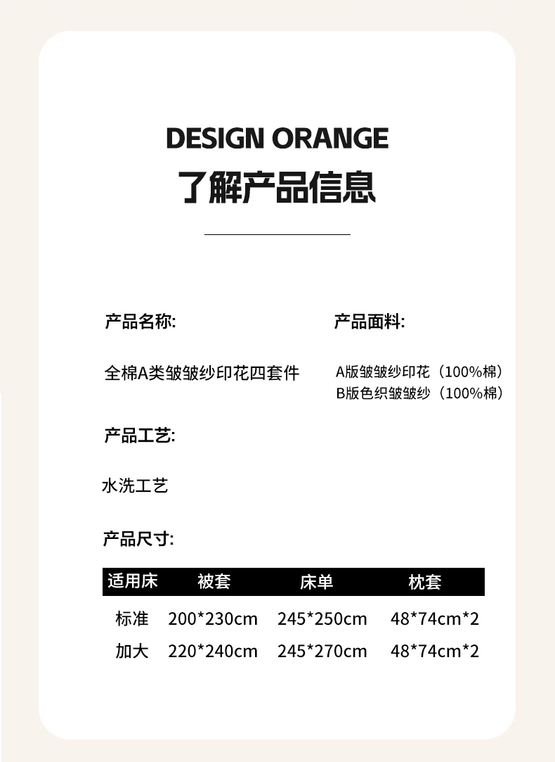 商品名称:木楌家居 2025春夏新品全棉A类皱皱纱印花四件套 可心咖