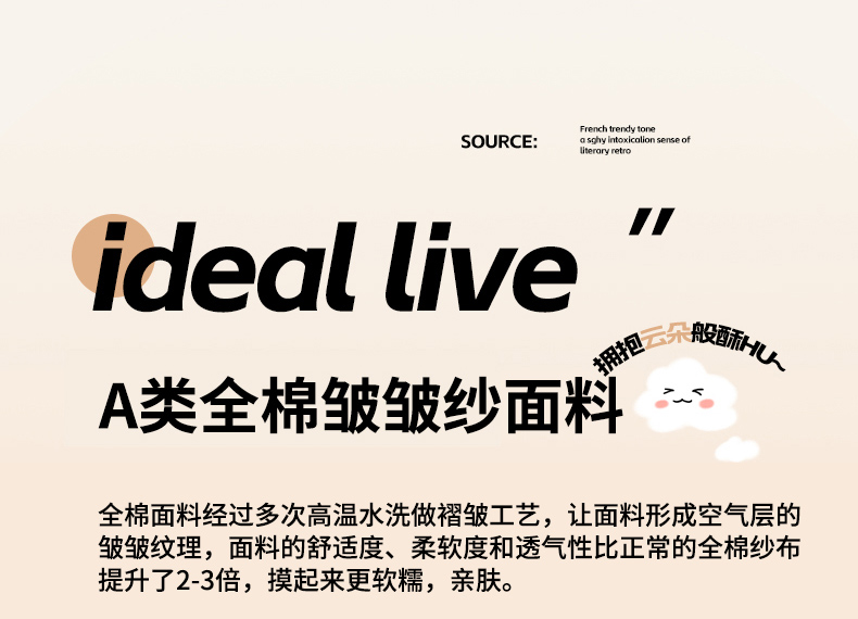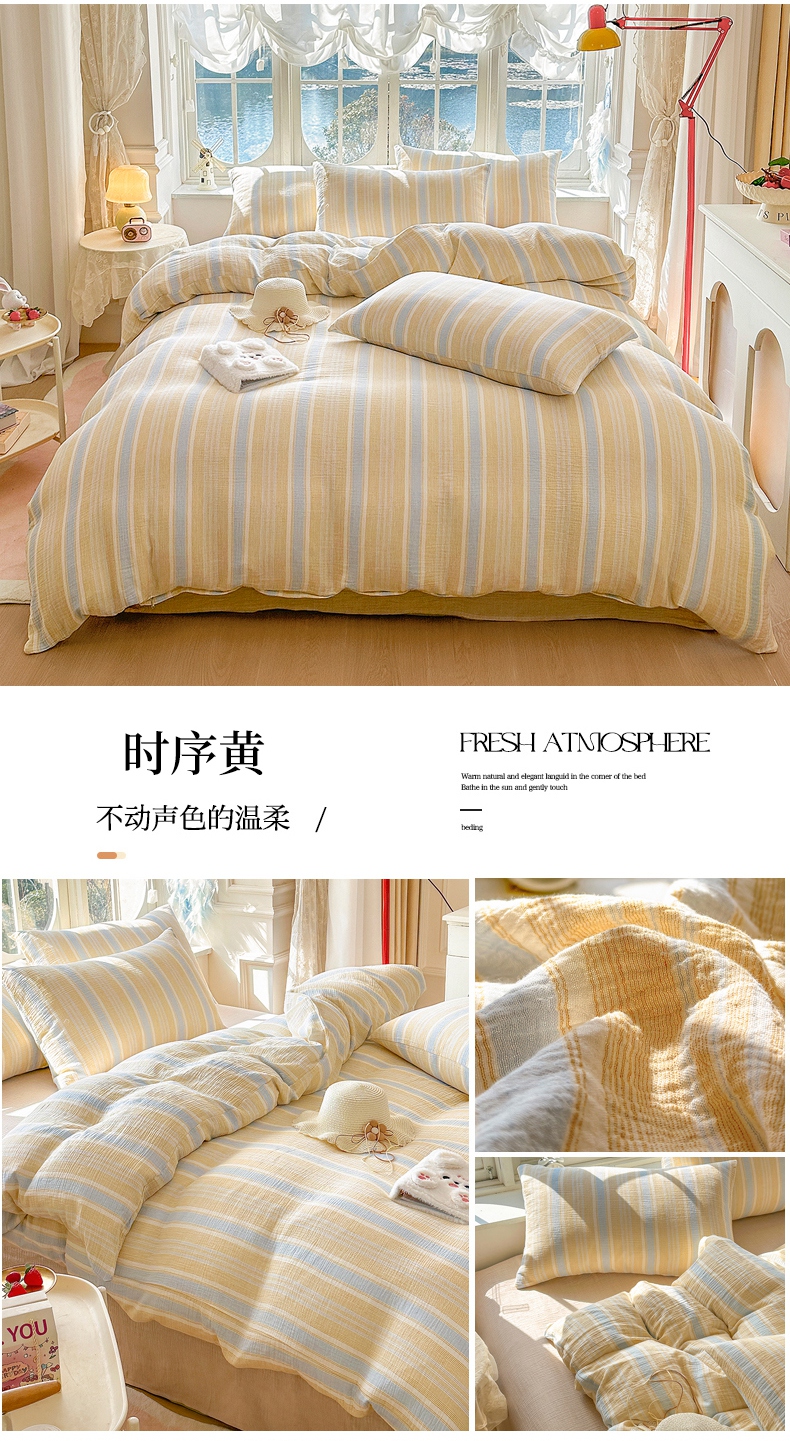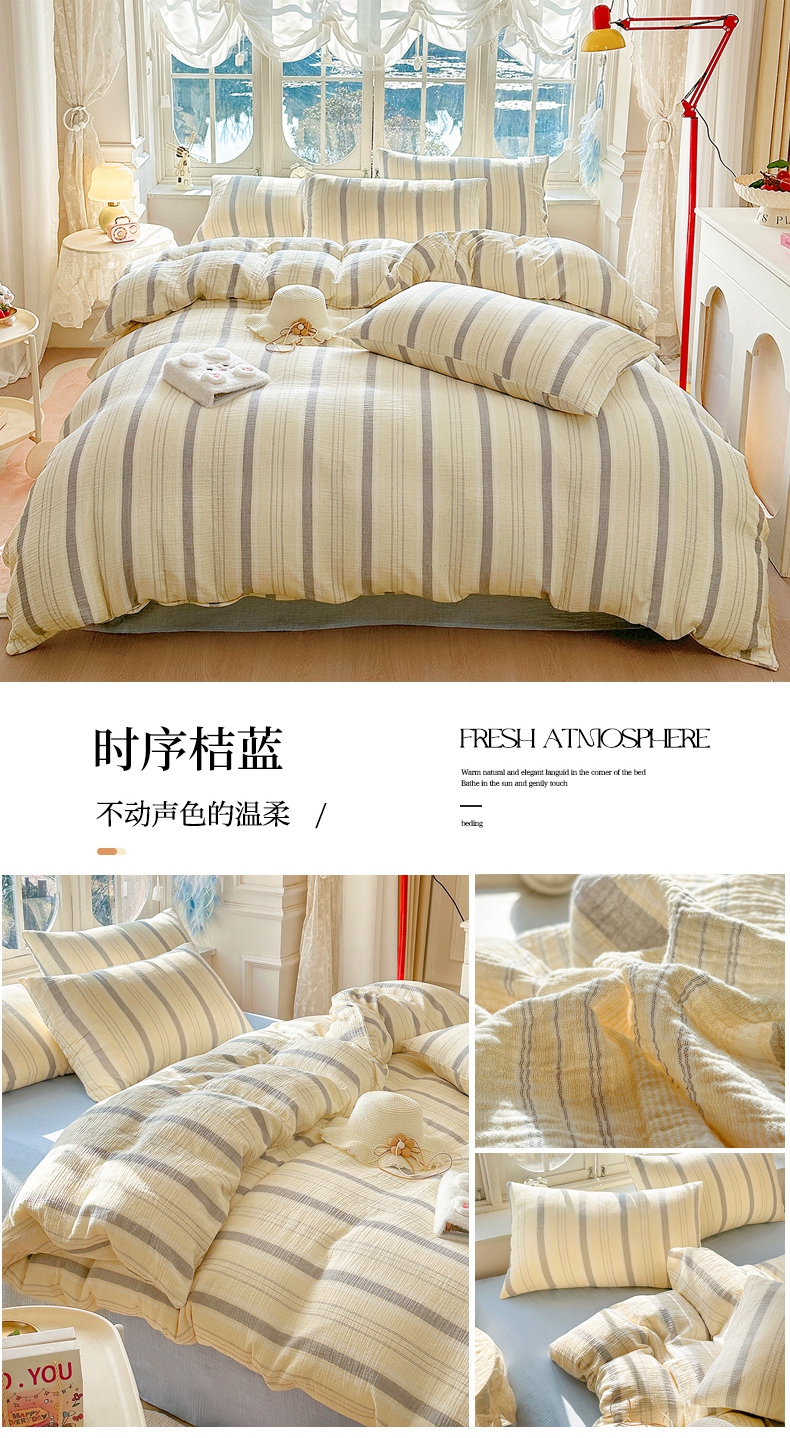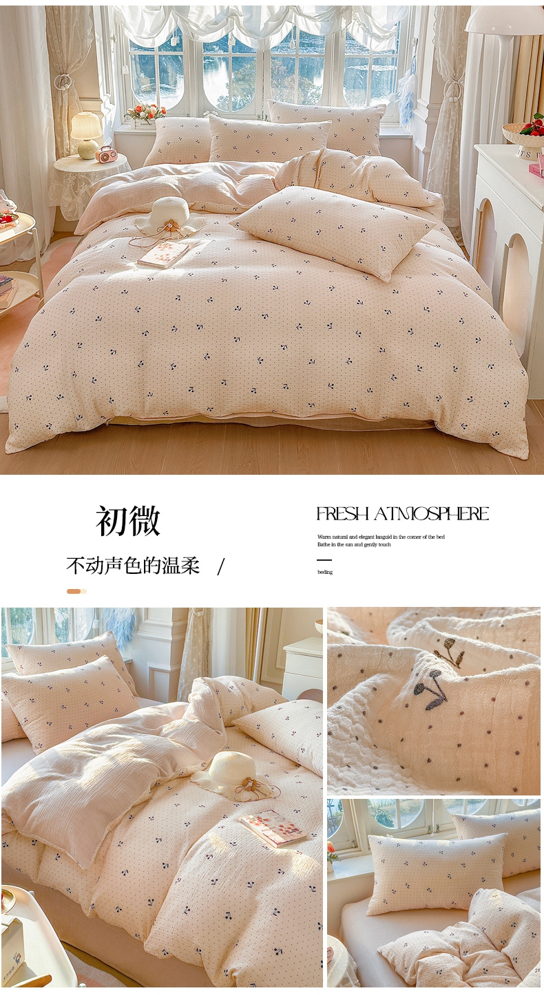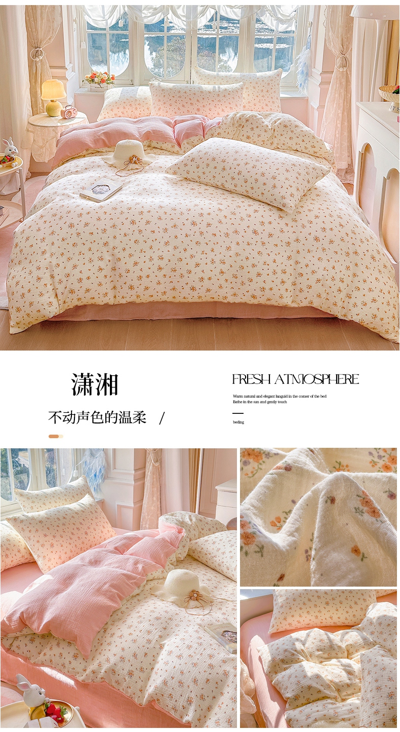 商品名称:木楌家居 2025春夏新品全棉A类皱皱纱印花四件套 可心咖