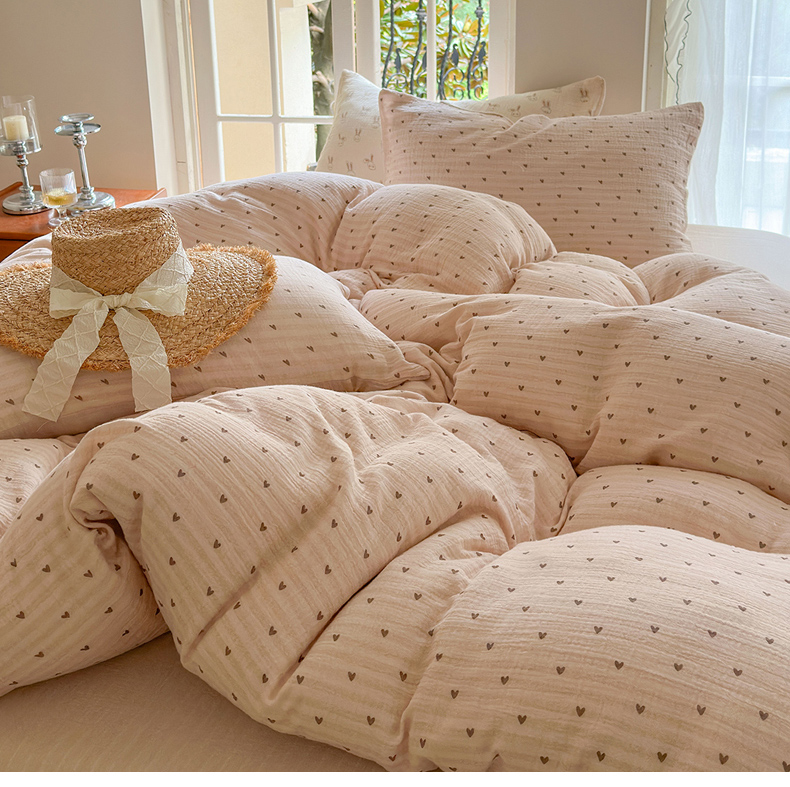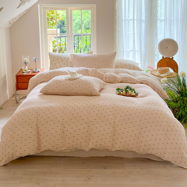 木楌家居 2025春夏新品全棉A类皱皱纱印花四件套 可心咖