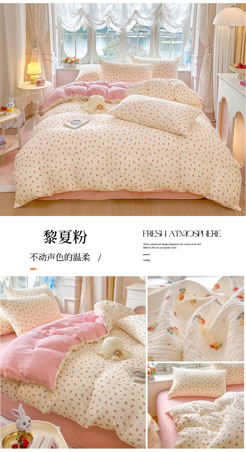 (总)木楌家居 2026新款全棉纱布云感冰冰被床盖四件套系列,樱桃狗,粉黛,兰颜,七彩爱心,时光里,甜心萝卜,小仓兰,小汽车,小星星,阳光小马,樱桃熊,云瑾
