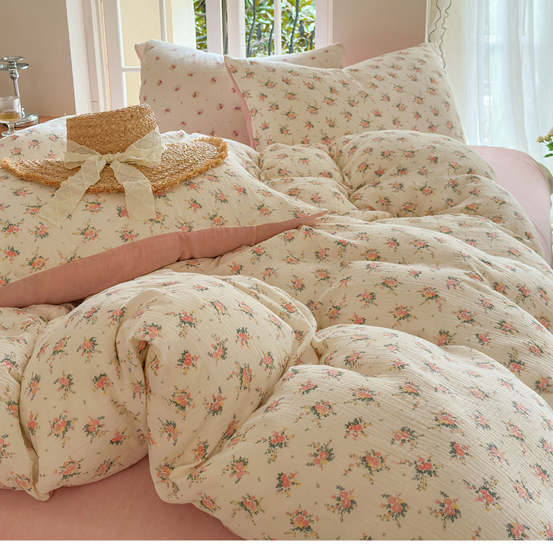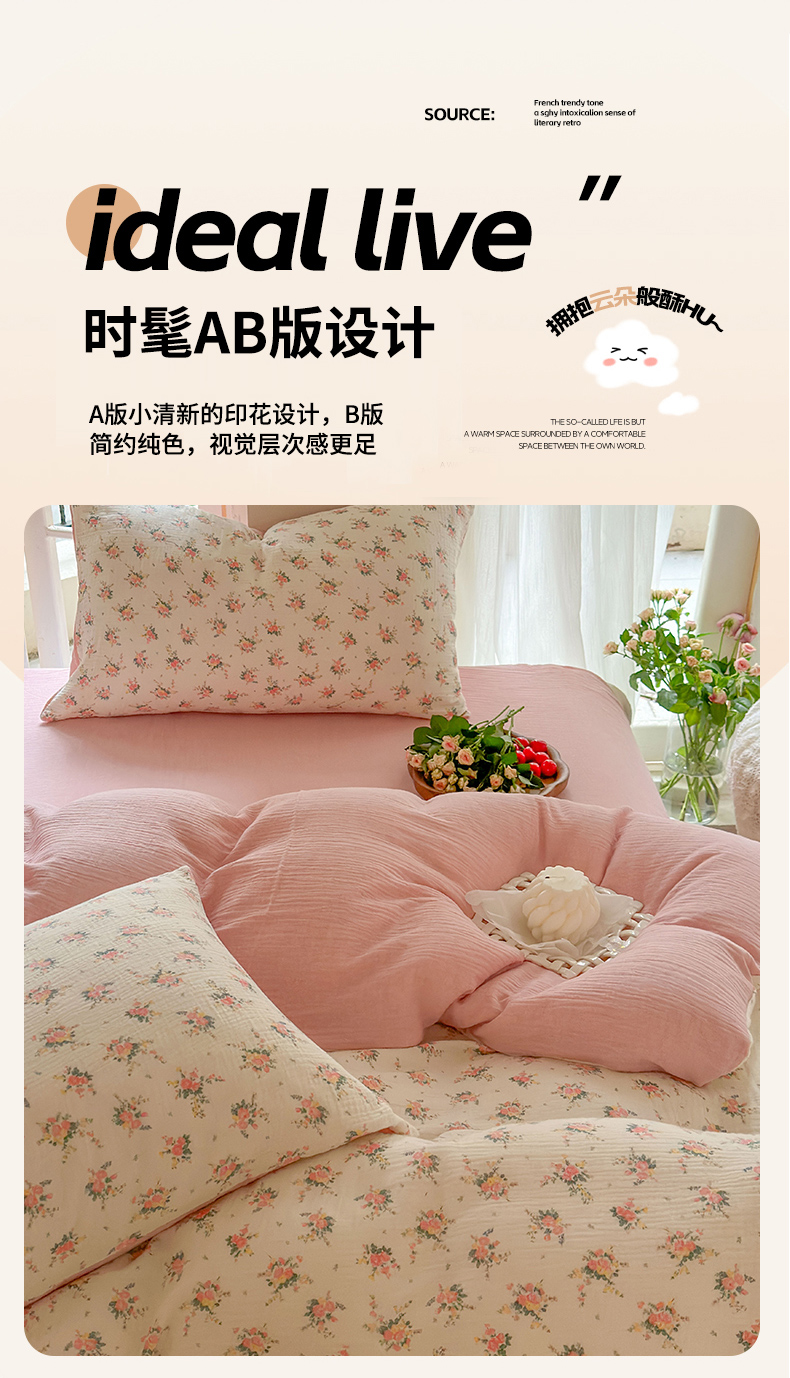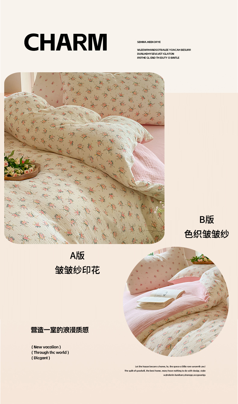 木楌家居 2025春夏新品全棉A类皱皱纱印花四件套 浅汐