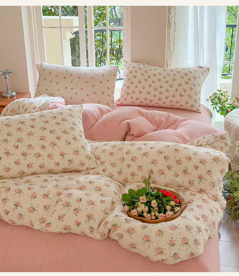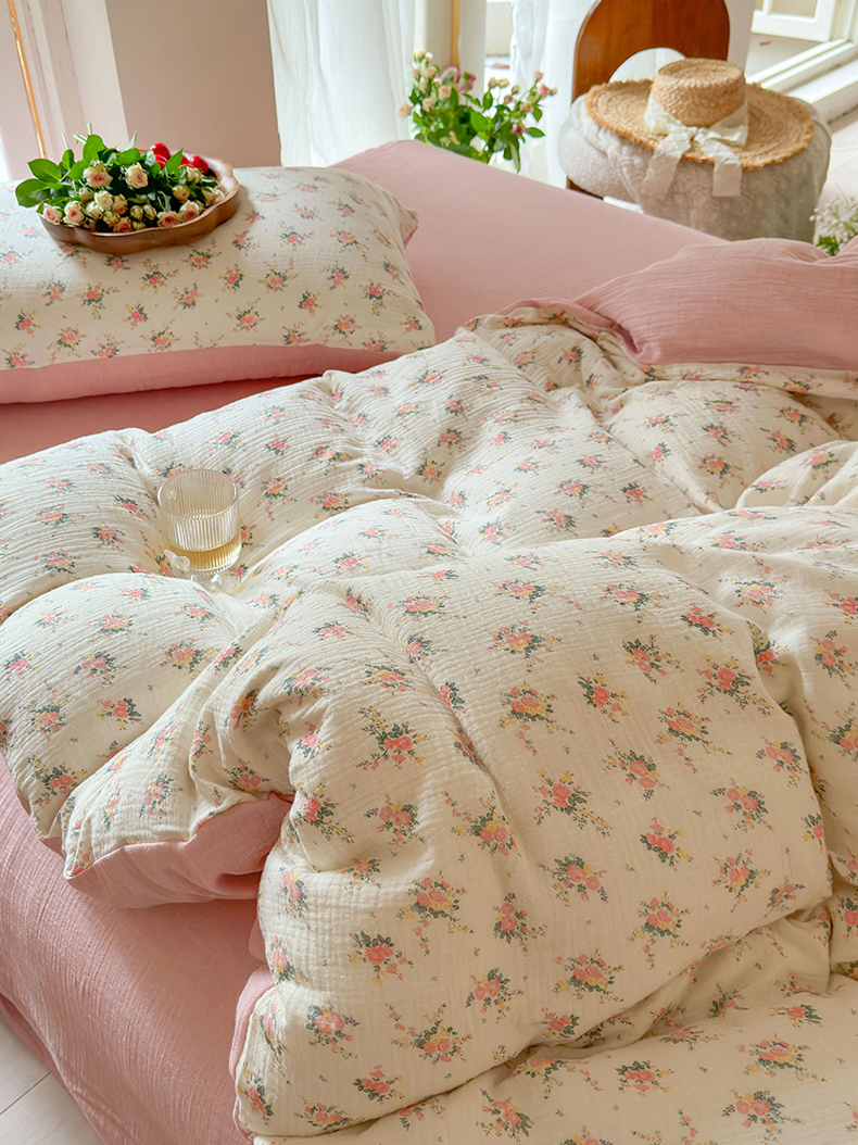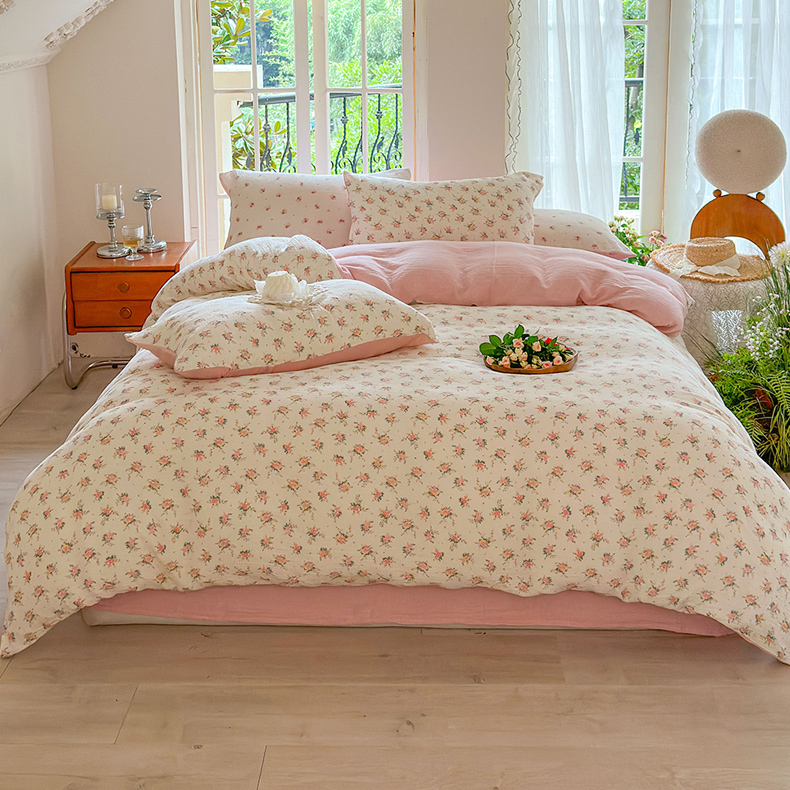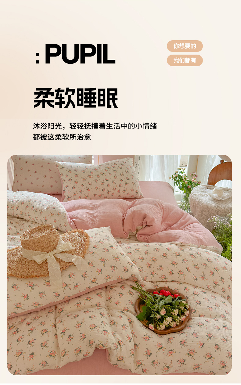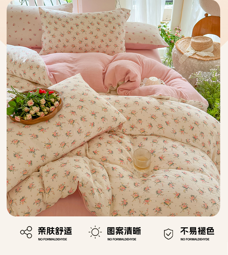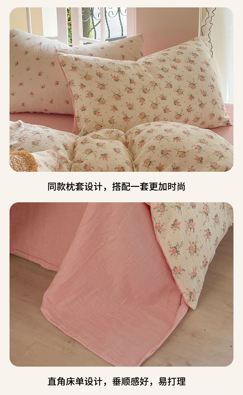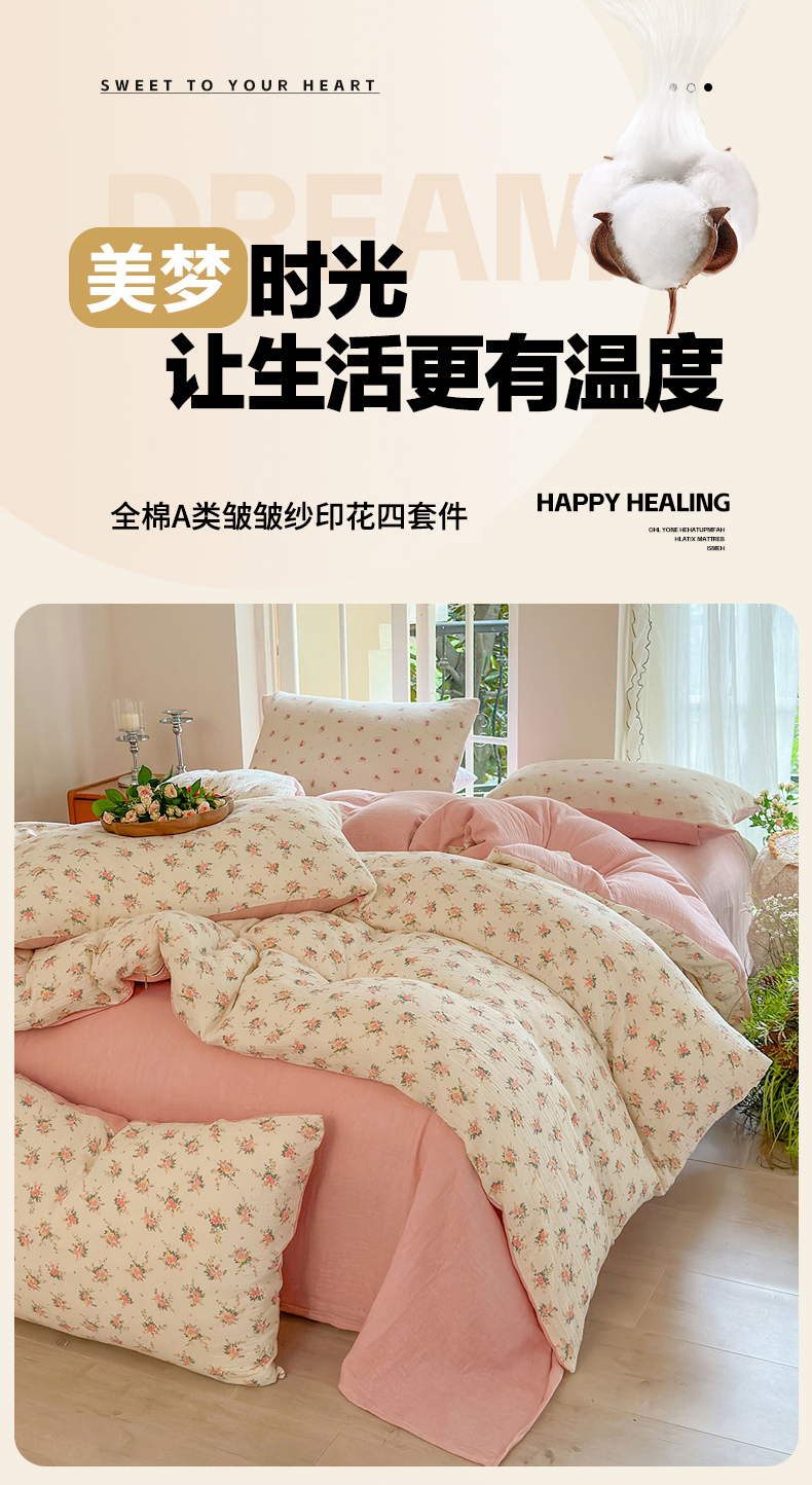 商品名称:木楌家居 2025春夏新品全棉A类皱皱纱印花四件套 浅汐