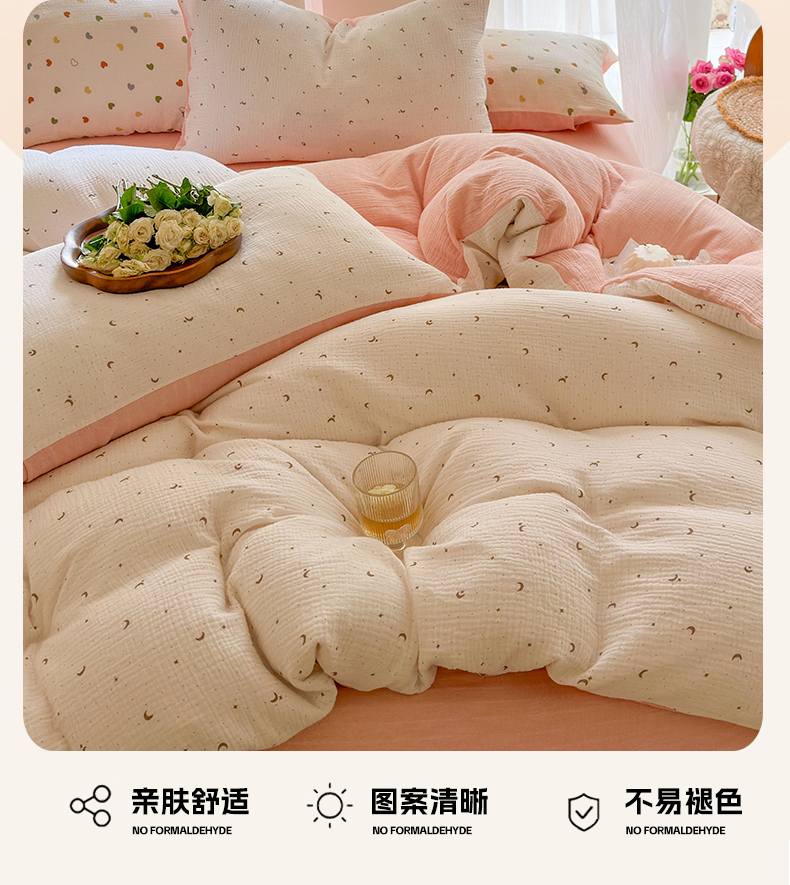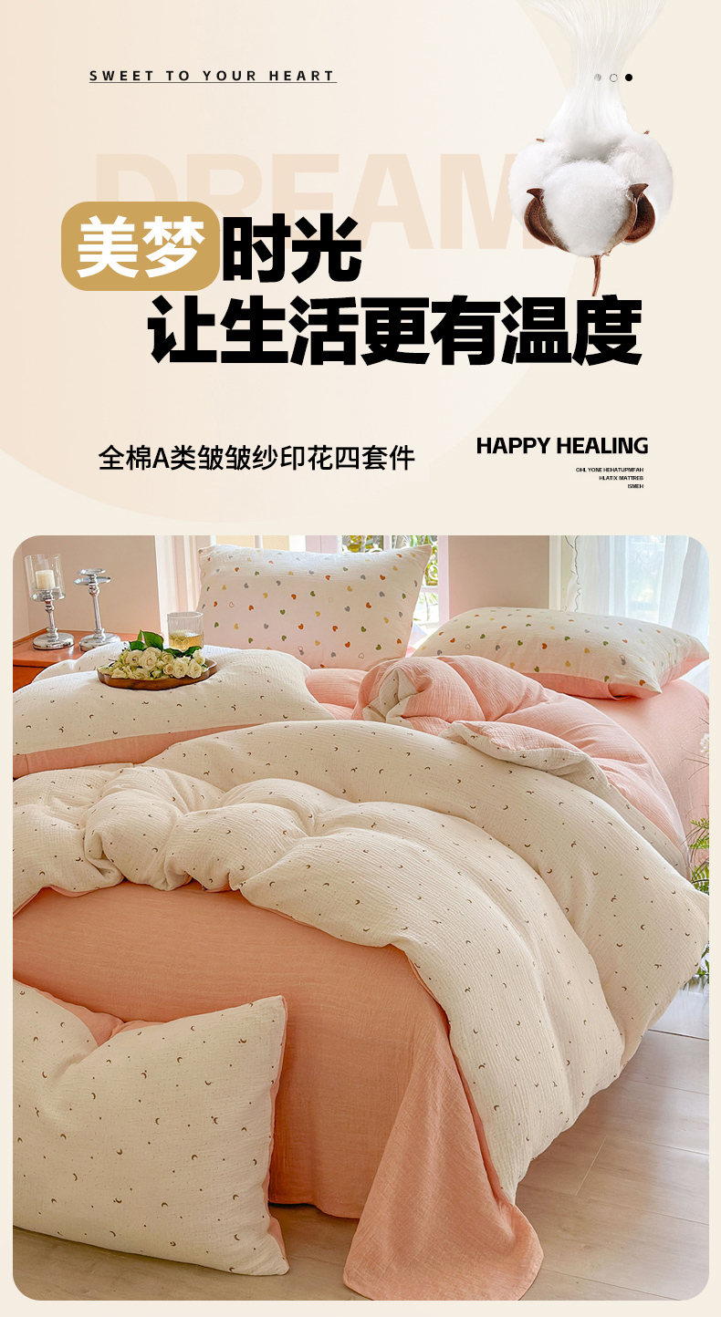 木楌家居 2025春夏新品全棉A类皱皱纱印花四件套 星月