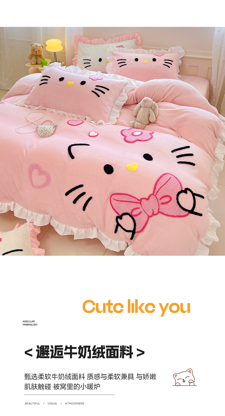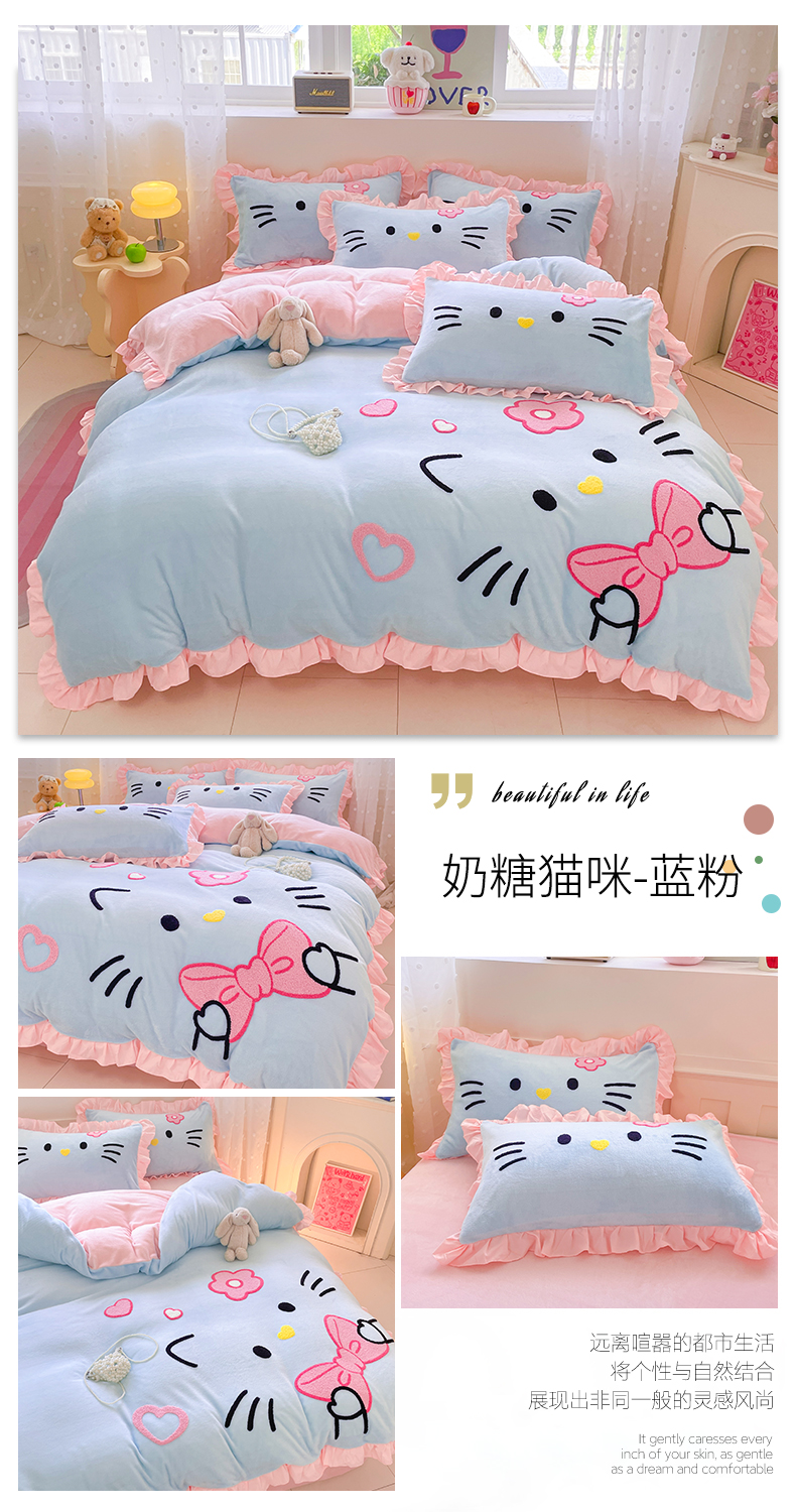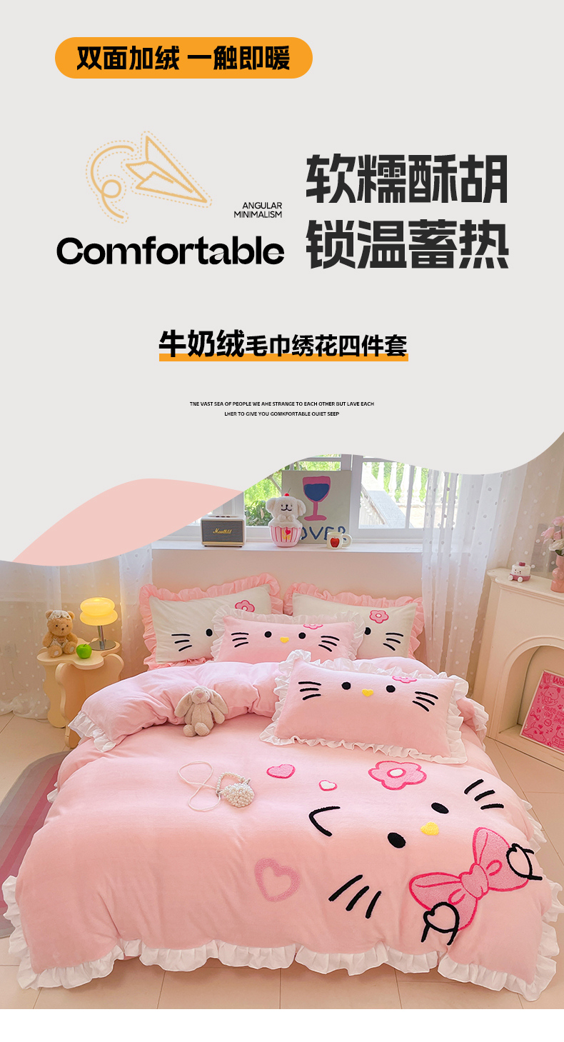 当前位置: 91家纺网 > 商品网购 > 床品套件 > 四件套 > 牛奶绒四件套 > 泉欣家纺 2025新款牛奶绒公主风毛巾绣花床单款床笠款四件套三件套奶糖猫咪(专版) 奶糖猫咪-粉