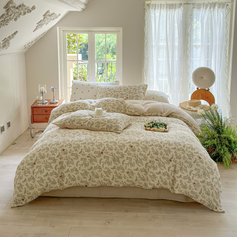 商品名称:木楌家居 2025新款A类全棉皱皱纱印花四件套 悠然
