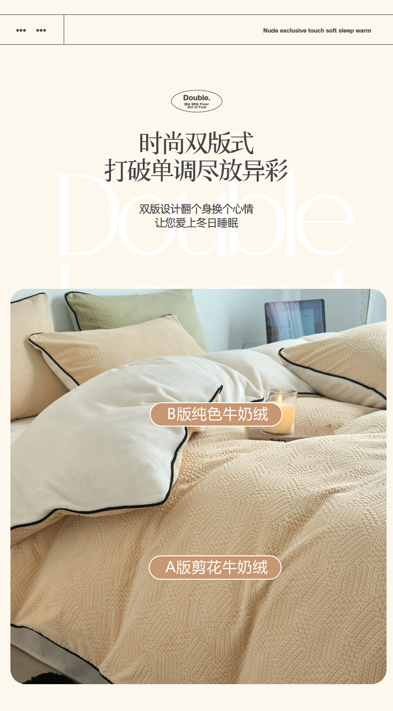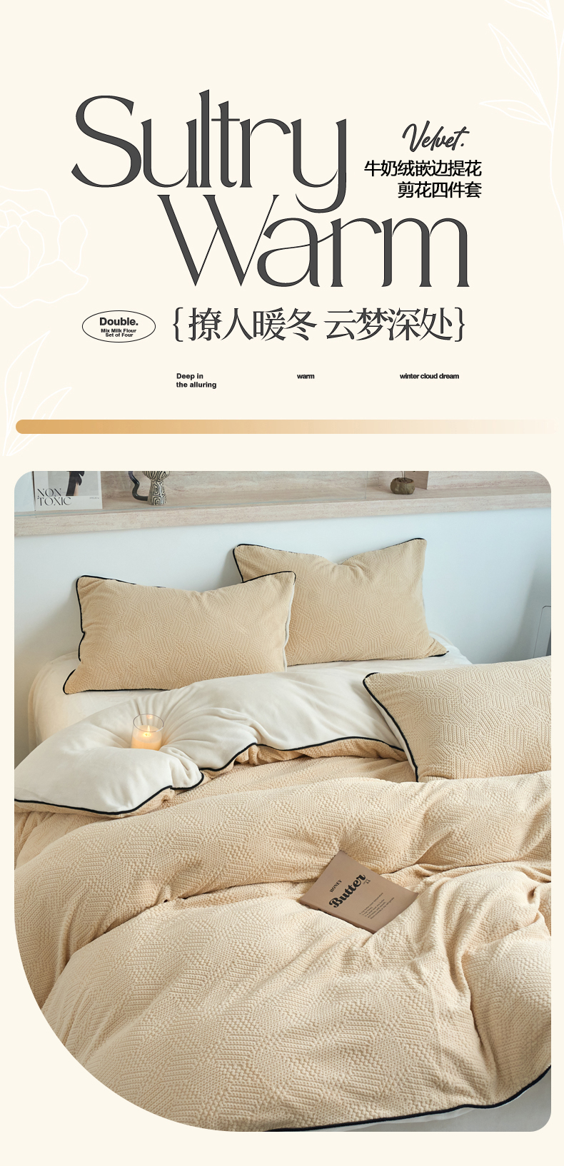 当前位置: 91家纺网 > 商品网购 > 床品套件 > 四件套 > 牛奶绒四件套 > 兰紫橙家纺 2025新款牛奶绒嵌边提花剪花四件套(含买家秀) 织梦-米咖