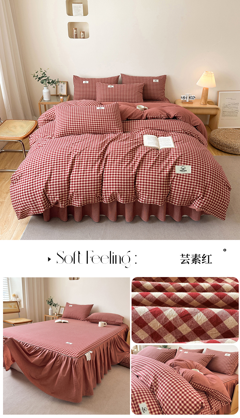 当前位置: 91家纺网 > 商品网购 > 床品套件 > 四件套 > 水洗棉四件套 > 笠裙家纺 2025新款A类色织全棉纯棉水洗棉床裙四件套 粉青年