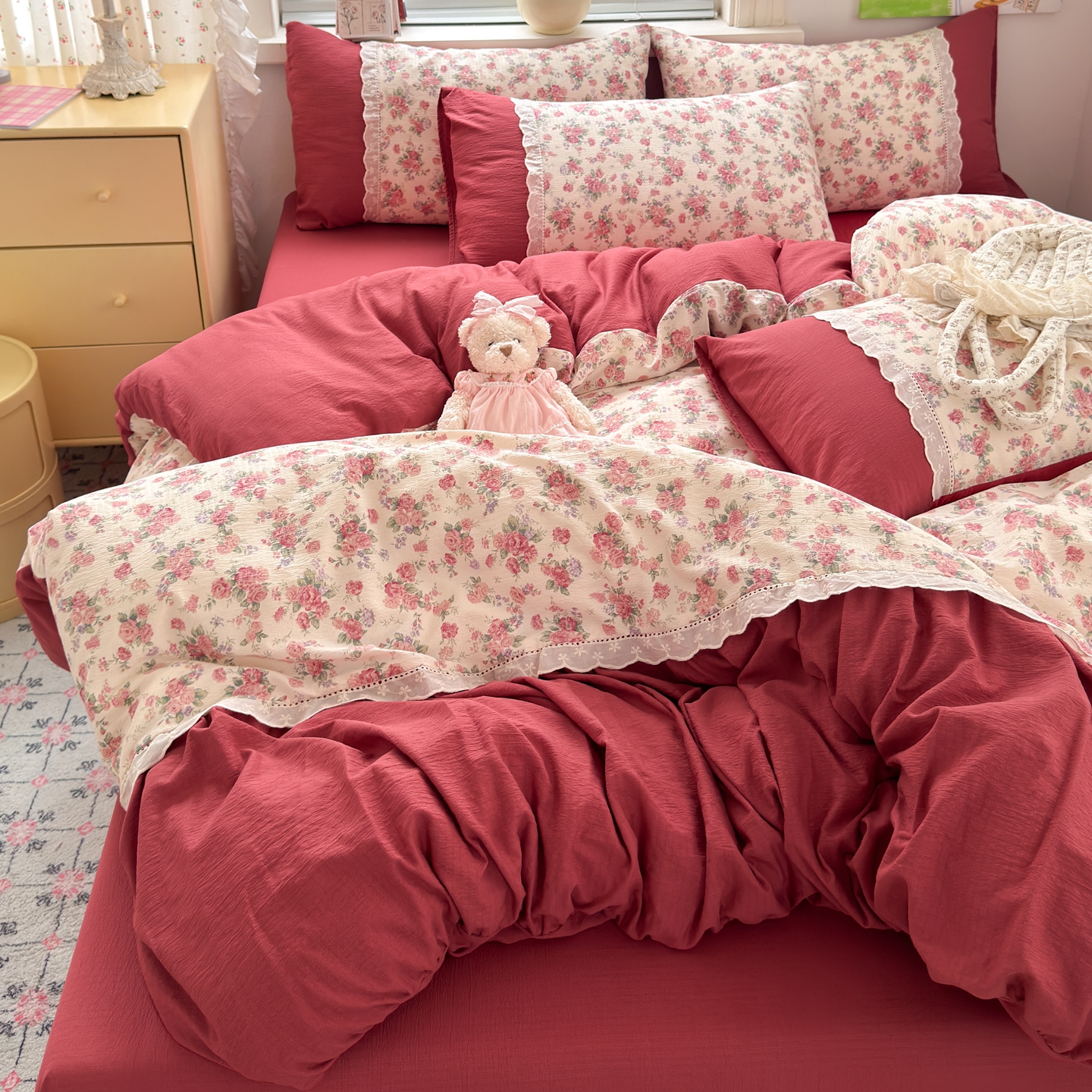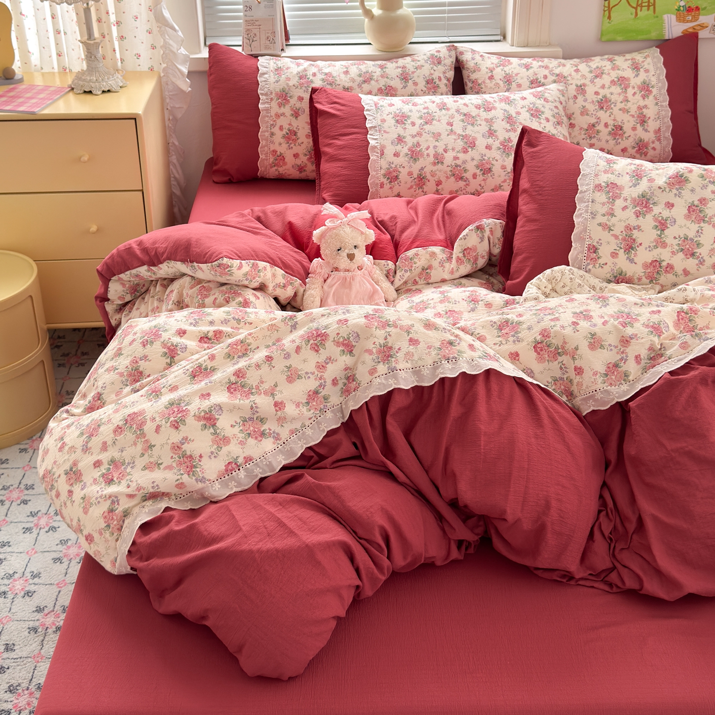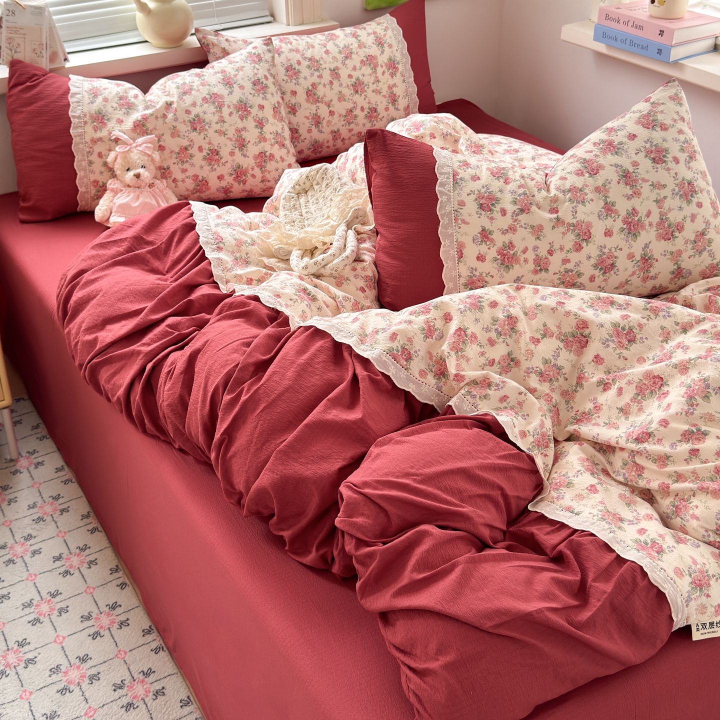 商品名称:(总)典雅家纺 2025新款A类超柔双层纱四件套花边工艺款四件套