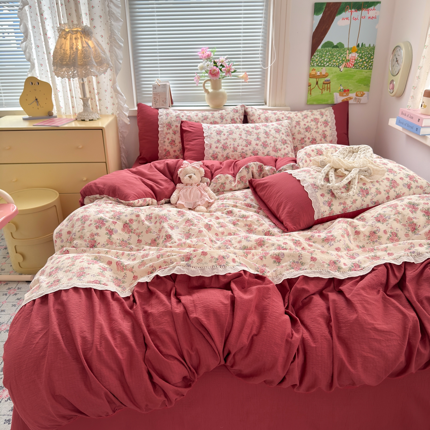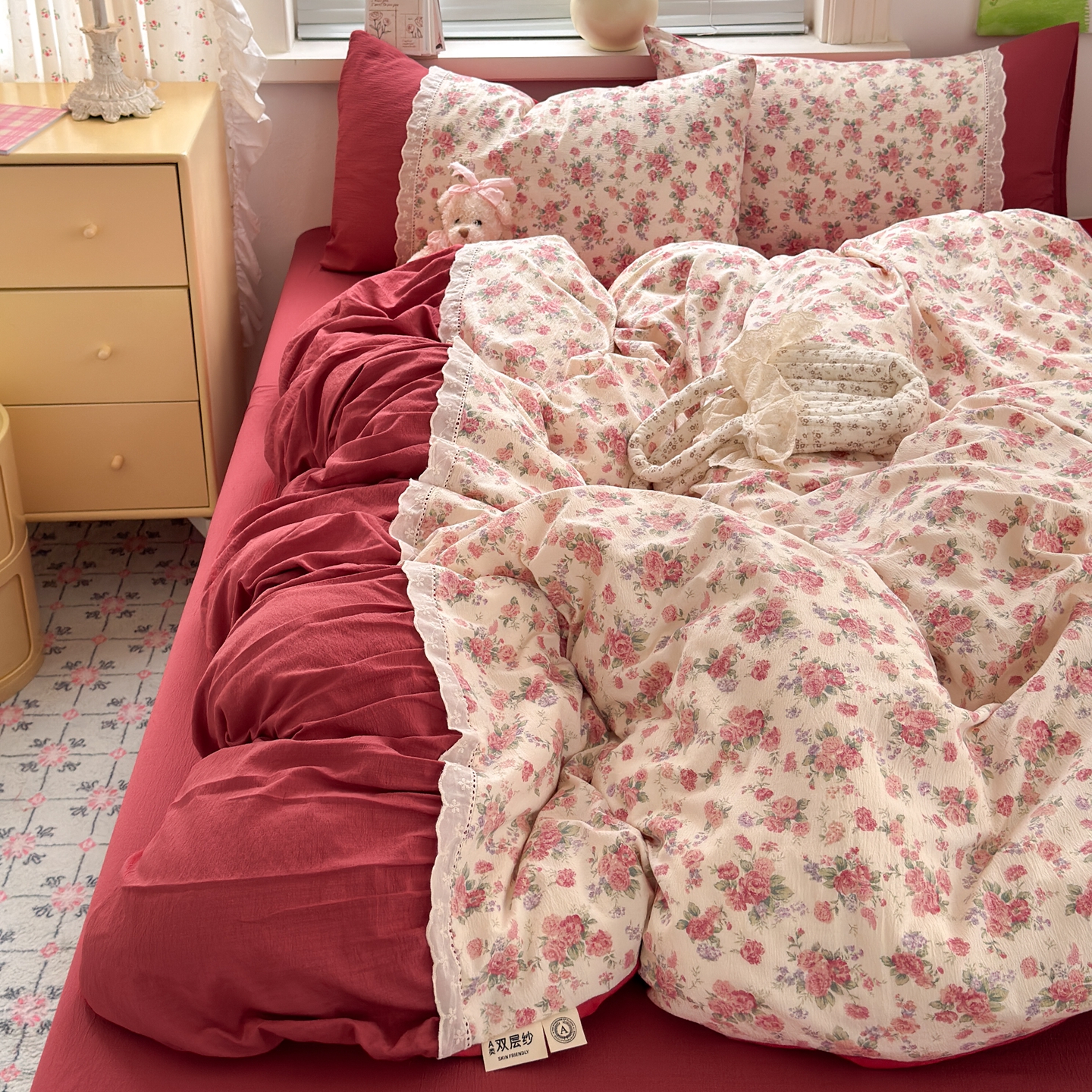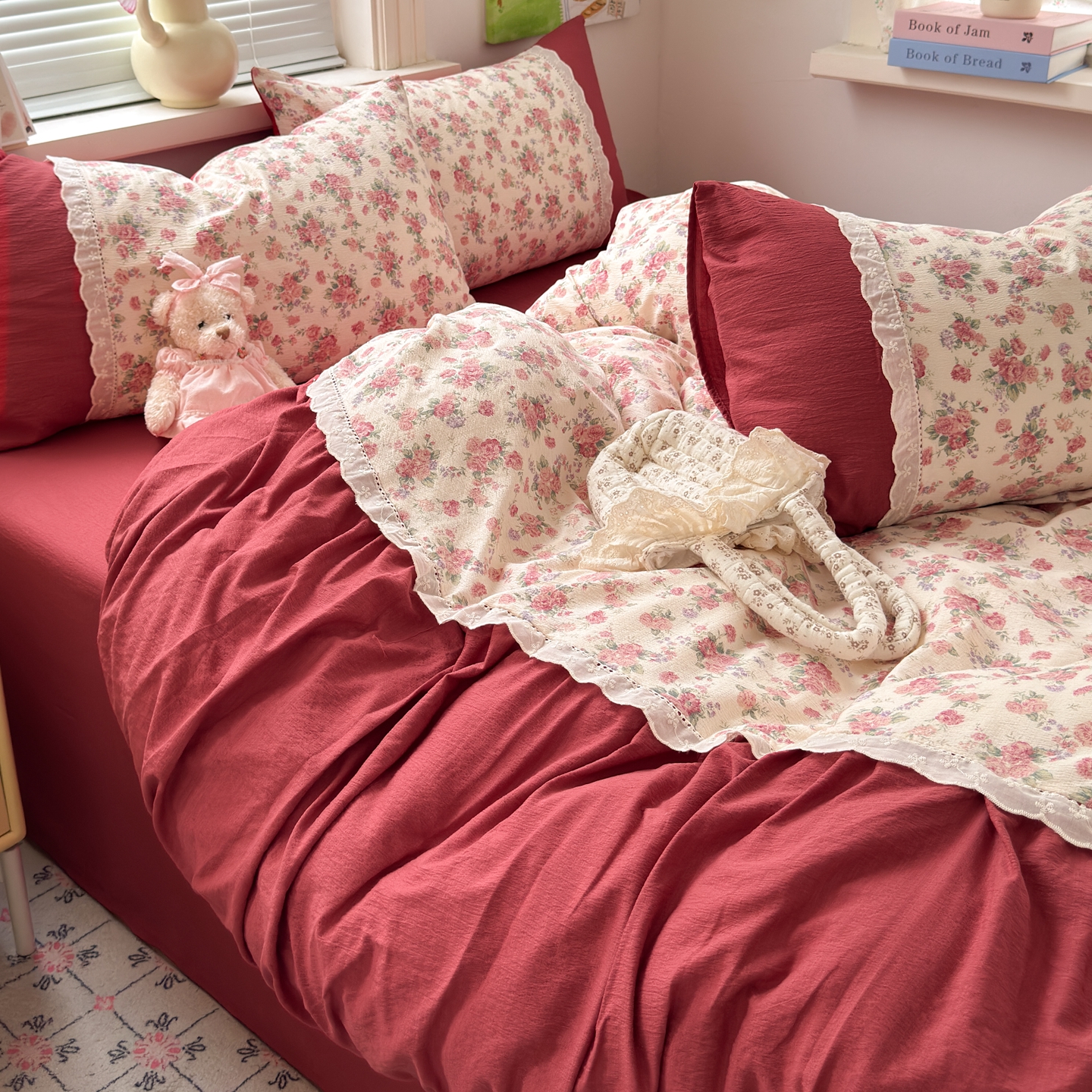 商品名称:(总)典雅家纺 2025新款A类超柔双层纱四件套花边工艺款四件套