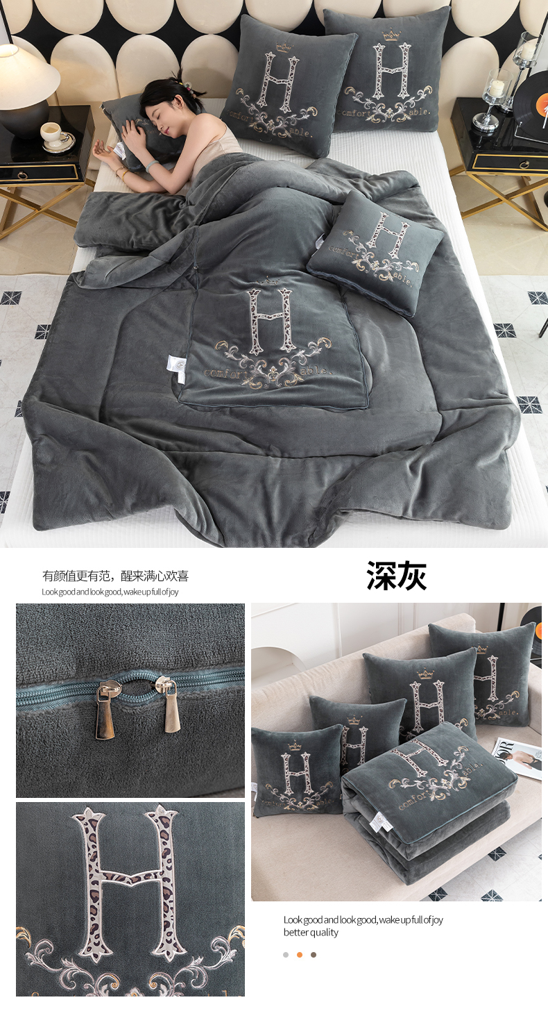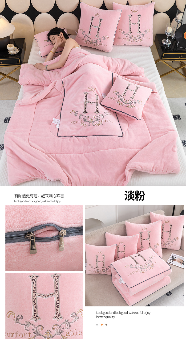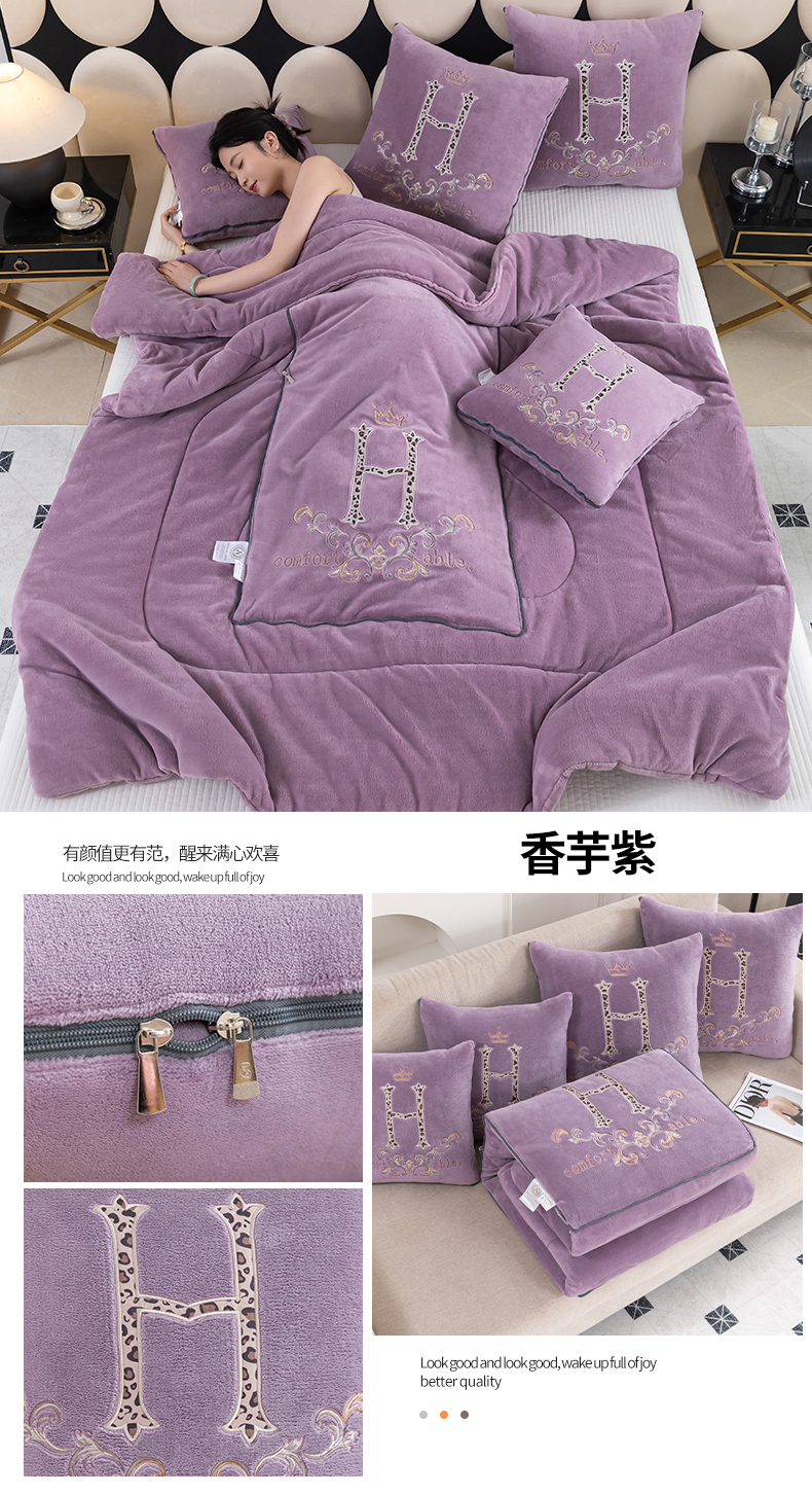 (总)照世家纺 2025新款牛奶绒简约复古款抱枕被,草绿,淡粉,千代紫,深灰,深蓝,天兰,香芋紫,杏粉